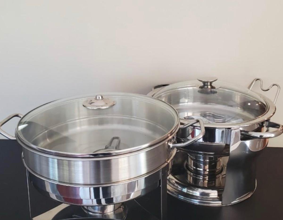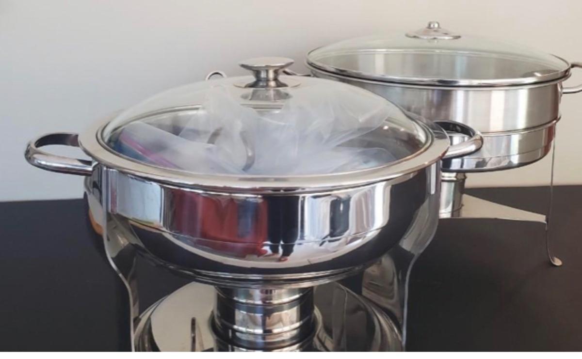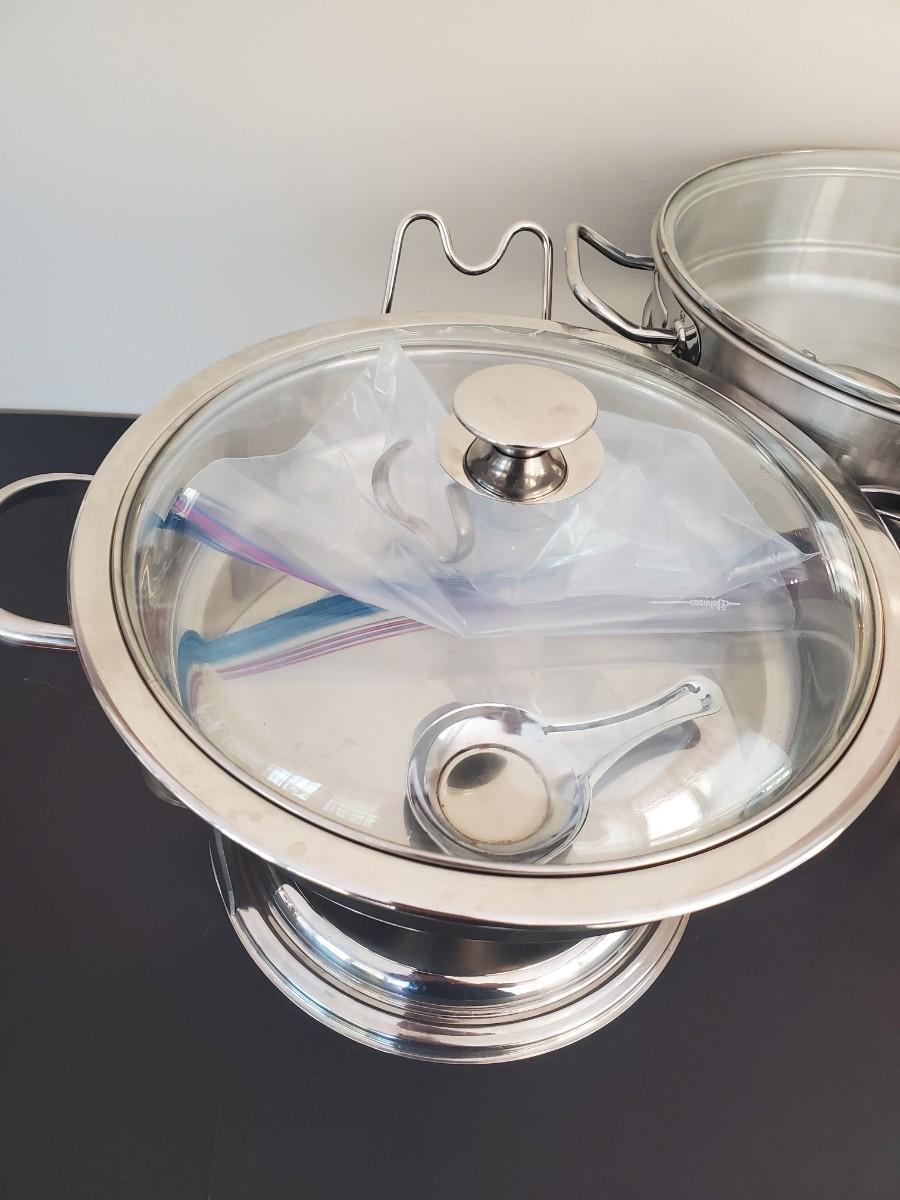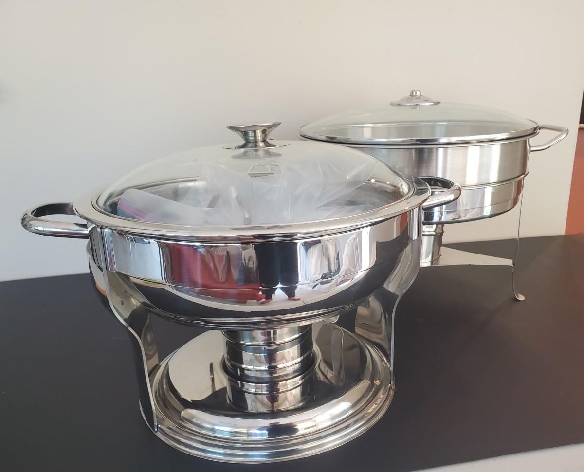 LOT 66G: Pair of Round Chafing Dishes Stainless Steel