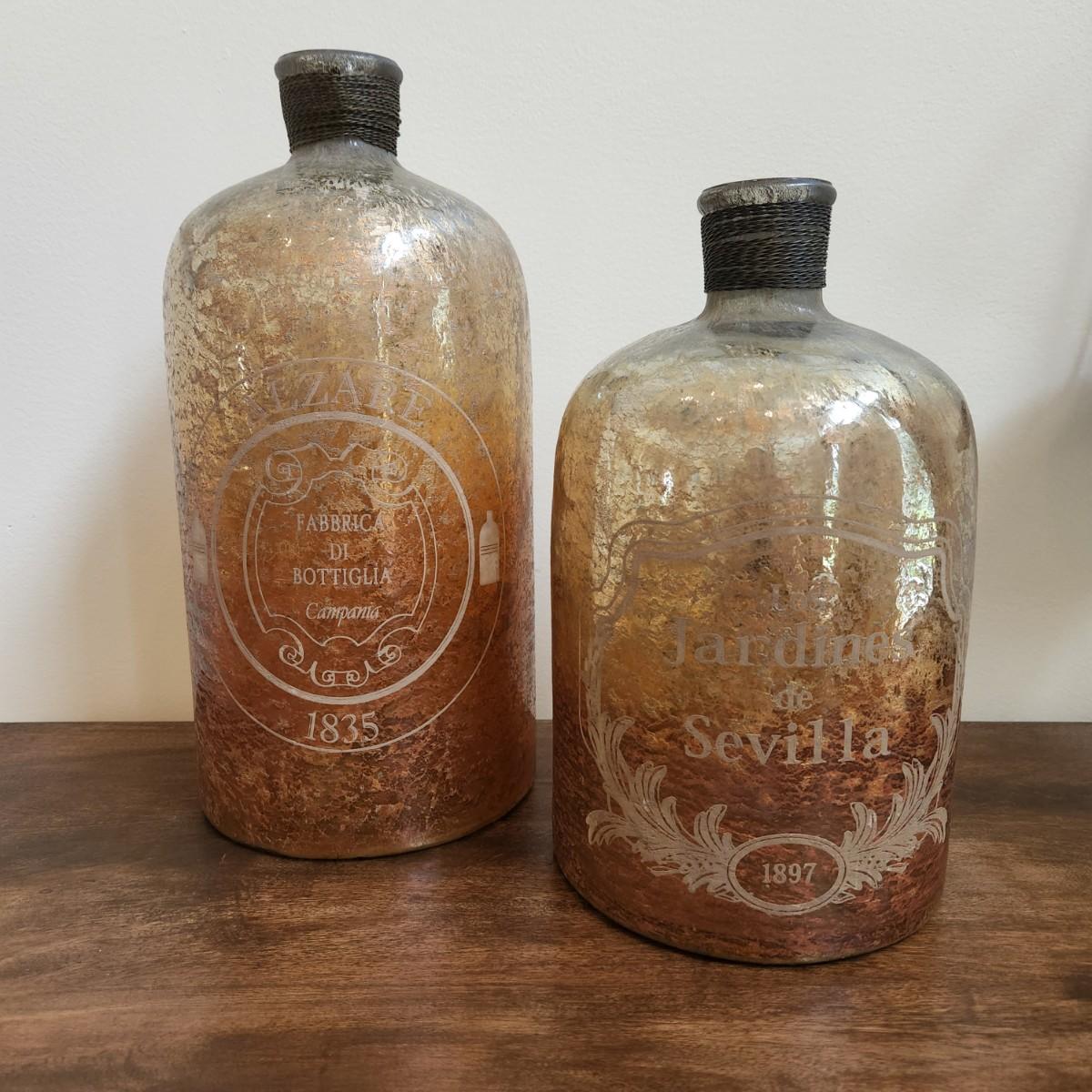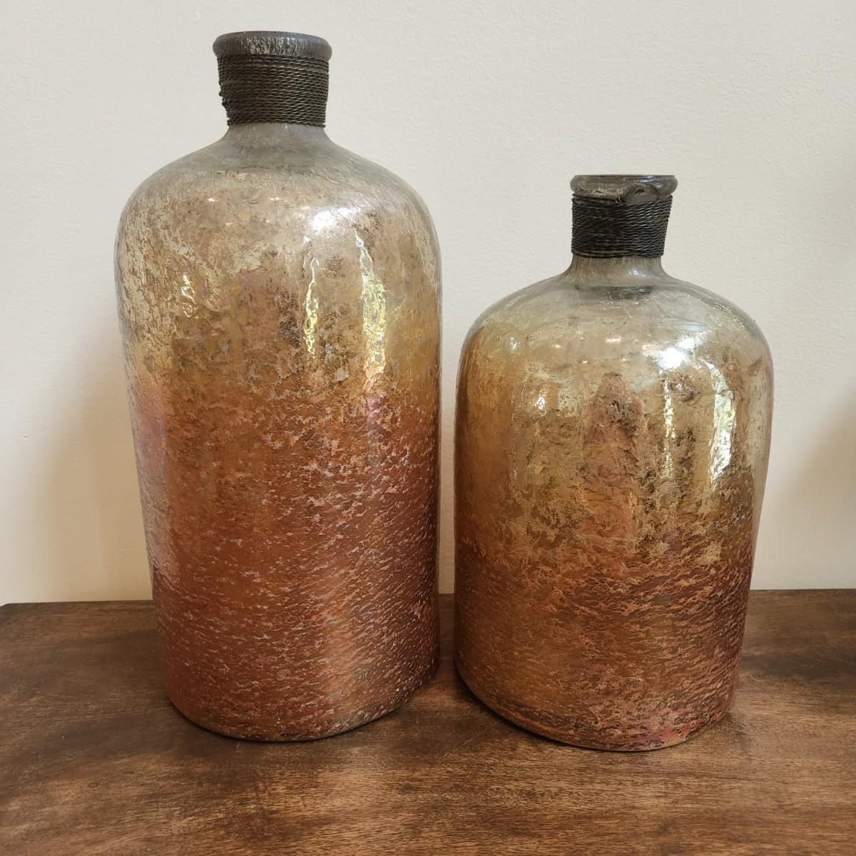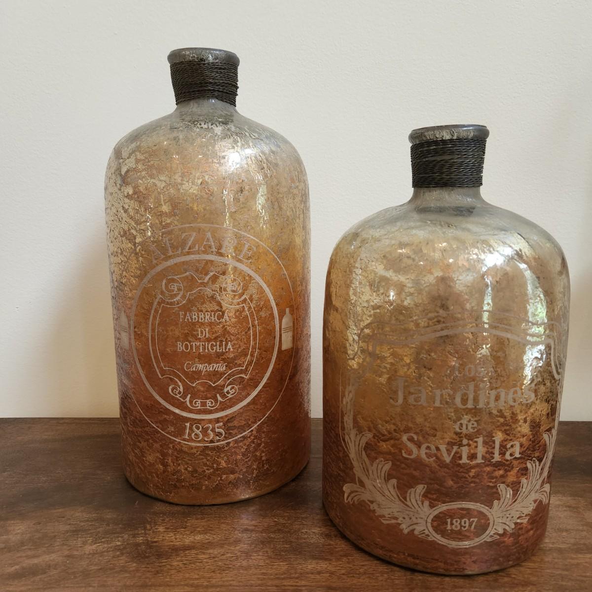 LOT 86RP: Set of Large Antiqued Mercury Style Glass Bottles