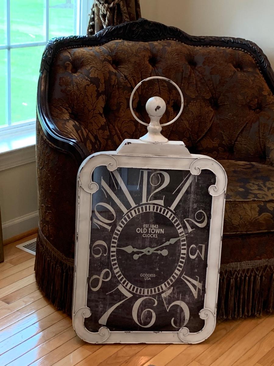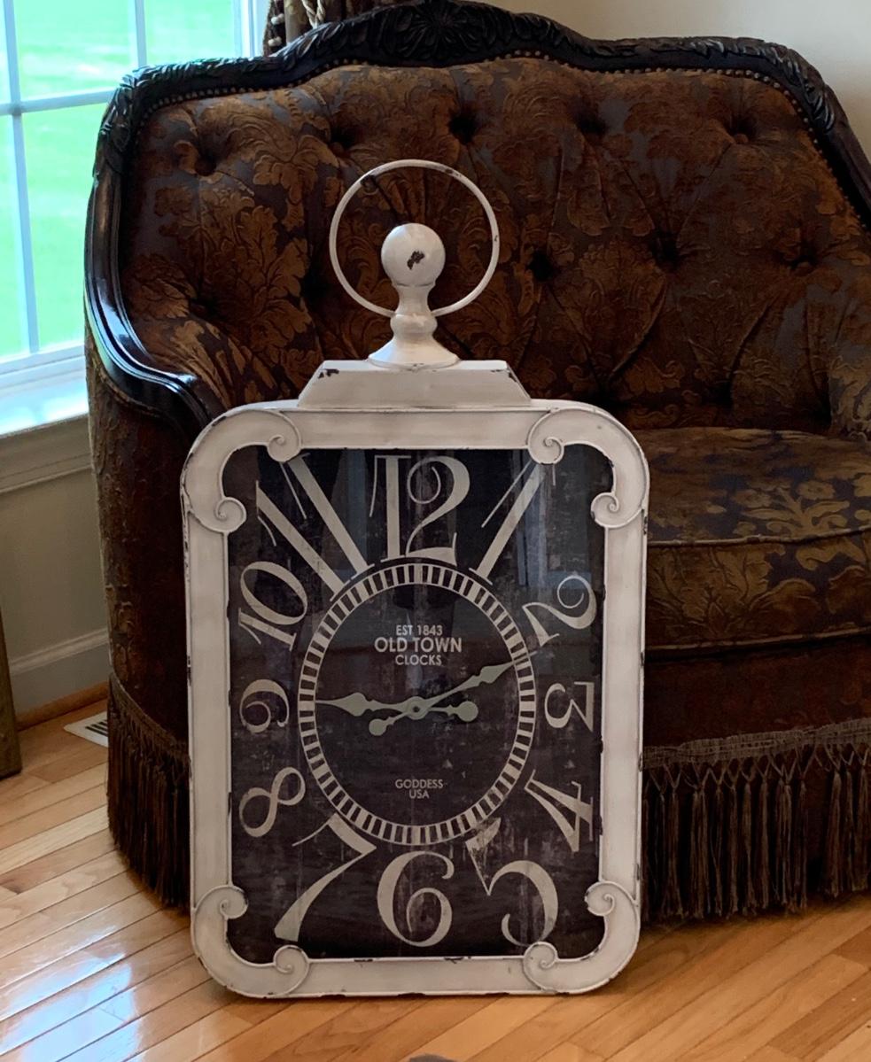 Beautiful antique rustic clock, all it needs is a battery and wall space! Measures approx. 37" x 20". Please see all pictures as they are the best representation of the items. You are bidding on the clock only - chair is NOT included.