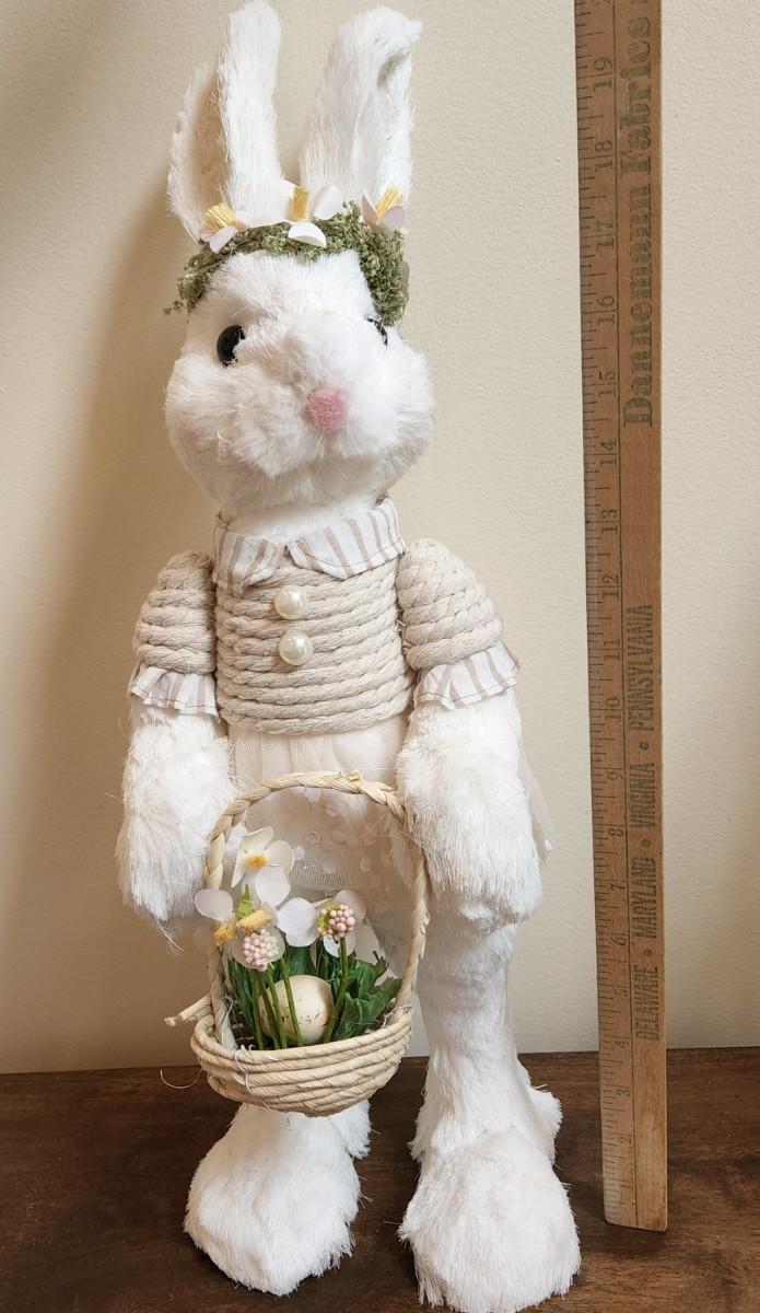 This collection contains a large 16" white sisal Spring bunny with eyelashes, an adorable bunny with a dress, pearl-like buttons and Egg w/flower basket, two cream corrugated wooden bunnies w/ metal ears and a metal bunny w/ a straw ribbon. All are in great condition and will be a great addition to your Spring collection! Please see all pictures as they are the best representation of the items. The pictures show condition, measurements if taken, and what is included in the lot. Due to the large amount that we photograph and the time frame, we are not always able to take measurements. All items unless noted, are pre-owned and have been used. If you purchased furniture, you must bring help. We do not allow one person to carry large furniture out on their own. Bring help, tools and a truck for the safety of our client’s homes, and your personal safety. Any damages that result to the property including walls, and floors due to moving of the furniture will be charged to the buyer. Company policy. Thank you.