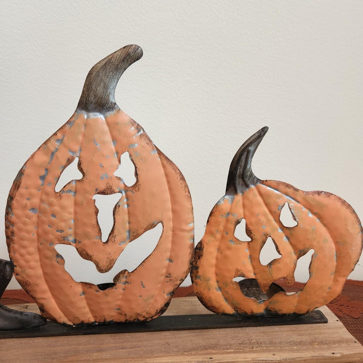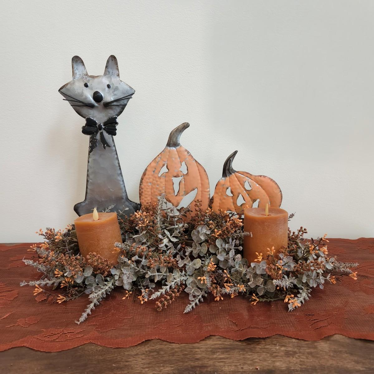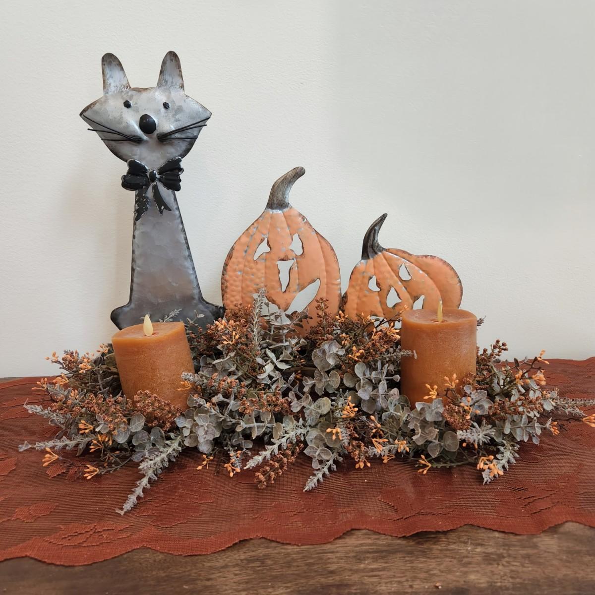 In this collection you are getting a large wood and aluminum cat and pumpkin tea-light holder, 70" fall lace table runner, two Luminara candles (untested), and three beautiful eucalyptus fall candle rings. All in great condition and the whole collection could be your new Fall/Halloween centerpiece. Please see all pictures as they are the best representation of the items. The pictures show condition, measurements if taken, and what is included in the lot. Due to the large amount that we photograph and the time frame, we are not always able to take measurements. All items unless noted, are pre-owned and have been used. If you purchased furniture, you must bring help. We do not allow one person to carry large furniture out on their own. Bring help, tools and a truck for the safety of our client’s homes, and your personal safety. Any damages that result to the property including walls, and floors due to moving of the furniture will be charged to the buyer. Company policy. Thank you.