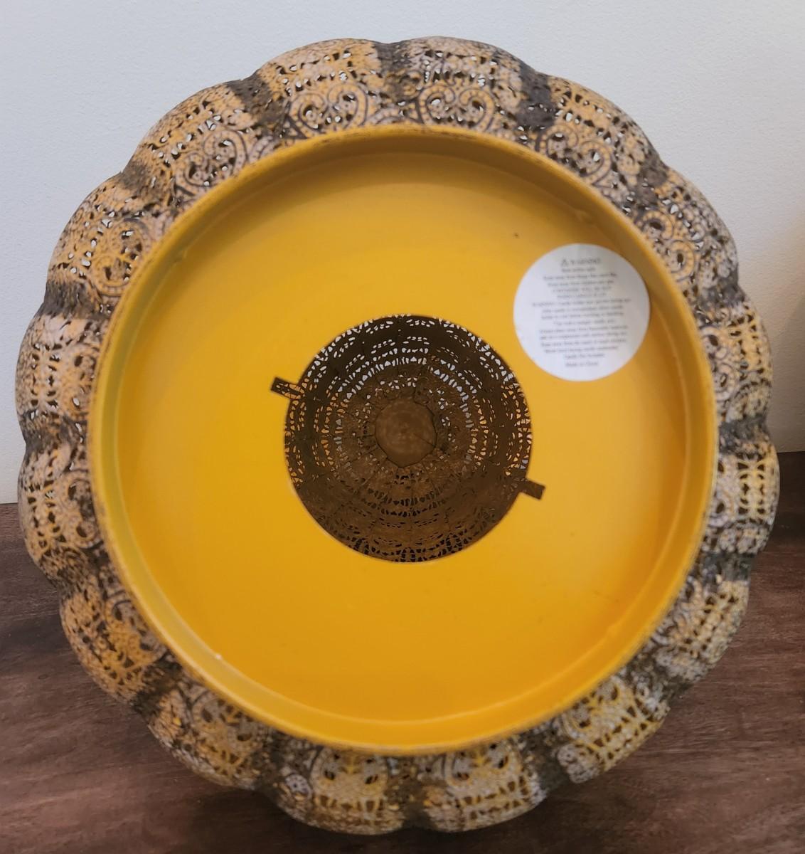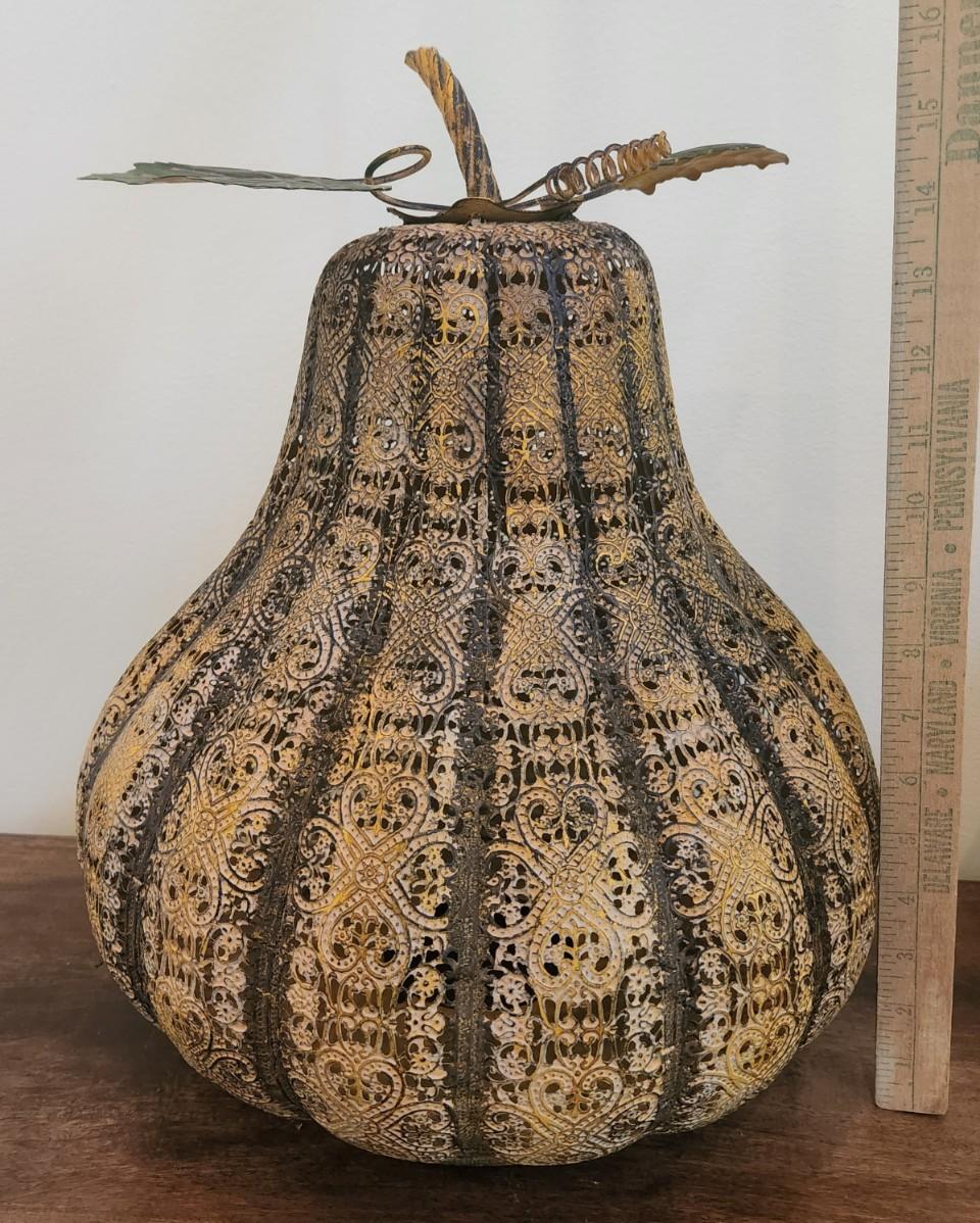 This collection is offering you a large pumpkin/gourd embossed metal lantern, a maple Yankee candle that smells like Fall, a large white pumpkin with an unidentified brand label, and three beautiful candle rings. Please note that the large metal pumpkin could possible be missing a piece underneath. Please see all pictures as they are the best representation of the items. The pictures show condition, measurements if taken, and what is included in the lot. Due to the large amount that we photograph and the time frame, we are not always able to take measurements. All items unless noted, are pre-owned and have been used. If you purchased furniture, you must bring help. We do not allow one person to carry large furniture out on their own. Bring help, tools and a truck for the safety of our client’s homes, and your personal safety. Any damages that result to the property including walls, and floors due to moving of the furniture will be charged to the buyer. Company policy. Thank you.