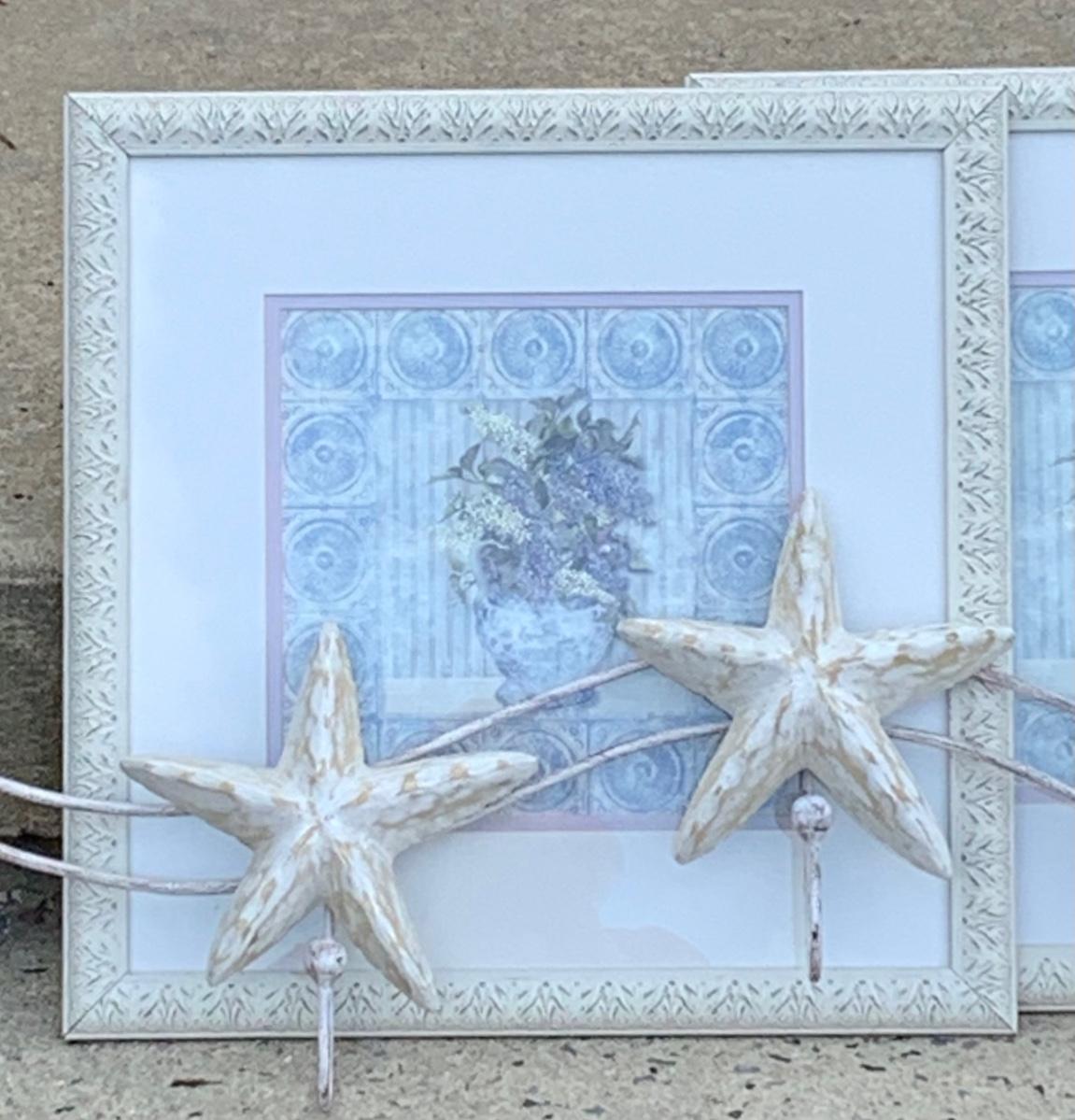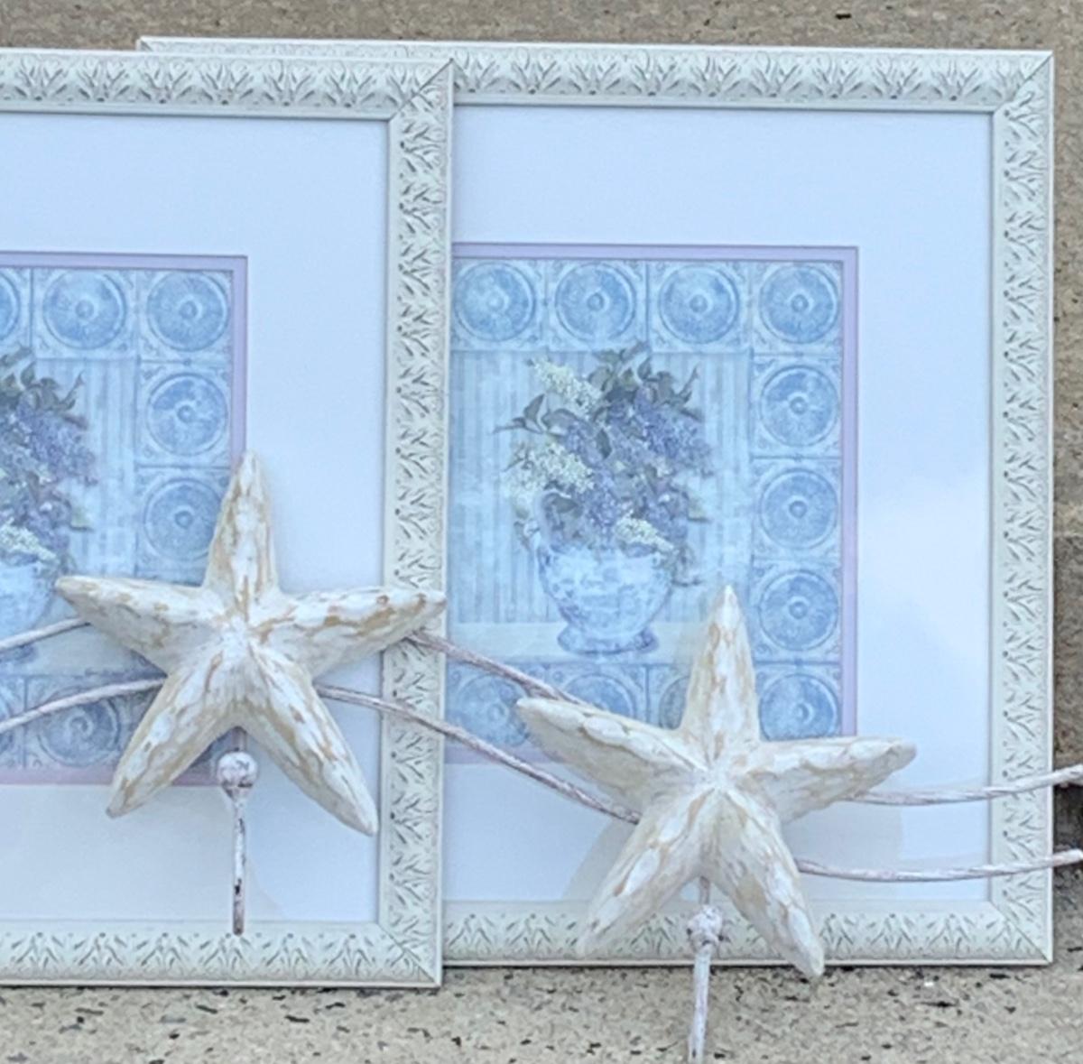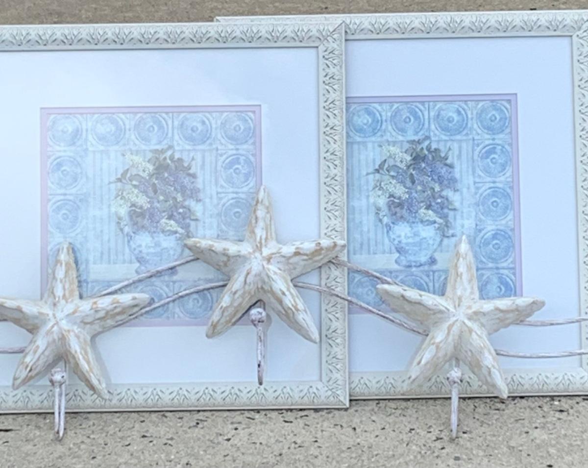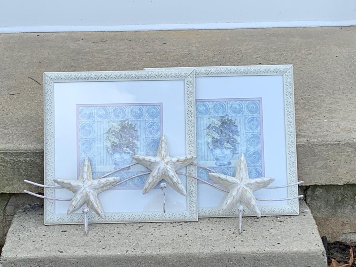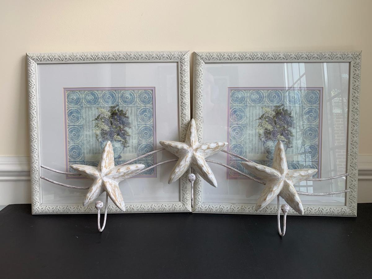 LOT 120: Floral Home Decor Prints "Lilacs" & White Washes Stars Wall Hooks