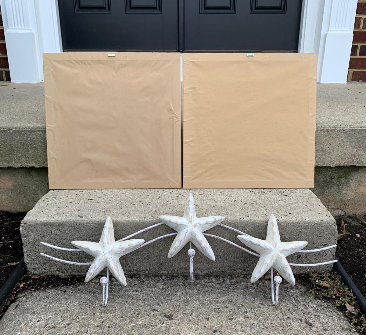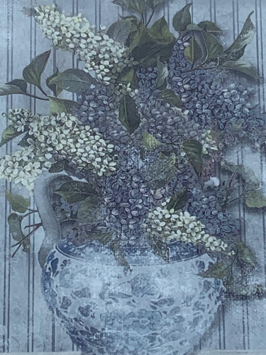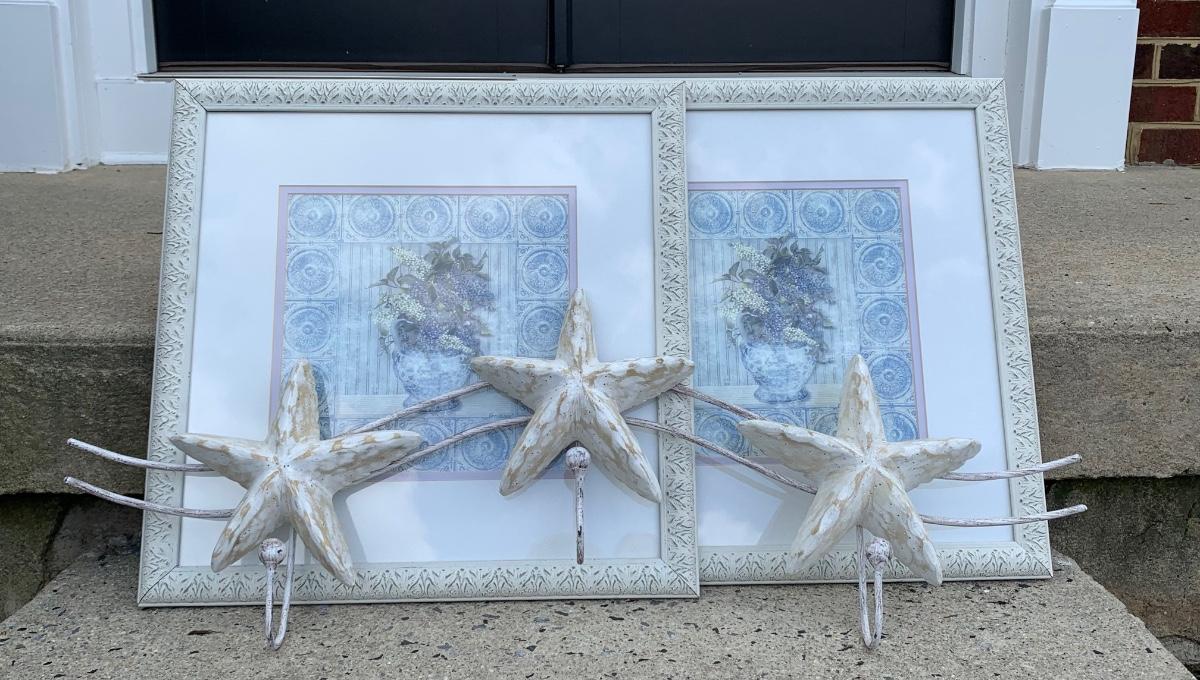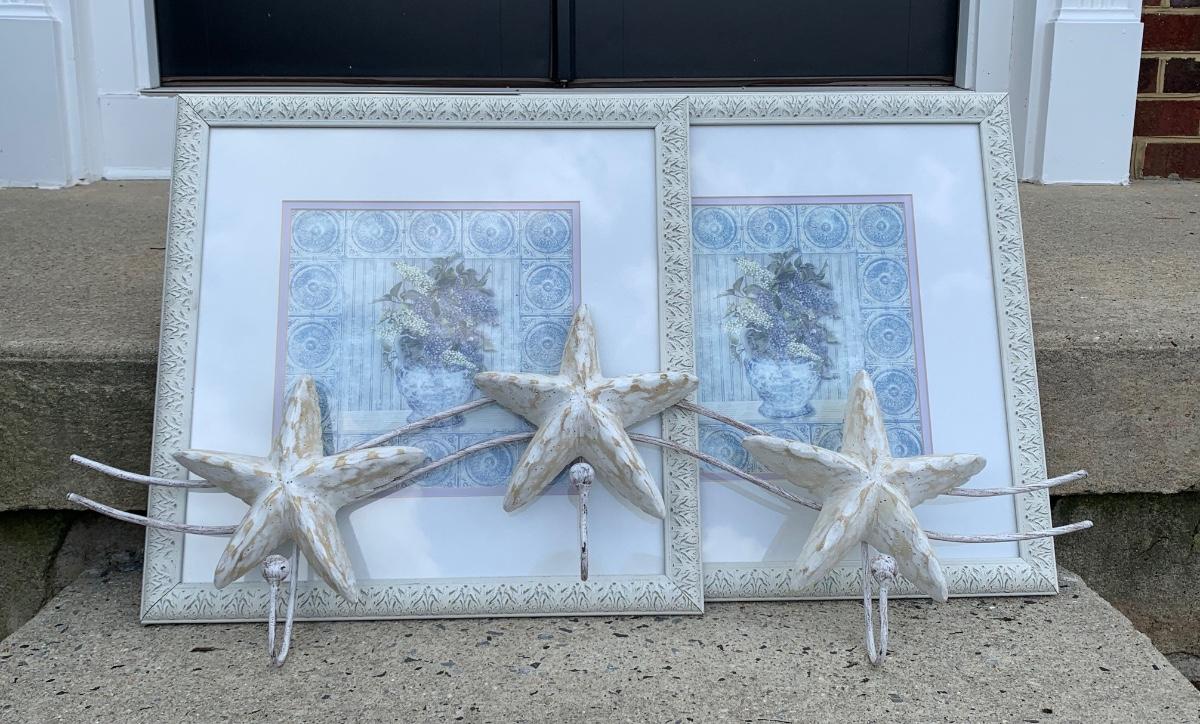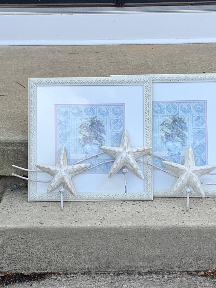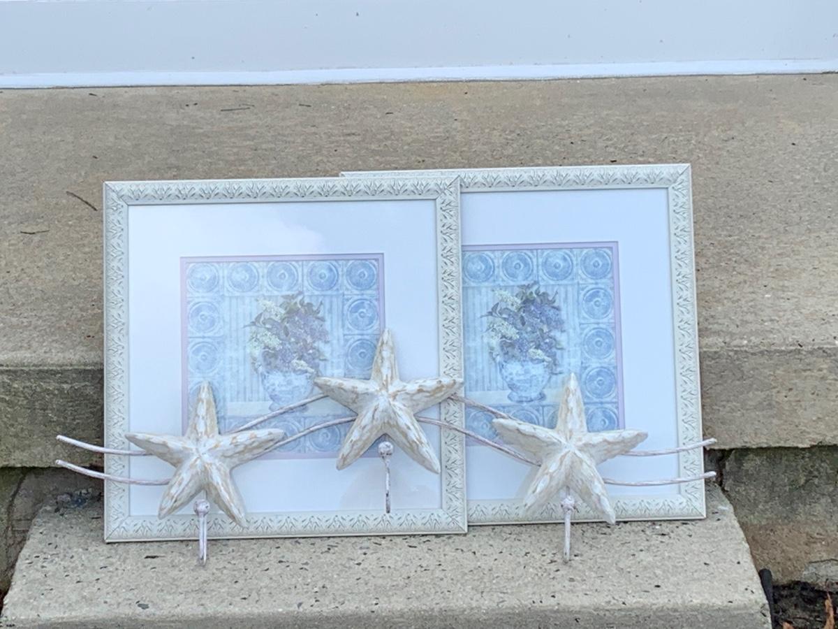 LOT 120: Floral Home Decor Prints "Lilacs" & White Washes Stars Wall Hooks