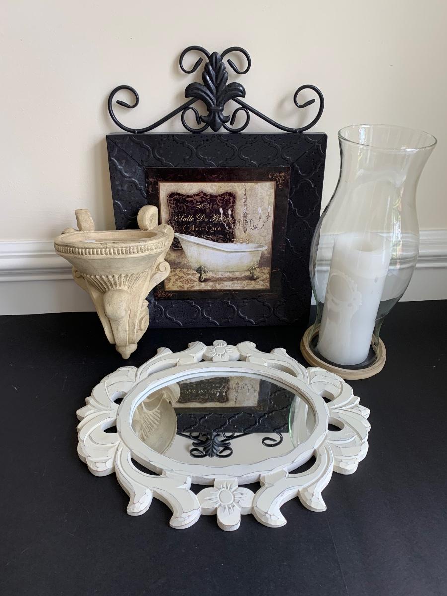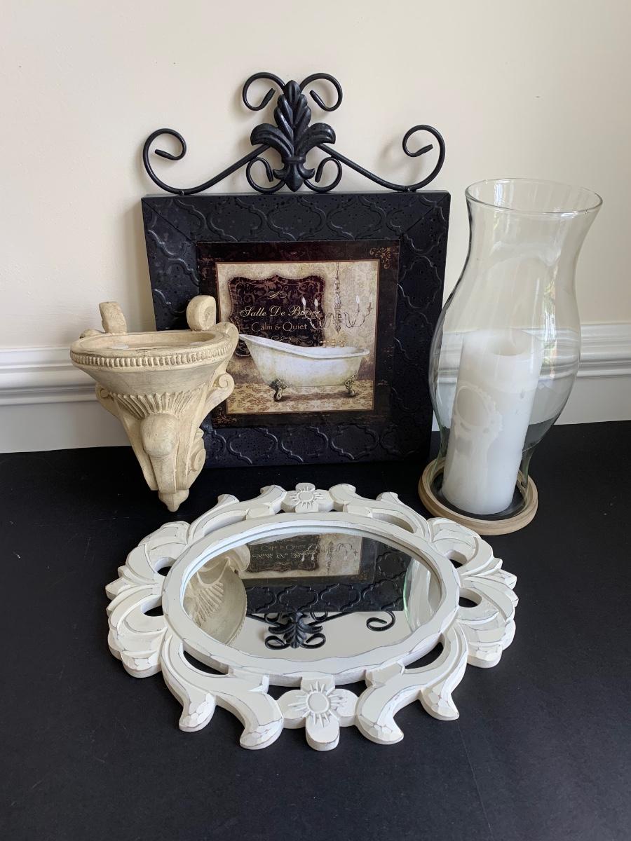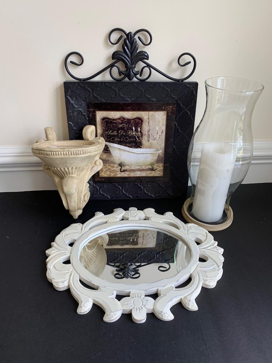 LOT 122R: Home Decor: Wall Pocket/Sconce, Floral Accent Mirror & More