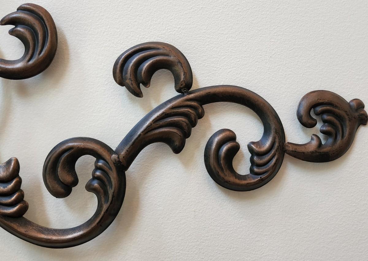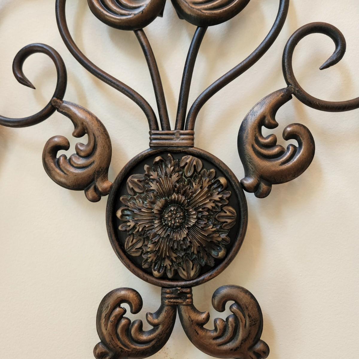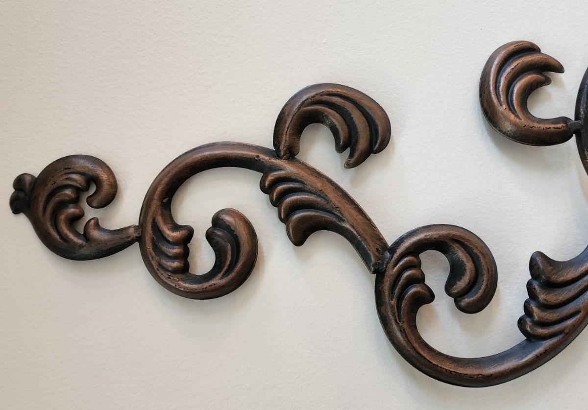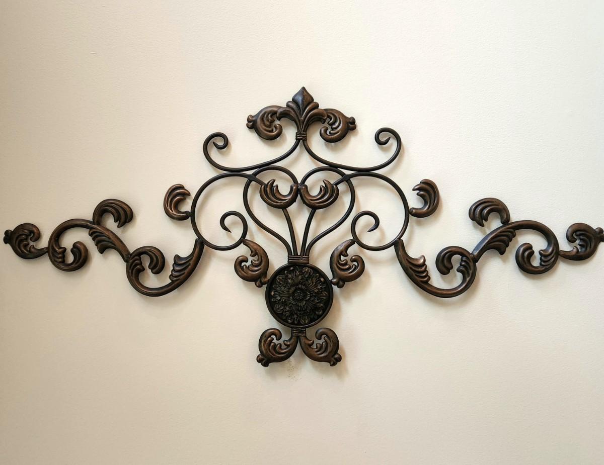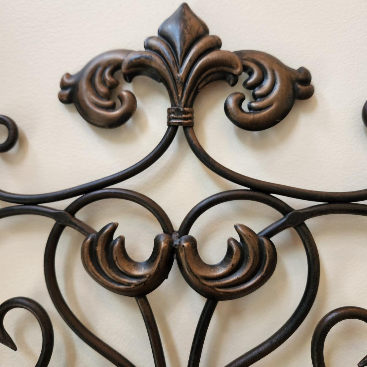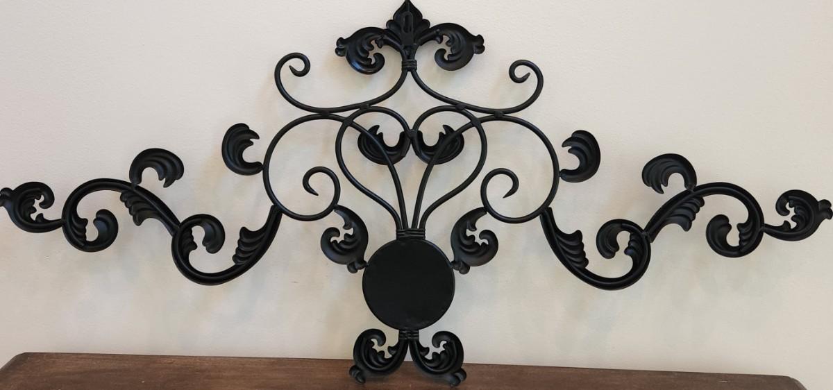 Item measures approx. 42" x 20". Very solid piece that is painted a rustic bronze color. Hole on back for hanging. The scrolling is such a classic design that will look great in any room of your home and add a touch of class. A great topper for doorways, windows, and paintings! Please see all pictures as they are the best representation of the items. The pictures show condition, measurements if taken, and what is included in the lot. Due to the large amount that we photograph and the time frame, we are not always able to take measurements. All items unless noted, are pre-owned and have been used. If you purchased furniture, you must bring help. We do not allow one person to carry large furniture out on their own. Bring help, tools and a truck for the safety of our client’s homes, and your personal safety. Any damages that result to the property including walls, and floors due to moving of the furniture will be charged to the buyer. Company policy. Thank you.