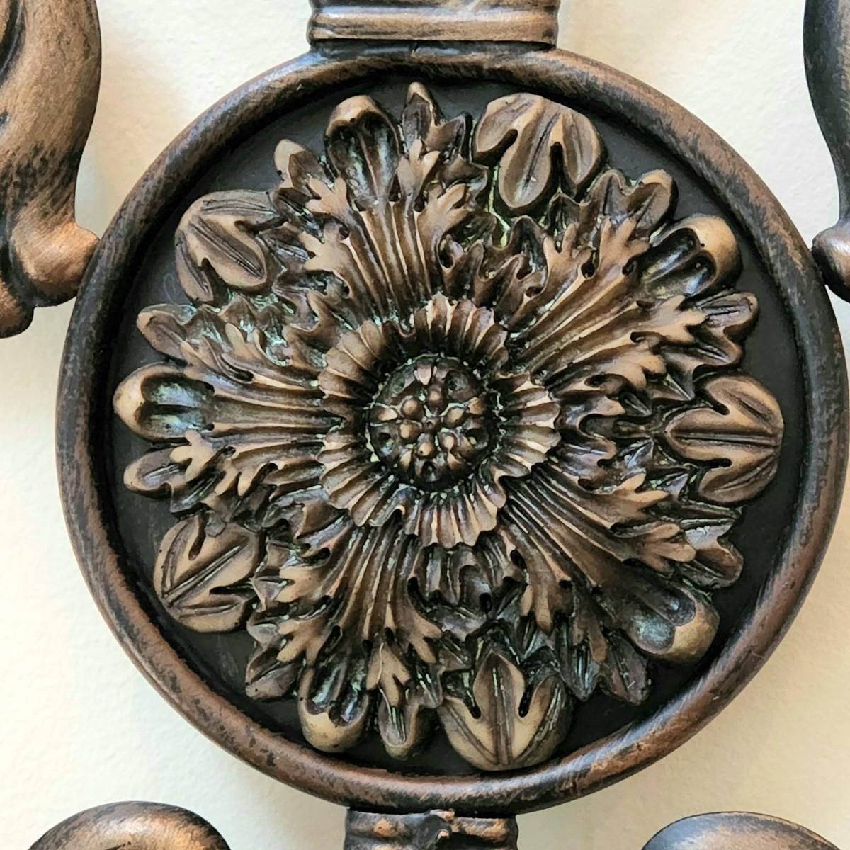 LOT 128RP: Ornate Painted Metal Scroll Wall Plaque