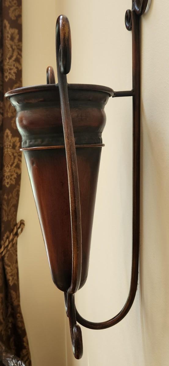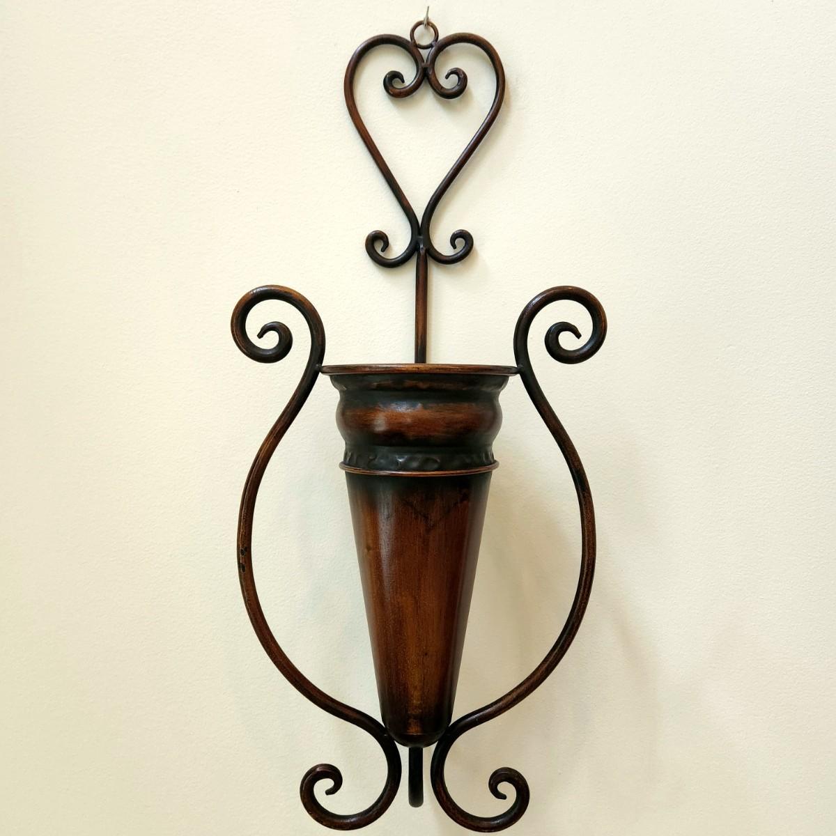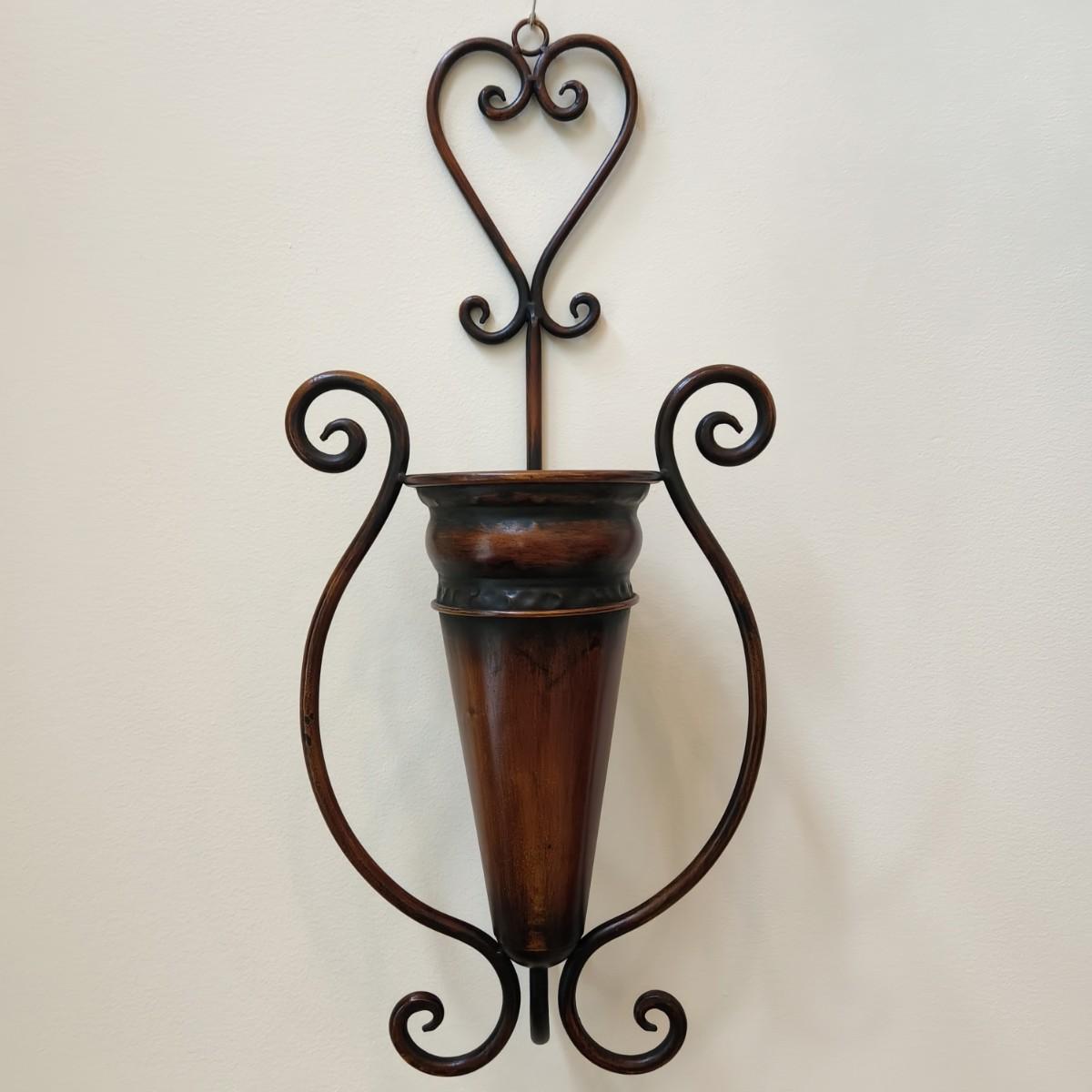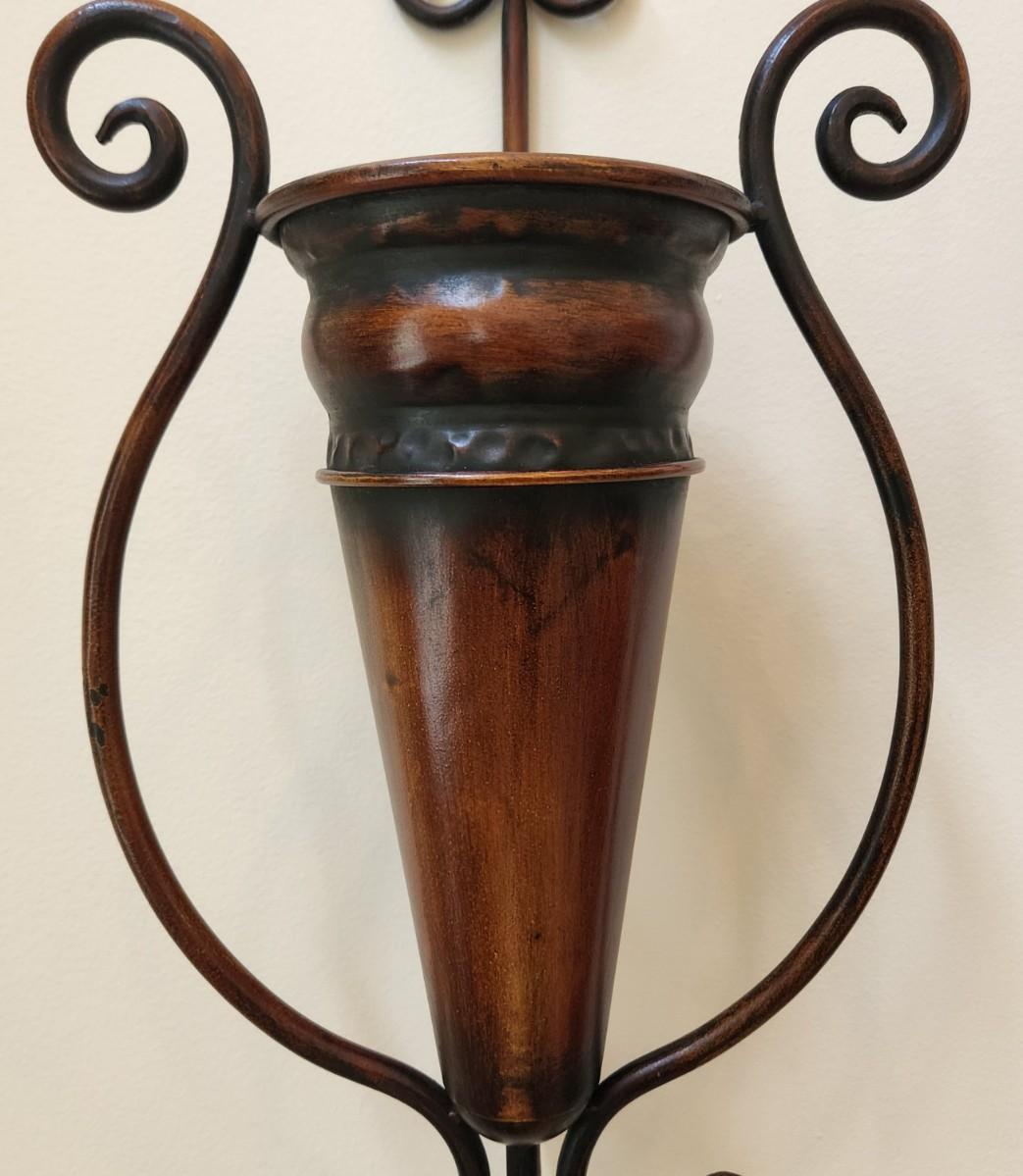 Measures approx. 25" tall. A very rustic piece with a painted bronze finish that will look great anywhere. Just add some silk flowers or greenery! Loop at the top for hanging. Please see all pictures as they are the best representation of the items. The pictures show condition, measurements if taken, and what is included in the lot. Due to the large amount that we photograph and the time frame, we are not always able to take measurements. All items unless noted, are pre-owned and have been used. If you purchased furniture, you must bring help. We do not allow one person to carry large furniture out on their own. Bring help, tools and a truck for the safety of our client’s homes, and your personal safety. Any damages that result to the property including walls, and floors due to moving of the furniture will be charged to the buyer. Company policy. Thank you.