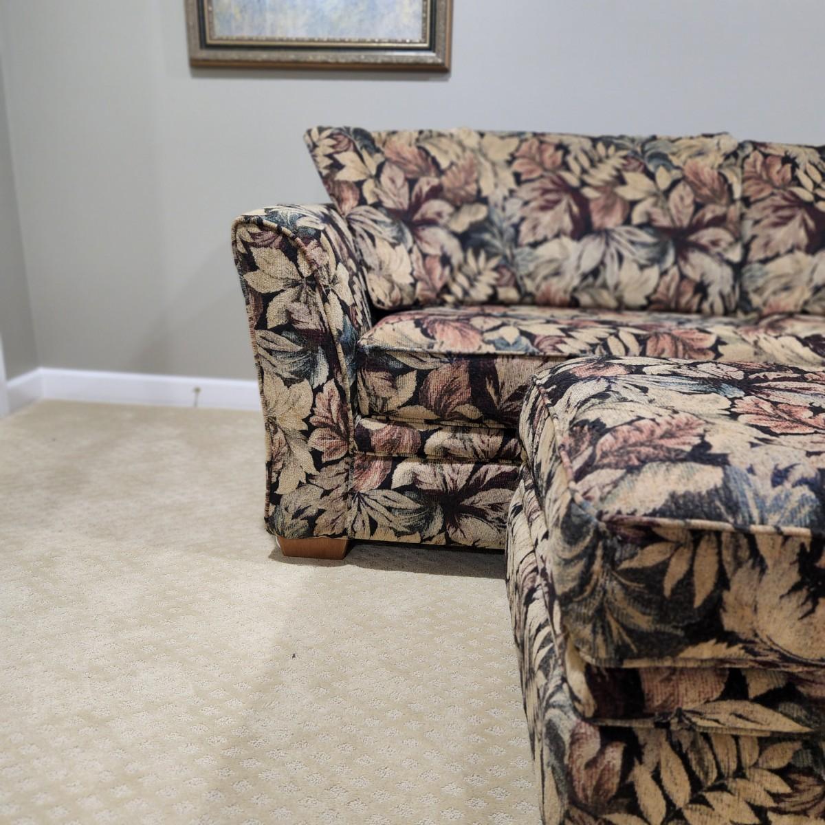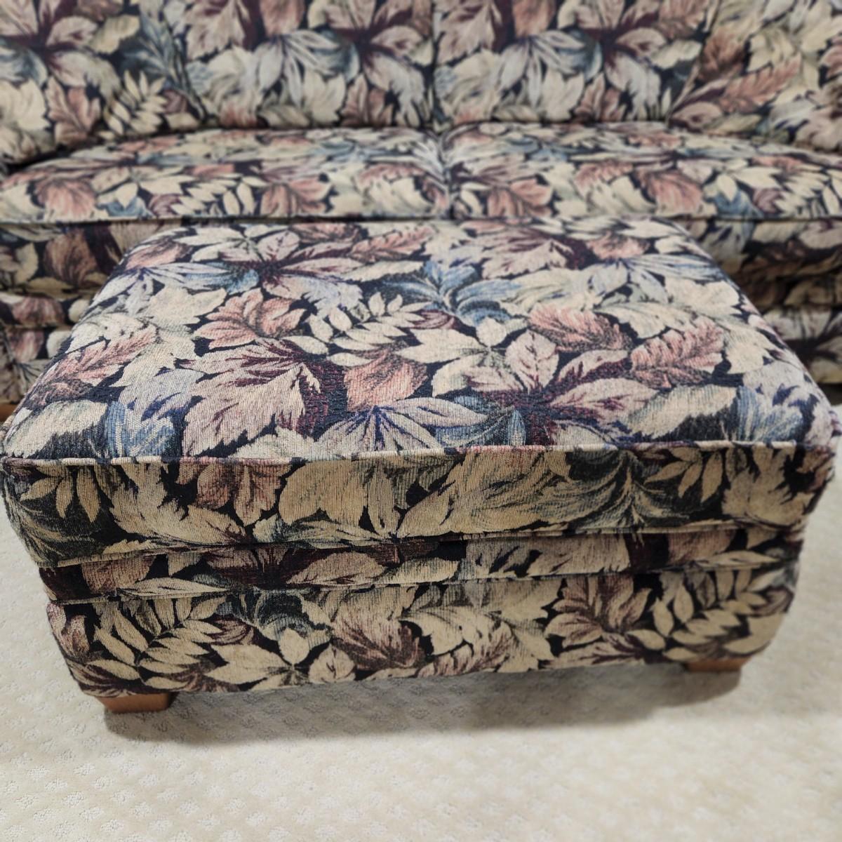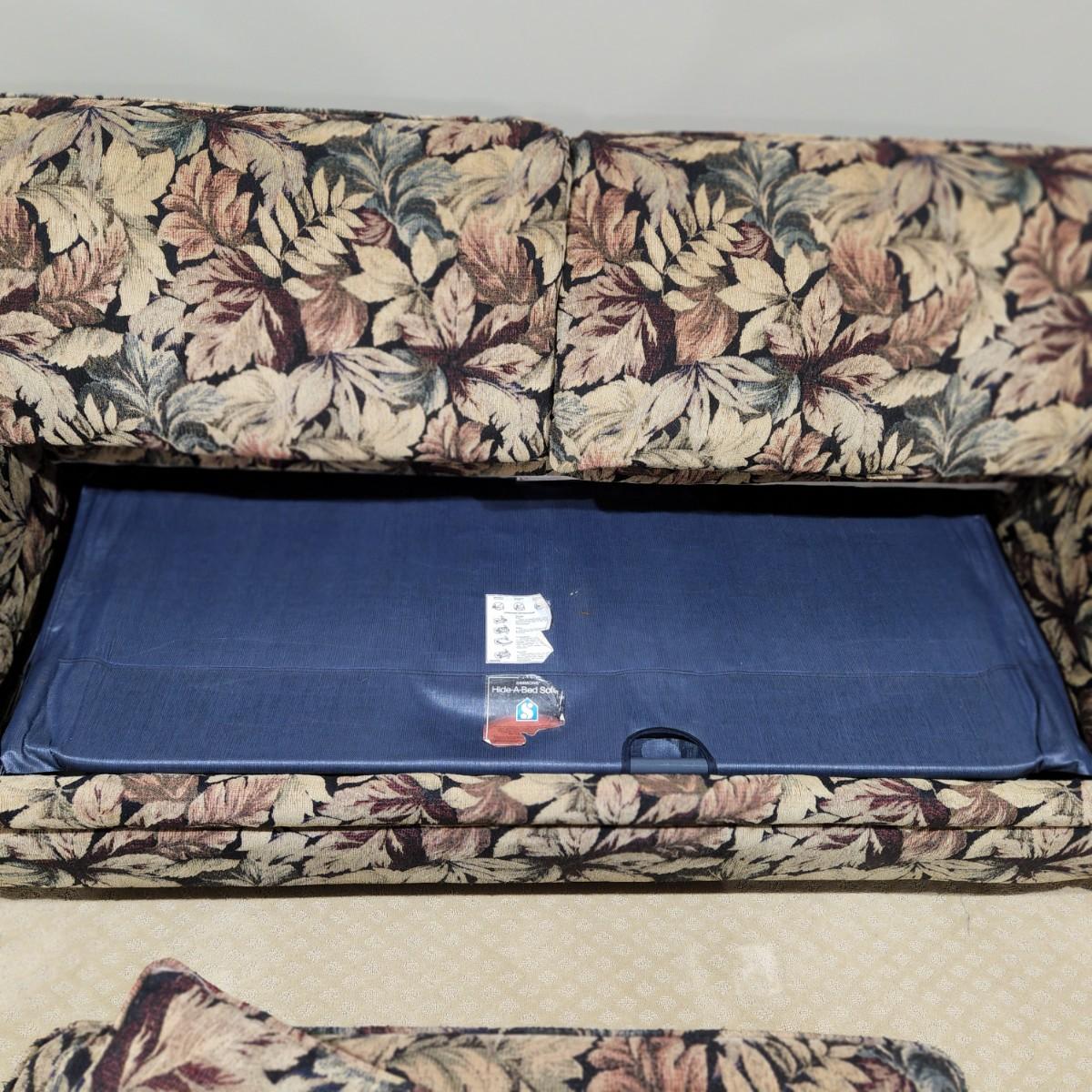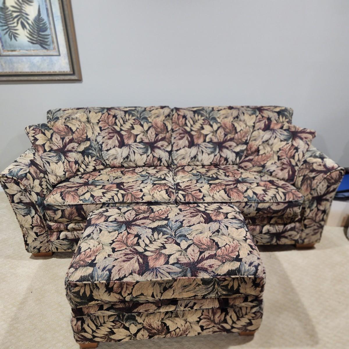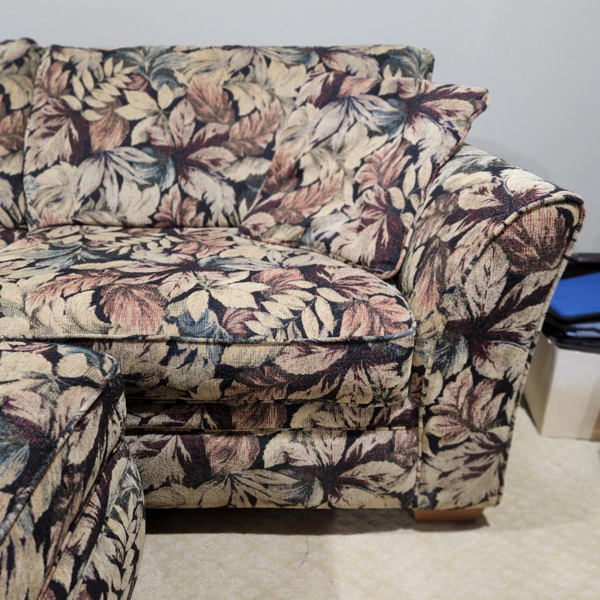 LOT 136RP: Leaf Pattern Full Sofa Bed w/ Storage Ottoman