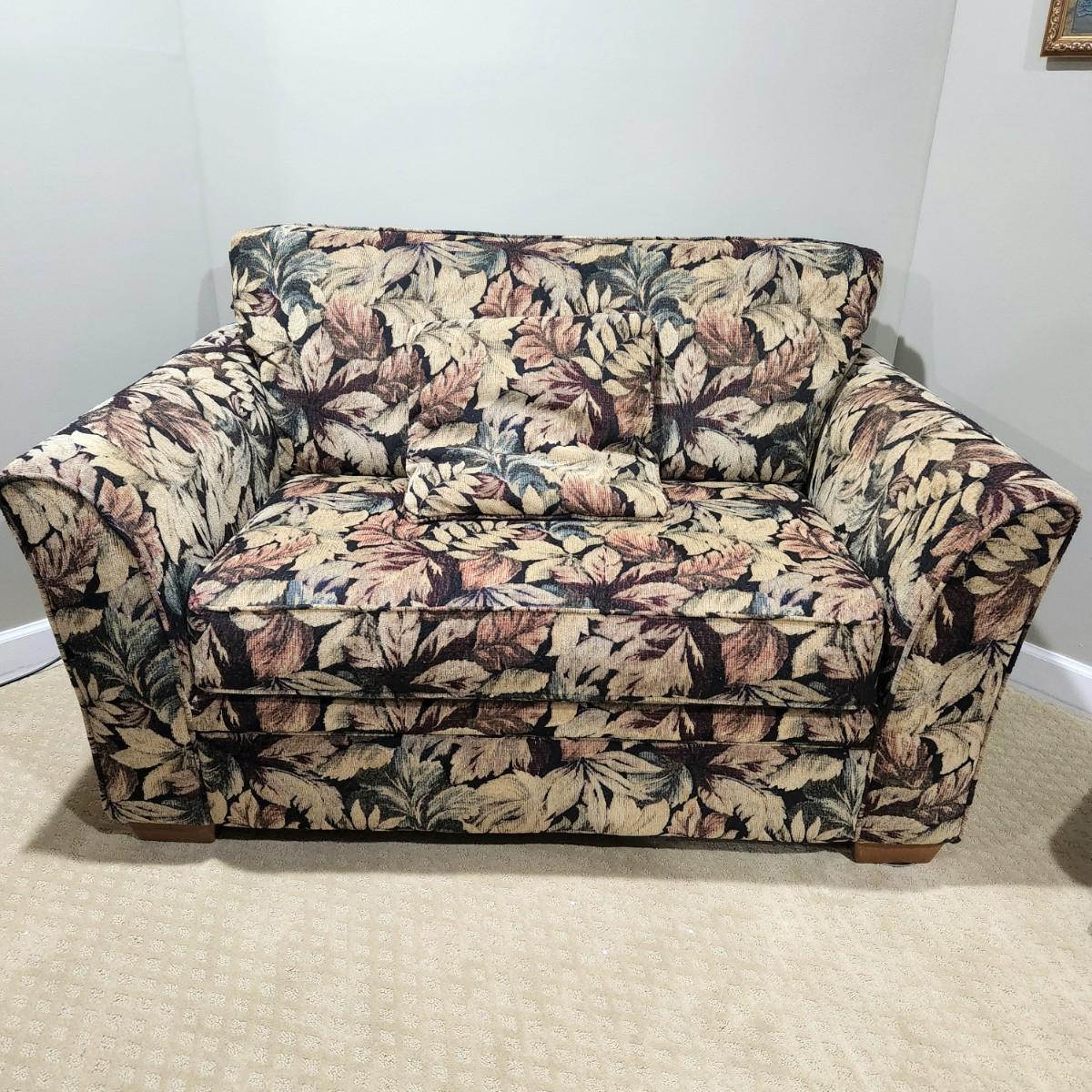 LOT 139RP: Leaf Pattern Loveseat Pull-Out Twin Bed