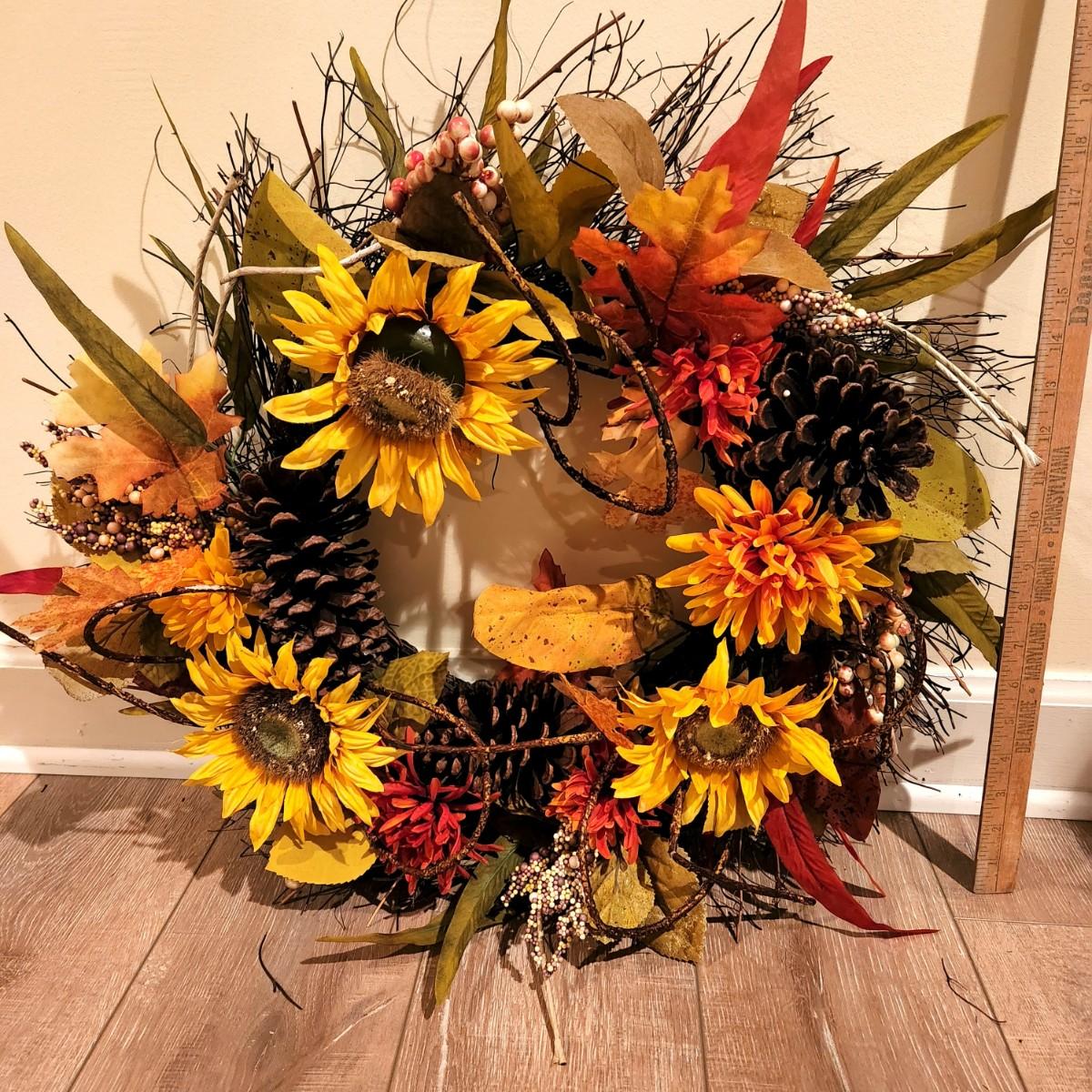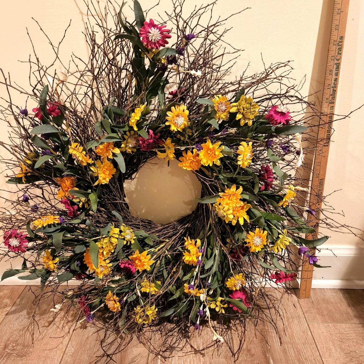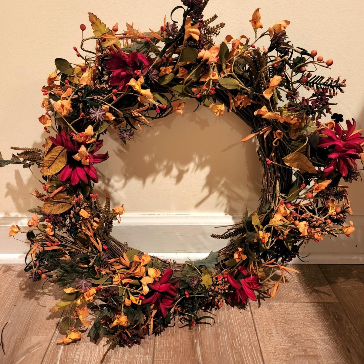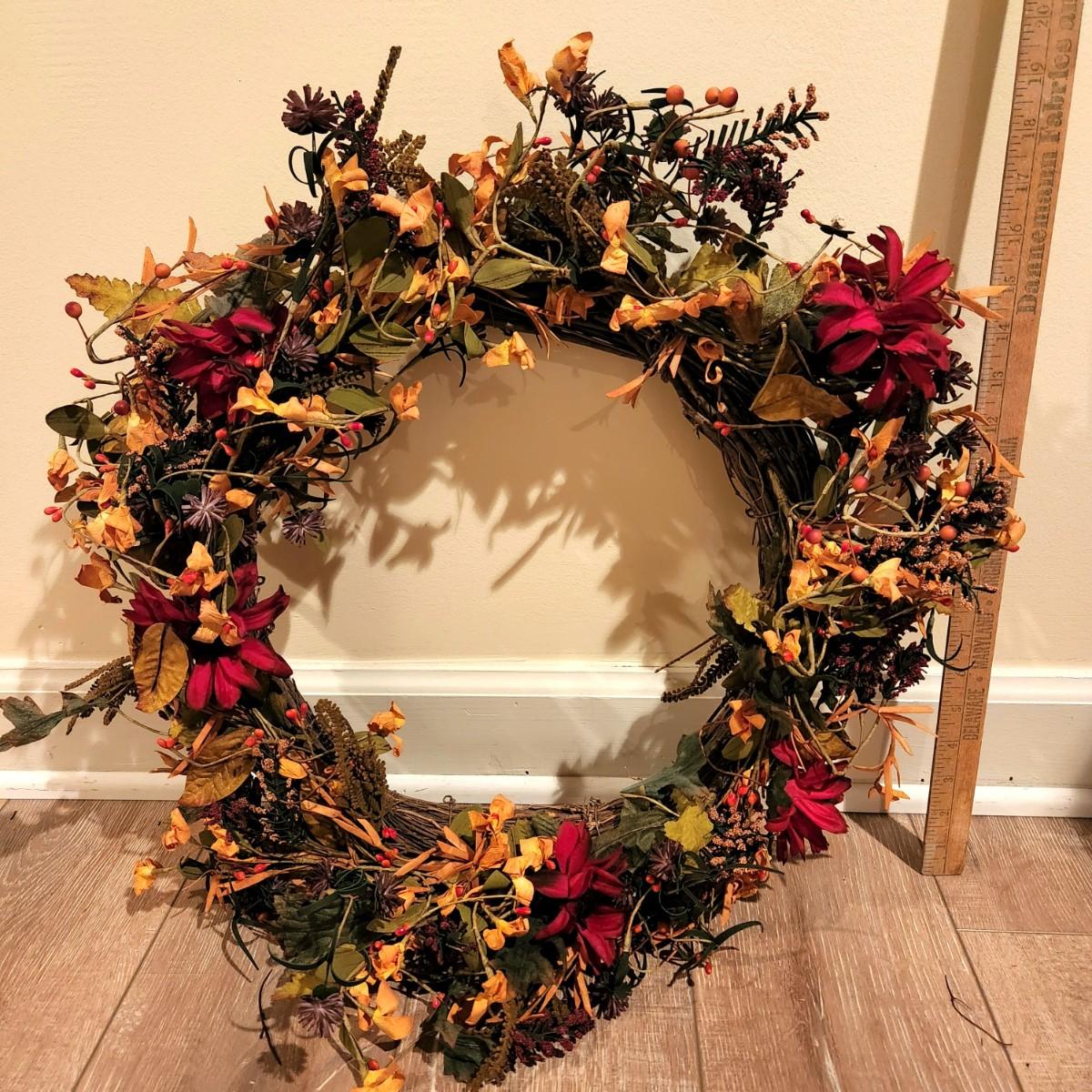 You're getting three beautiful well made wreaths with beautiful life-like flowers. Great condition. Please see all pictures as they are the best representation of the items. The pictures show condition, measurements if taken, and what is included in the lot. Due to the large amount that we photograph and the time frame, we are not always able to take measurements. All items unless noted, are pre-owned and have been used. If you purchased furniture, you must bring help. We do not allow one person to carry large furniture out on their own. Bring help, tools and a truck for the safety of our client’s homes, and your personal safety. Any damages that result to the property including walls, and floors due to moving of the furniture will be charged to the buyer. Company policy. Thank you.