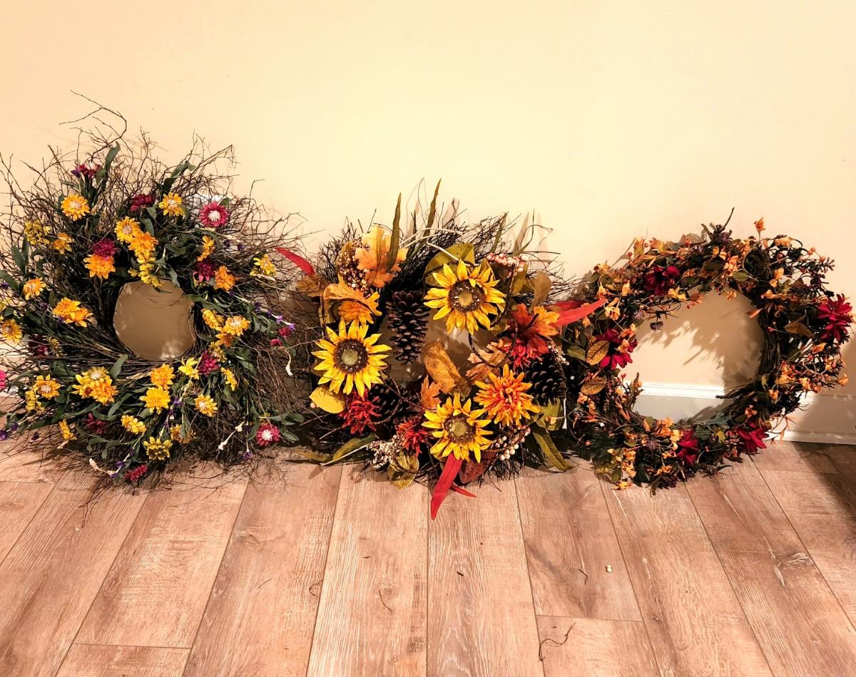 LOT 140RP: Three Artificial Wildflower Wreathes