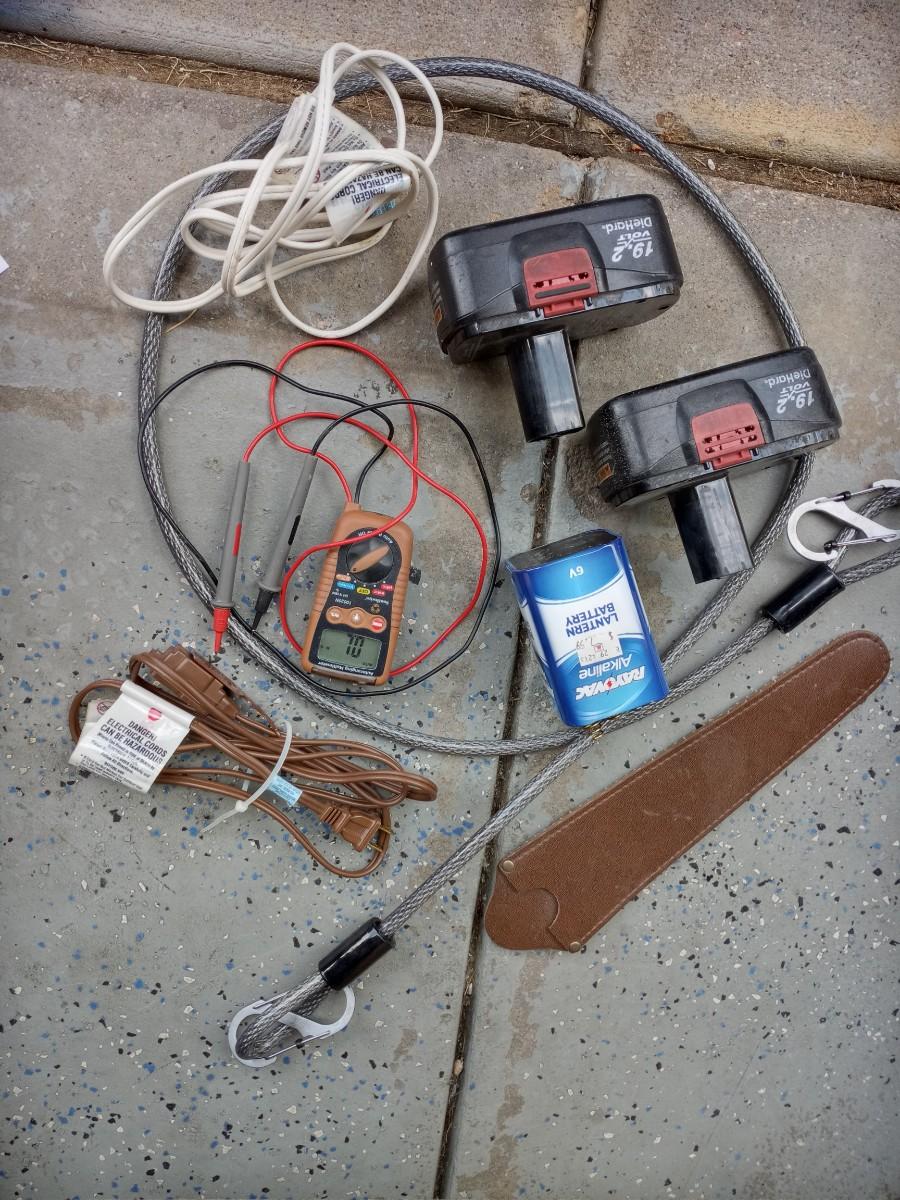 LOT 143 MULTI METER, CABLE, POWER TOOL BATTERIES AND MORE