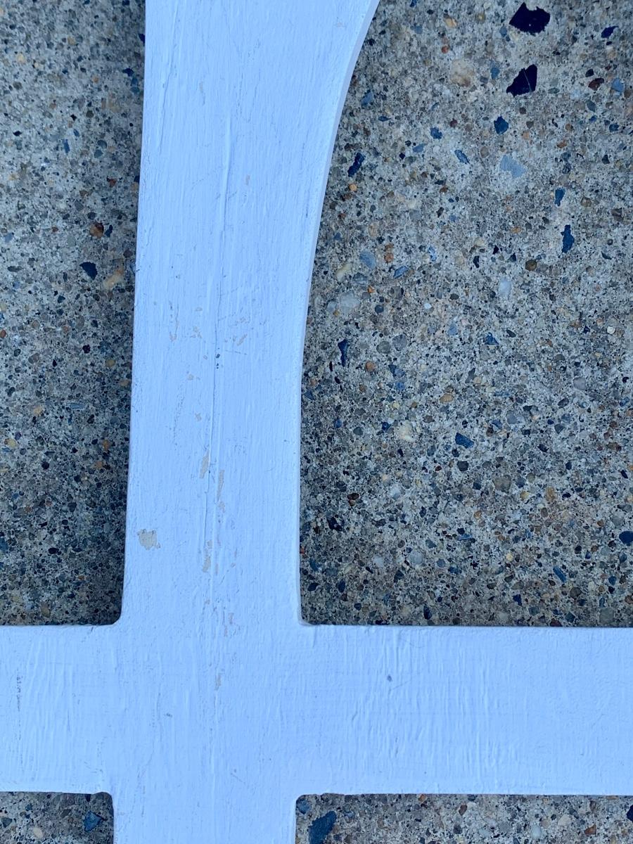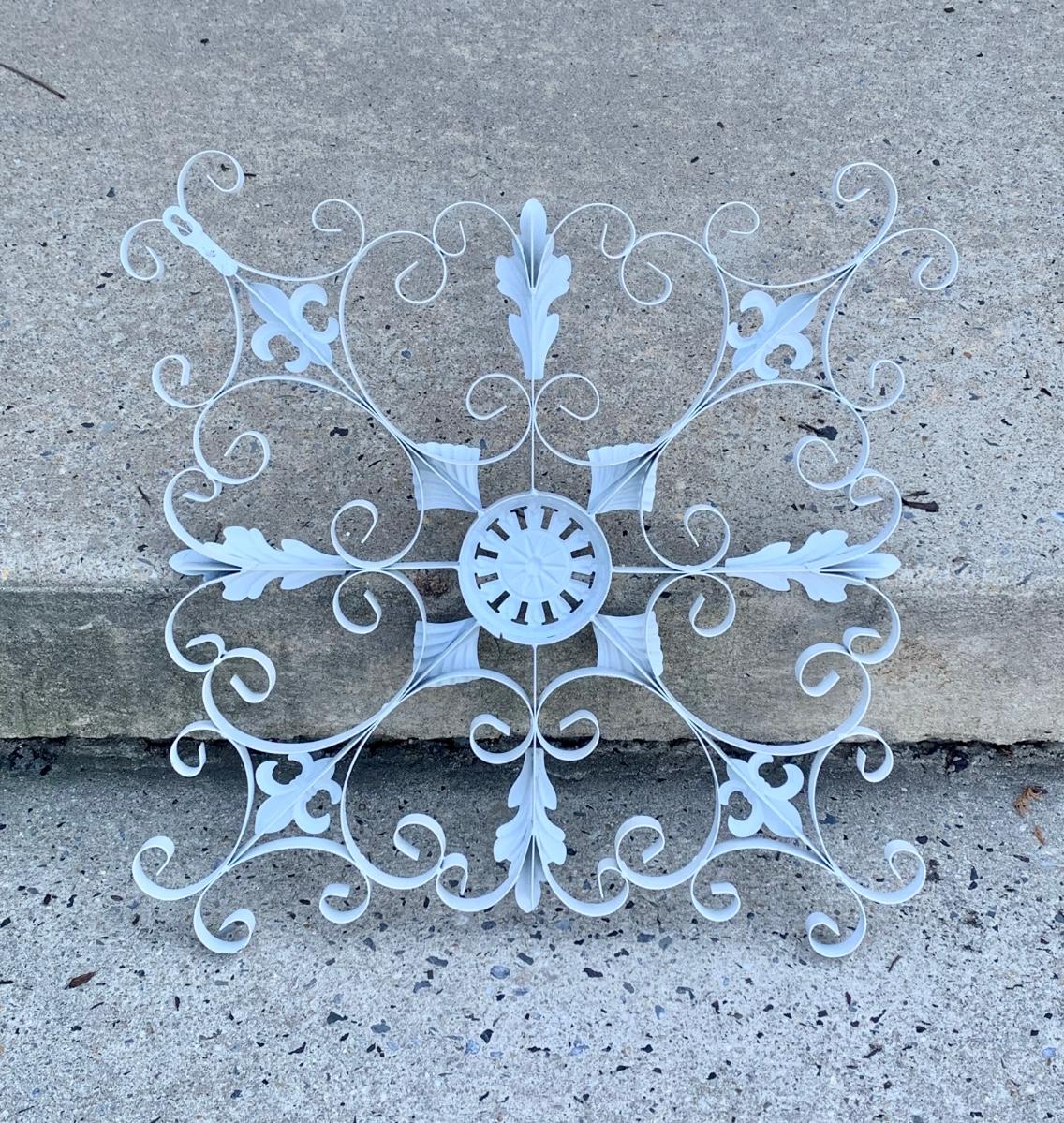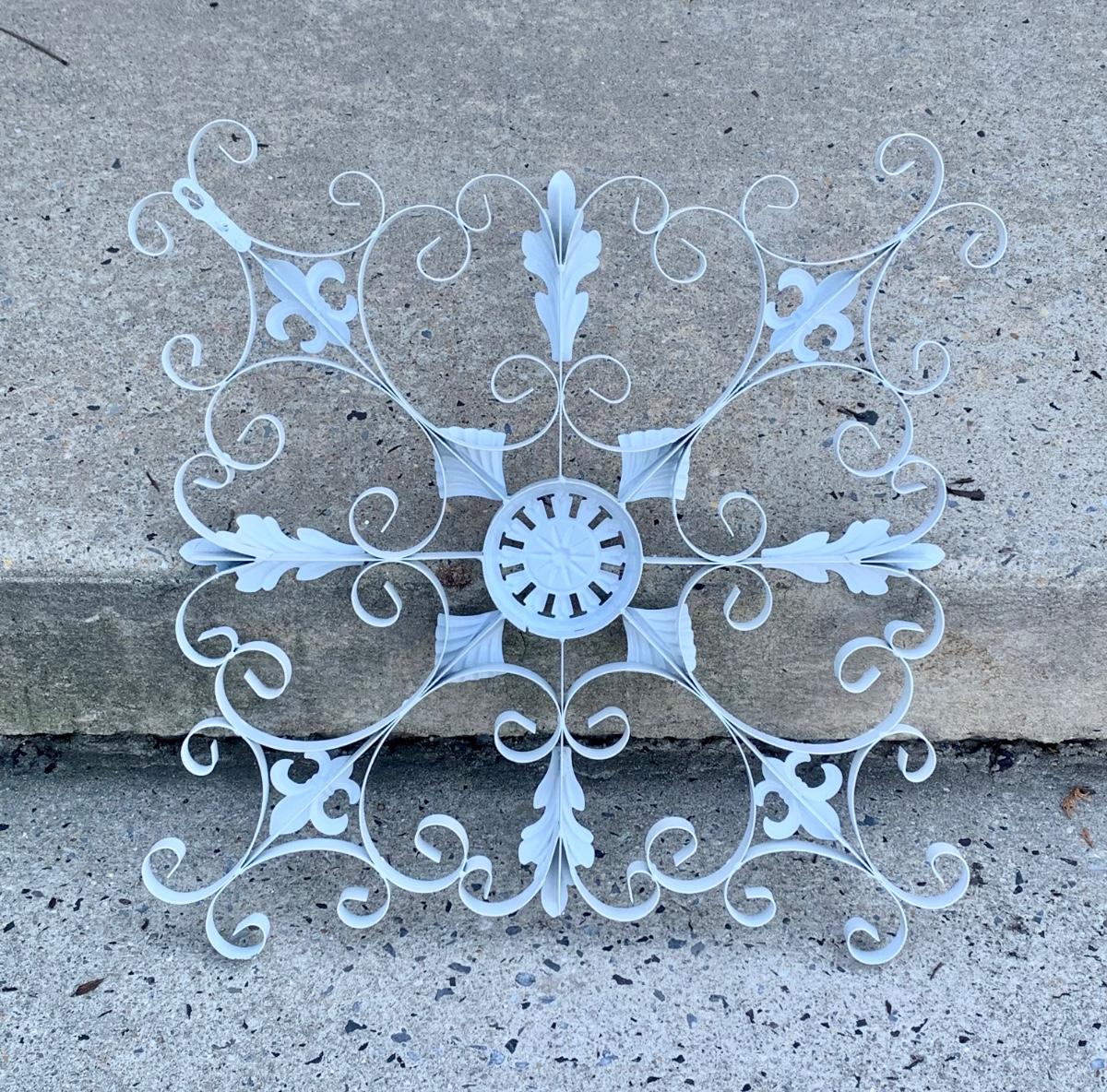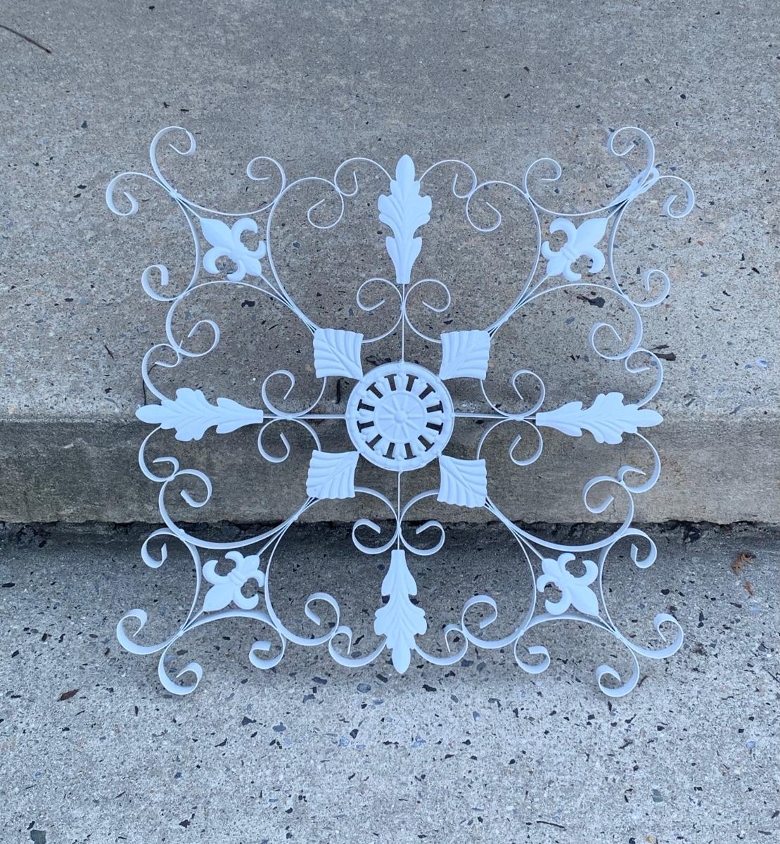 Lot 129-00R  Pier One Wood Arched Cathedral Window Decor & Metal  Medallion Wall Art