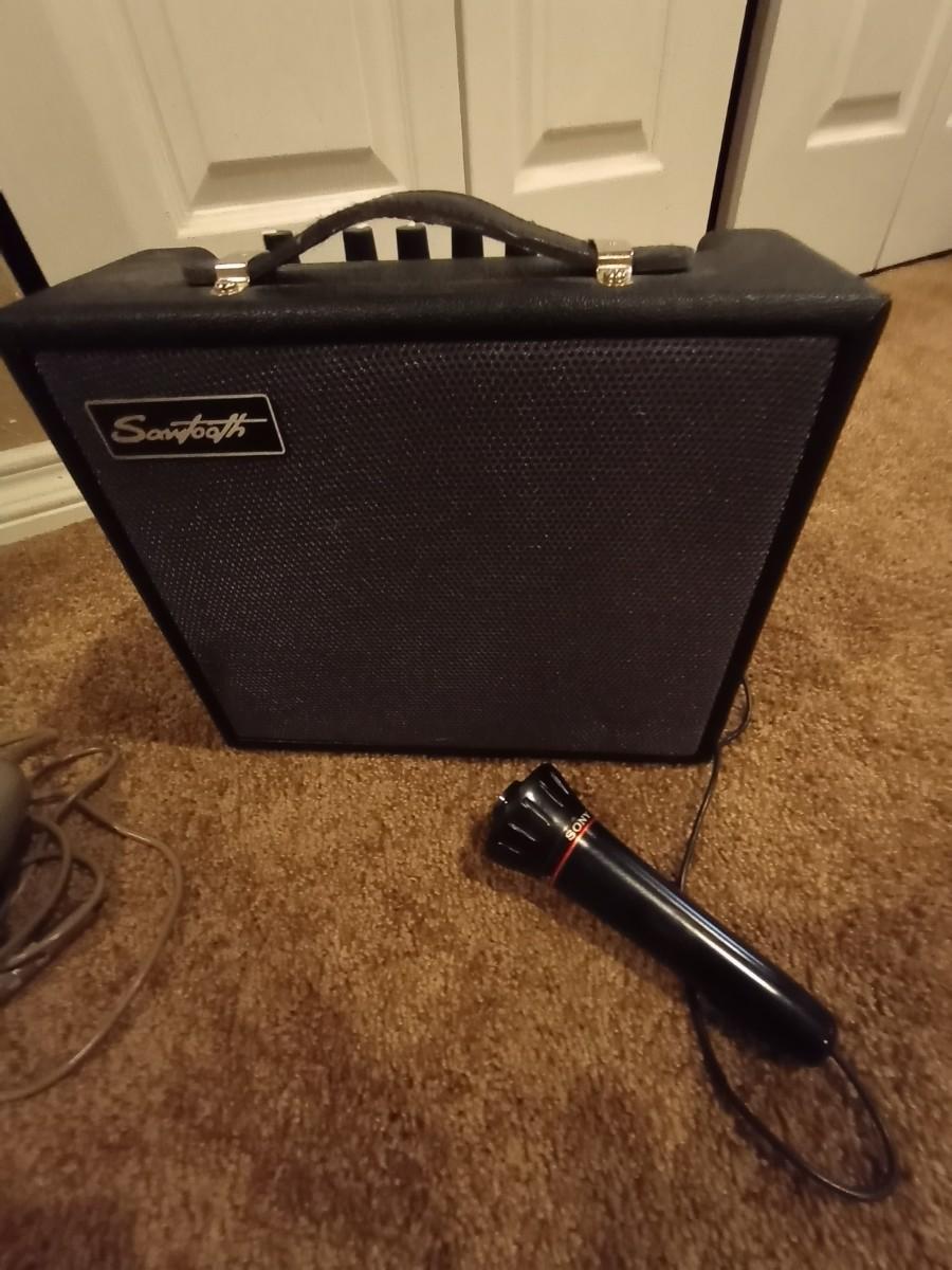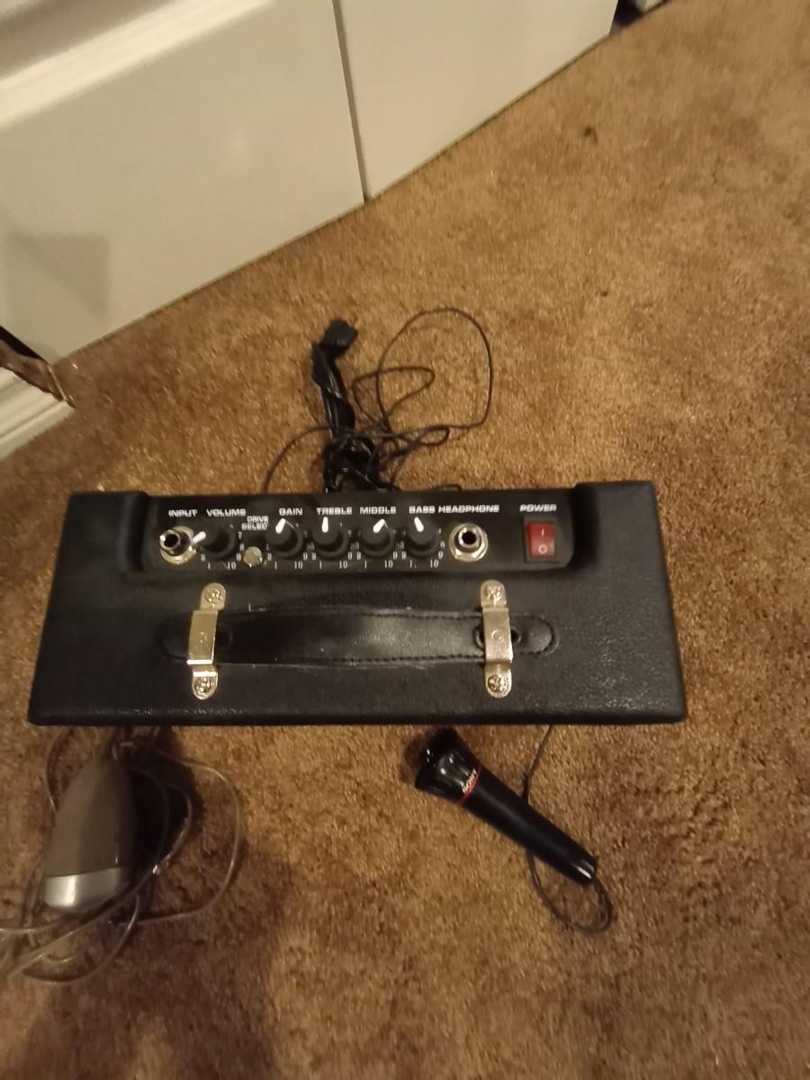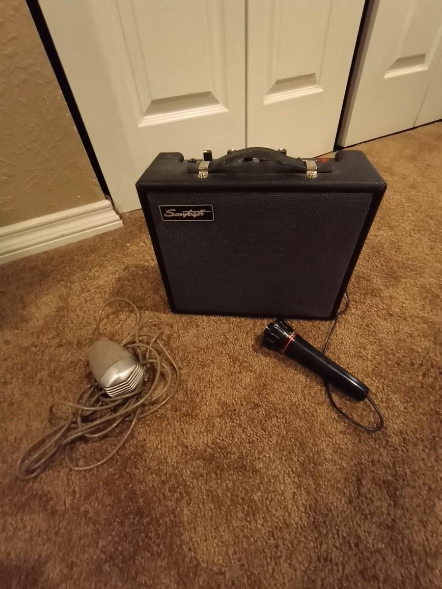 AMPLIFIER MODEL ST-AMP-10 25W AND 2 MICROPHONES 1 NEEDS NEW MIC MATERIAL OTHER HAS THE VINTAGE LOOK (NO MAKER NAME)