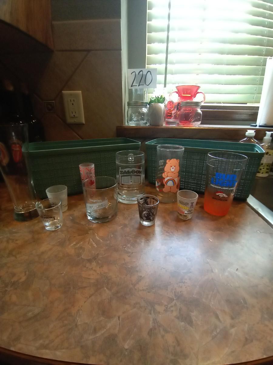 LOT 236  COLLECTIBLE GLASSES AND 2 PLASTIC BASKETS