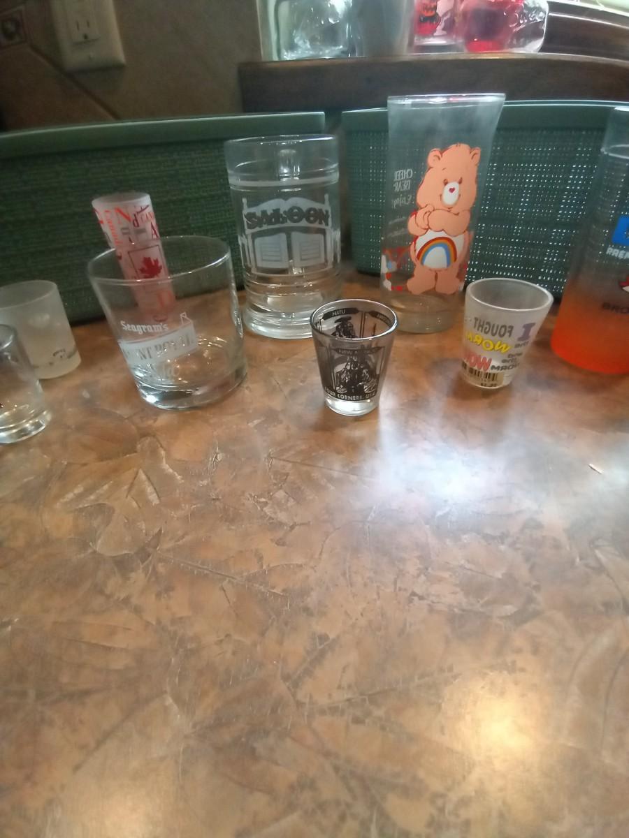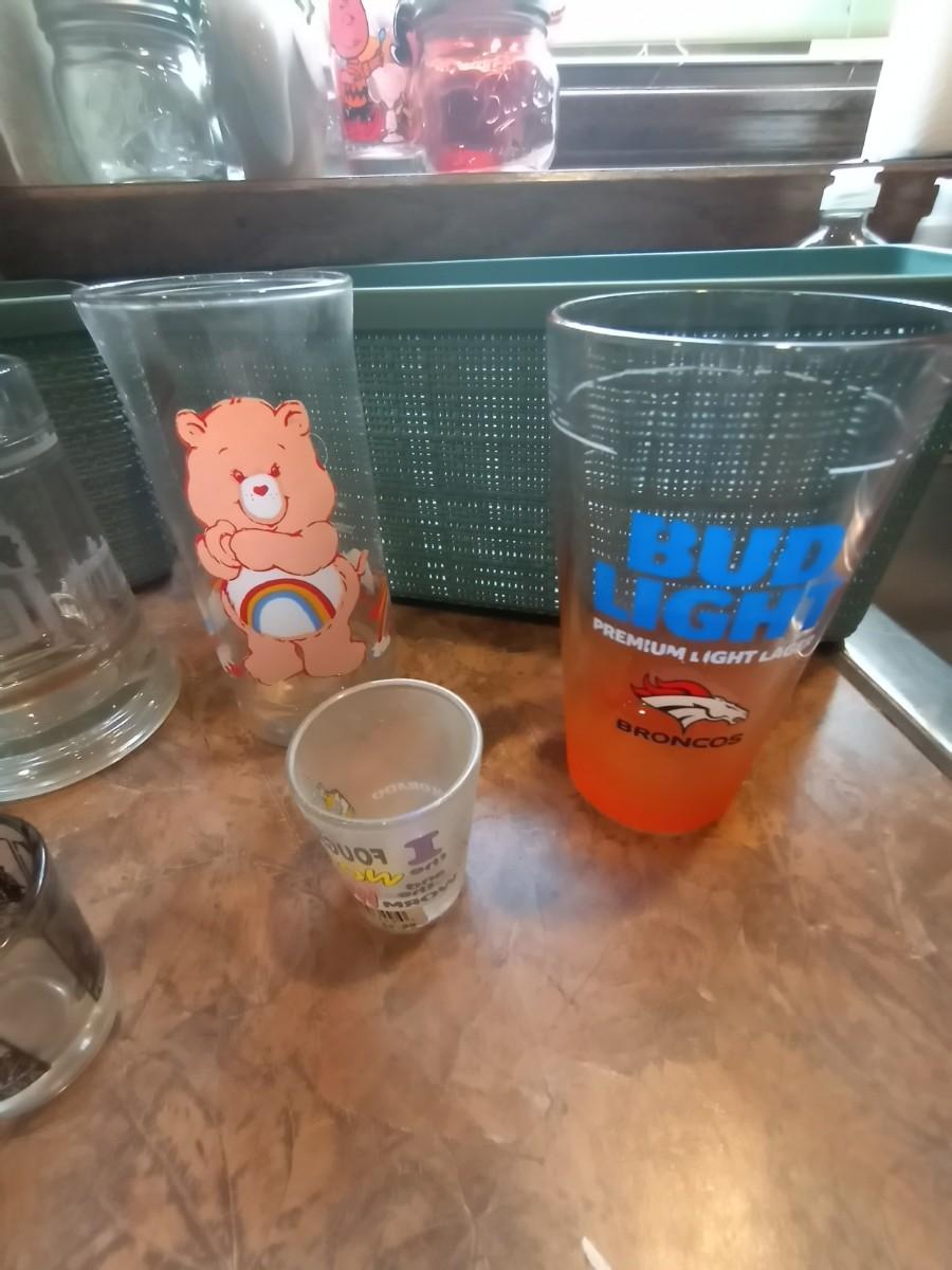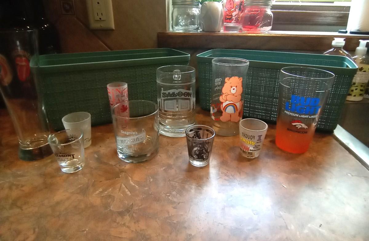 COLLECTIBLE GLASSES AND 2 PLASTIC BASKETS