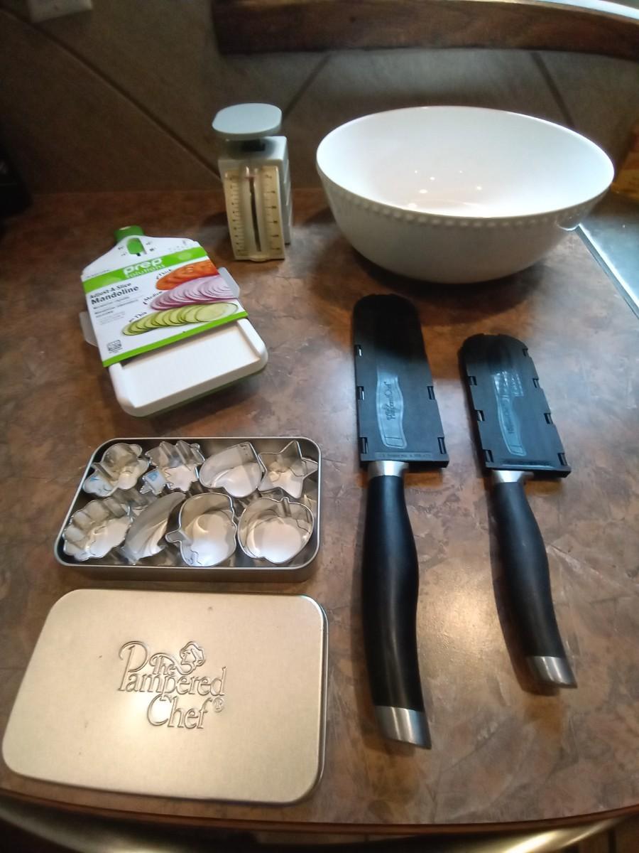 LOT 233  PAMPERED CHEF CUTLERY AND COOKIE CUTTERS
