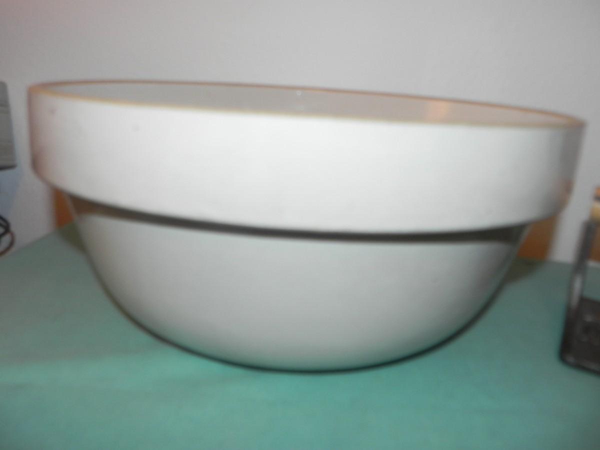 LARGE CLAY BOWL APPROX. 13" ROUND-CLAY JUG AND CASTIRON BACON PRESS
