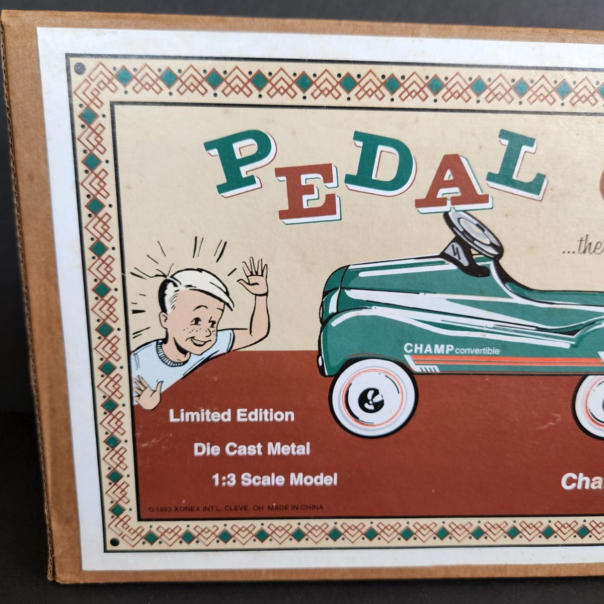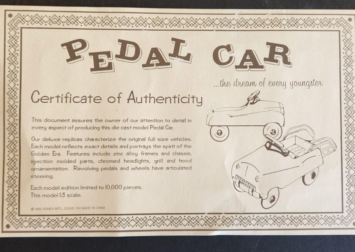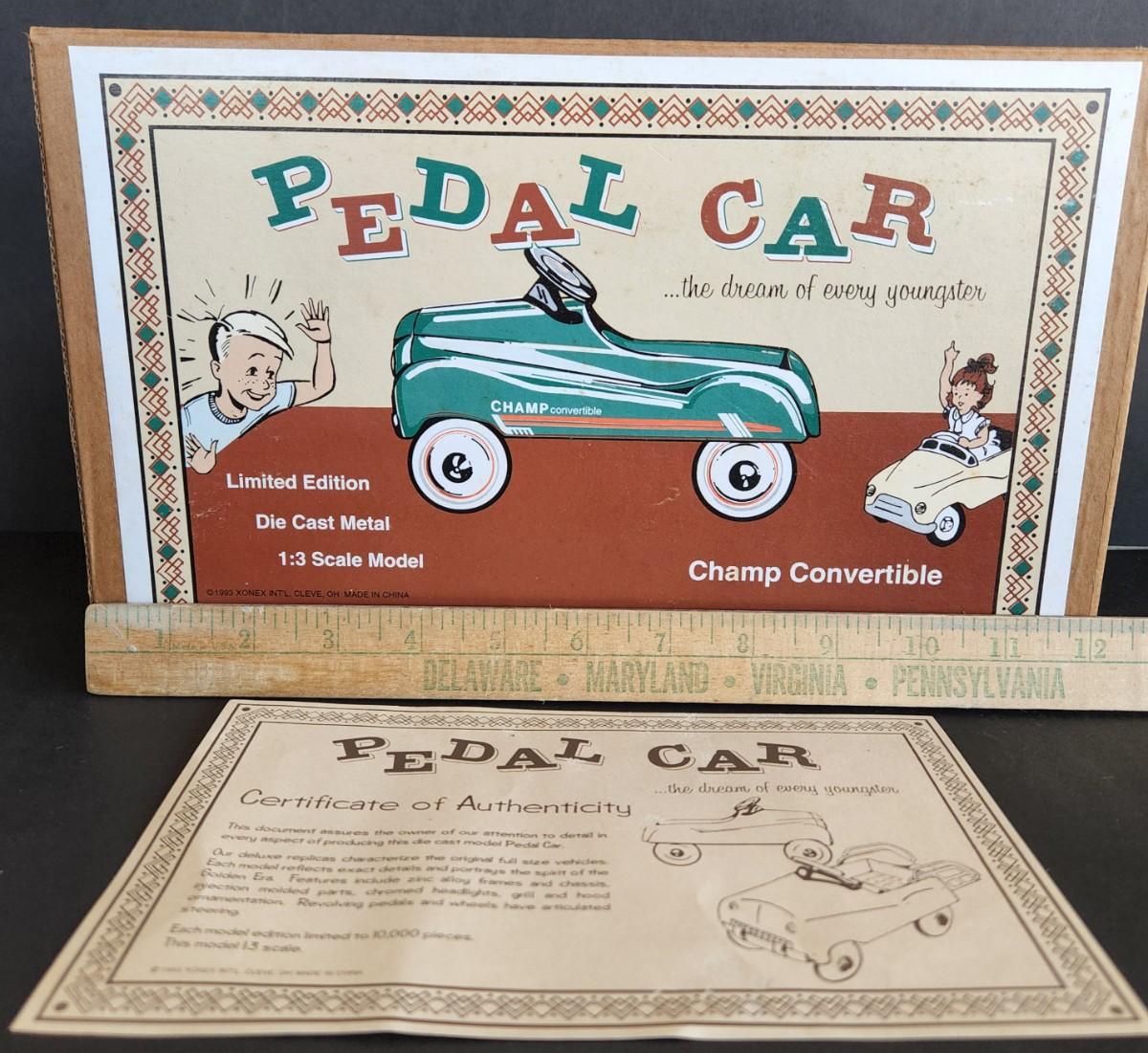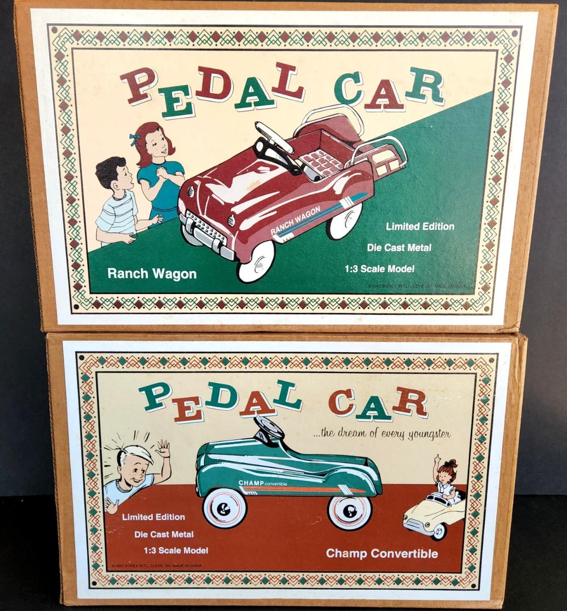 Two vintage limited edition Xonex diecast pedal cars. Both in great condition with original boxes. Boxes may have some shelf wear. The Champ convertible has its original COA. Both have limited edition number which vary. Please see all pictures as they are the best representation of the items. The pictures show condition, measurements if taken, and what is included in the lot. Due to the large amount that we photograph and the time frame, we are not always able to take measurements. All items unless noted, are pre-owned and have been used. If you purchased furniture, you must bring help. We do not allow one person to carry large furniture out on their own. Bring help, tools and a truck for the safety of our client’s homes, and your personal safety. Any damages that result to the property including walls, and floors due to moving of the furniture will be charged to the buyer. Company policy. Thank you.