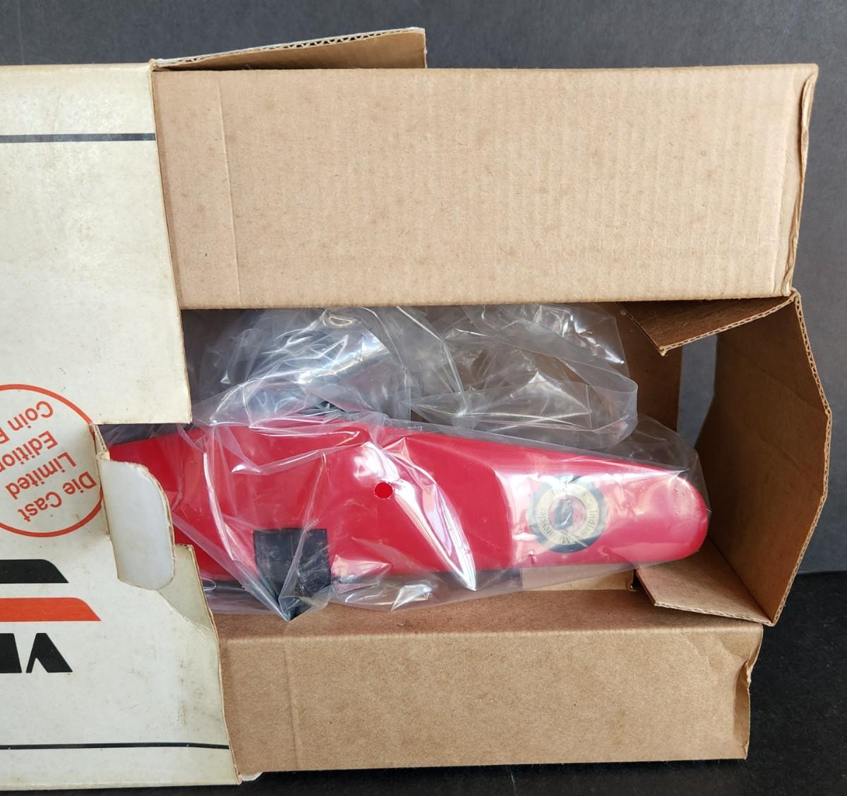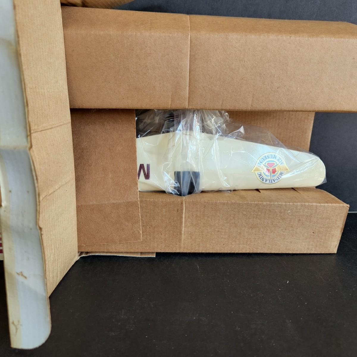 These are two vintage limited edition diecast metal airplane banks. Both have baked enamel finishes, moving & rotating parts, and are authentically scaled replicas. Airplanes are in great condition with original packaging however the boxes do show signs of damage. Please see all pictures as they are the best representation of the items. The pictures show condition, measurements if taken, and what is included in the lot. Due to the large amount that we photograph and the time frame, we are not always able to take measurements. All items unless noted, are pre-owned and have been used. If you purchased furniture, you must bring help. We do not allow one person to carry large furniture out on their own. Bring help, tools and a truck for the safety of our client’s homes, and your personal safety. Any damages that result to the property including walls, and floors due to moving of the furniture will be charged to the buyer. Company policy. Thank you.