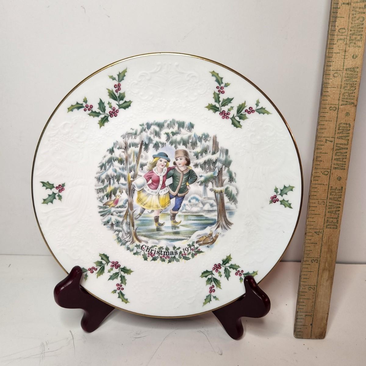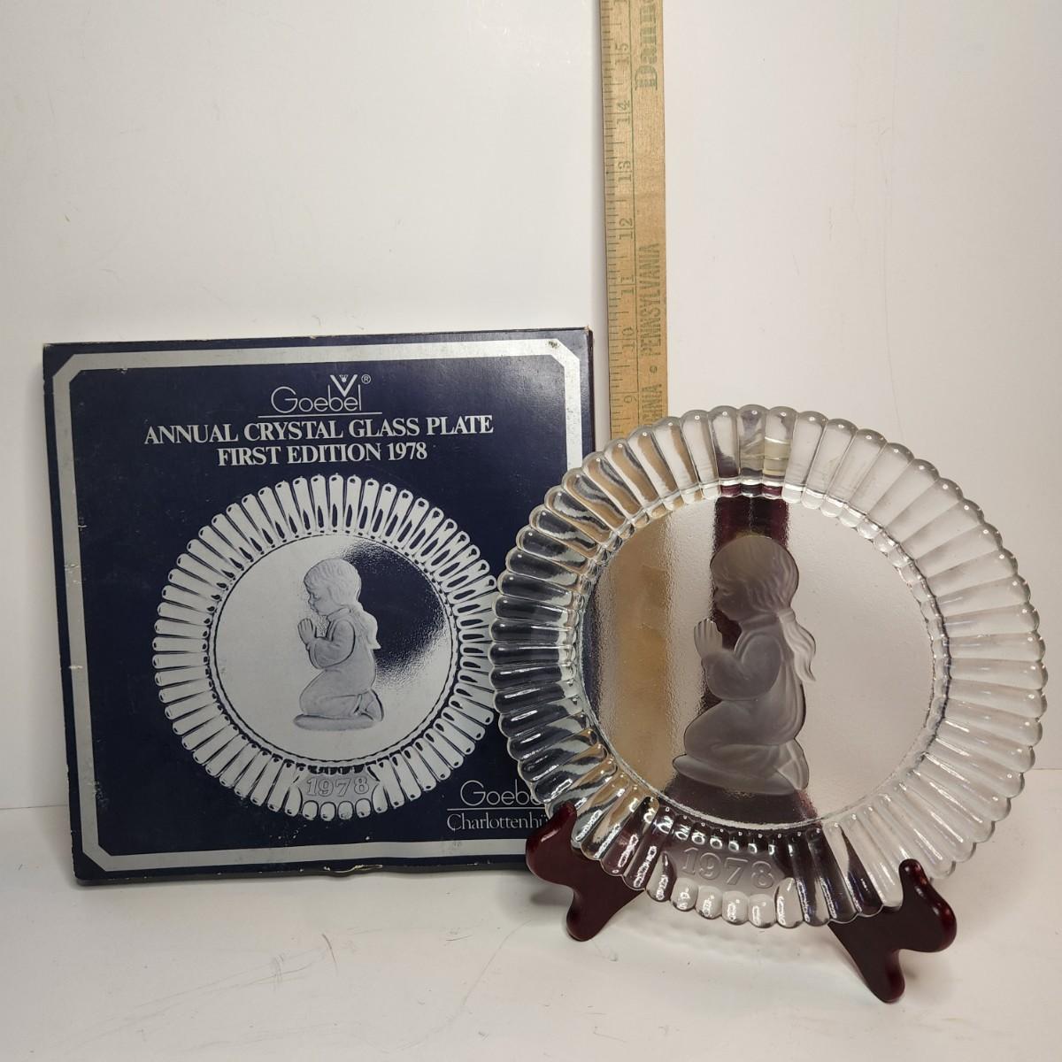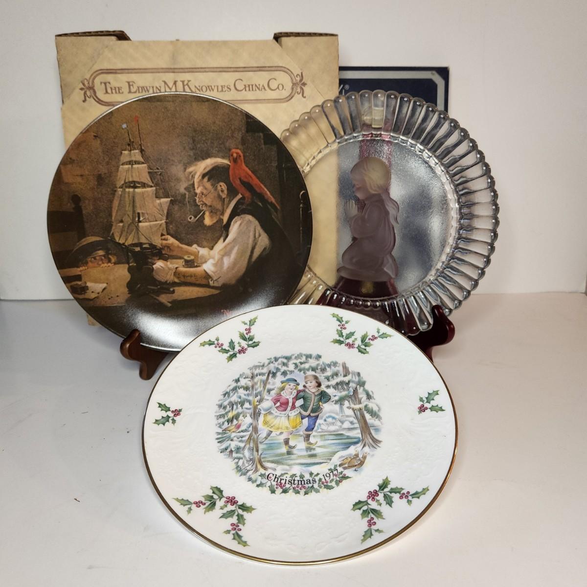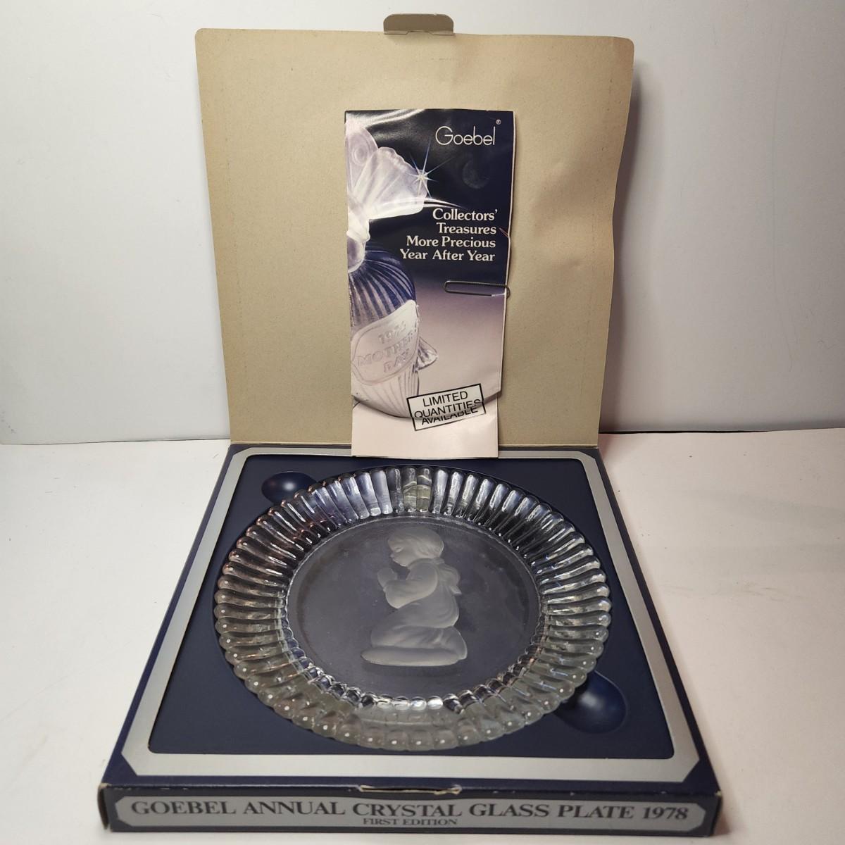 In this lot is a 1980 Norman Rockwell "The Ship Builder" plate w/ original box, 1978 annual Goebel crystal glass plate w/original box, paperwork, & hook, and a 1977 Royal Doulton fine china Christmas collectors plate. The plates are in good condition. Please see all pictures as they are the best representation of the items. The pictures show condition, measurements if taken, and what is included in the lot. Due to the large amount that we photograph and the time frame, we are not always able to take measurements. All items unless noted, are pre-owned and have been used. If you purchased furniture, you must bring help. We do not allow one person to carry large furniture out on their own. Bring help, tools and a truck for the safety of our client’s homes, and your personal safety. Any damages that result to the property including walls, and floors due to moving of the furniture will be charged to the buyer. Company policy. Thank you.