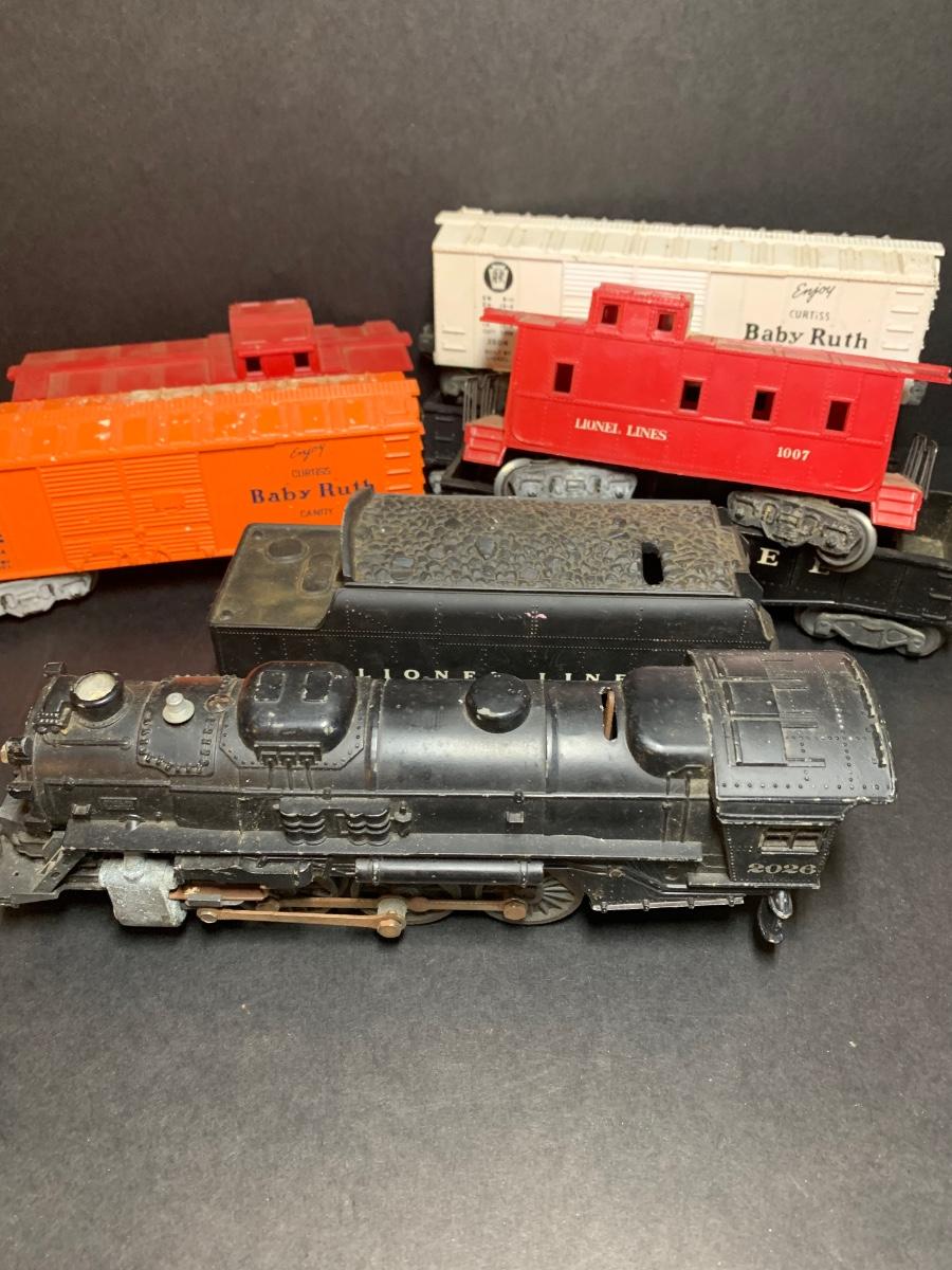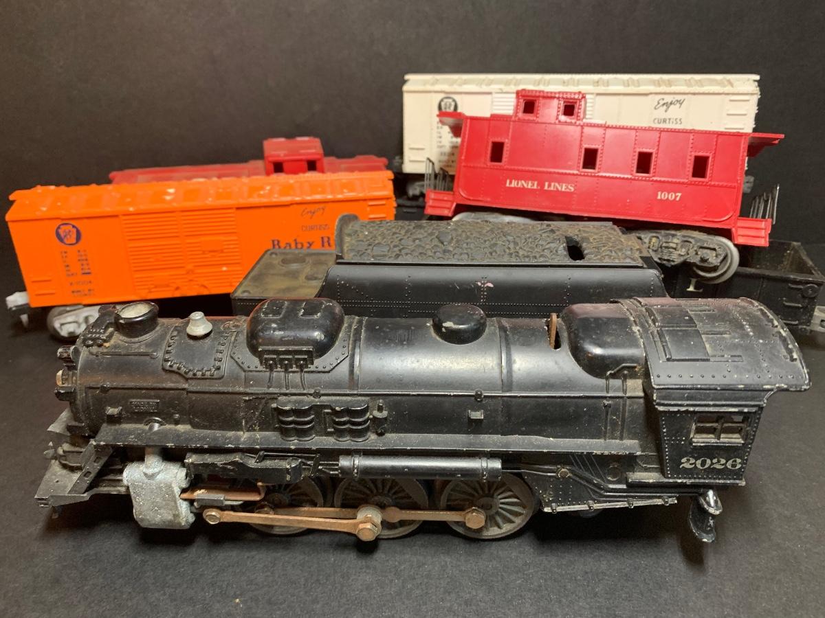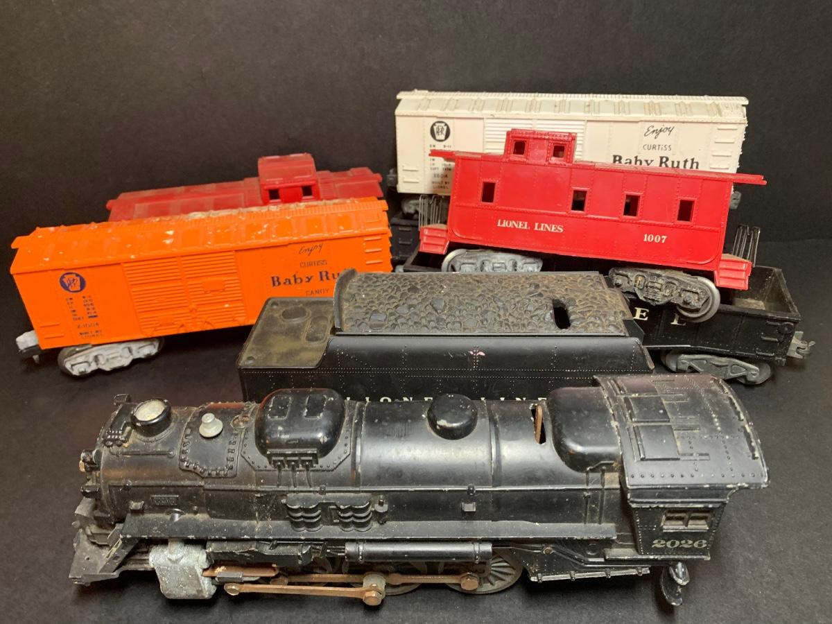 LOT 91R: Vintage Lionel O Gauge 2026 Locomotive, Lionel Box Car 6017, Lionel 6012 & More