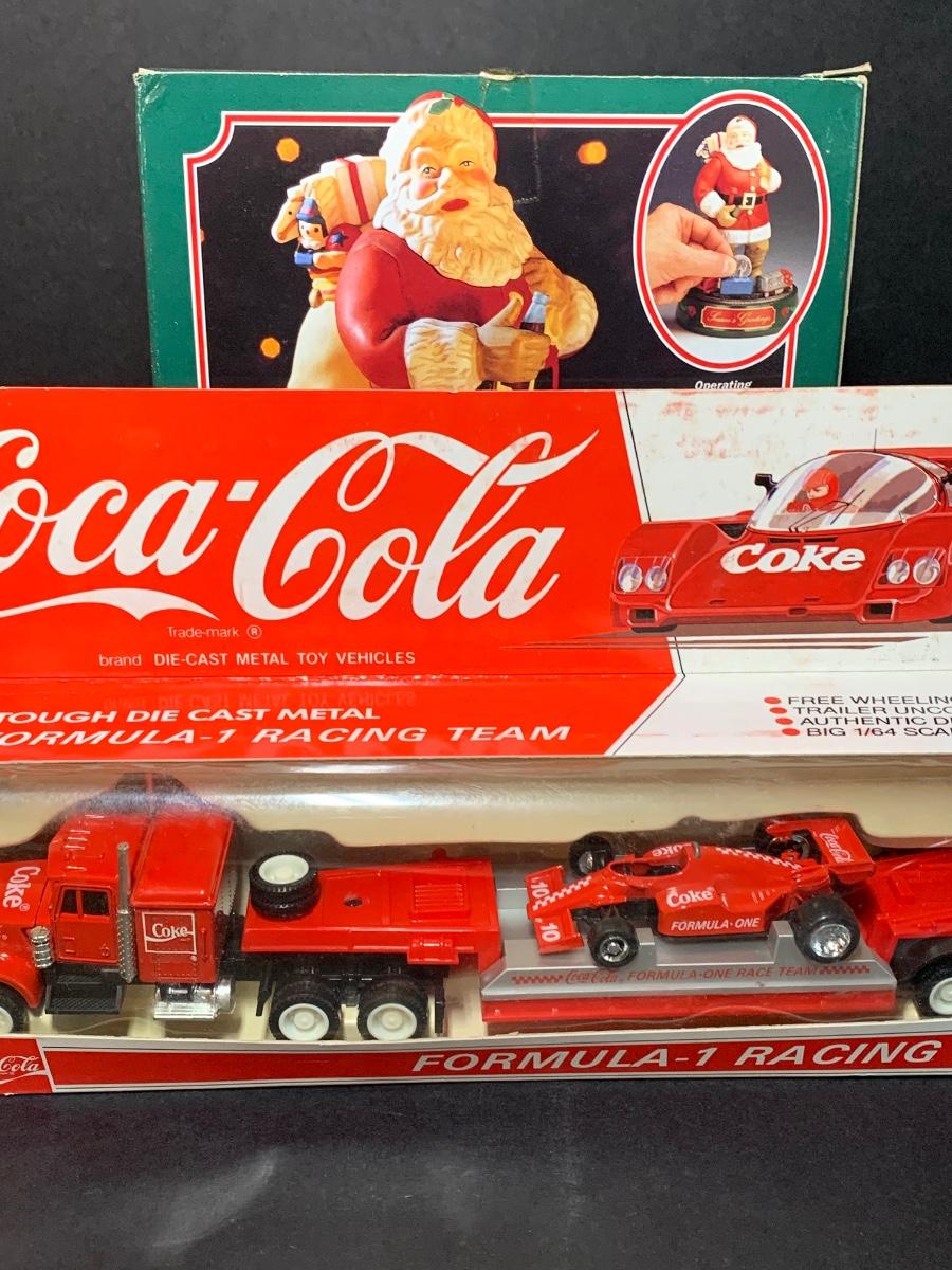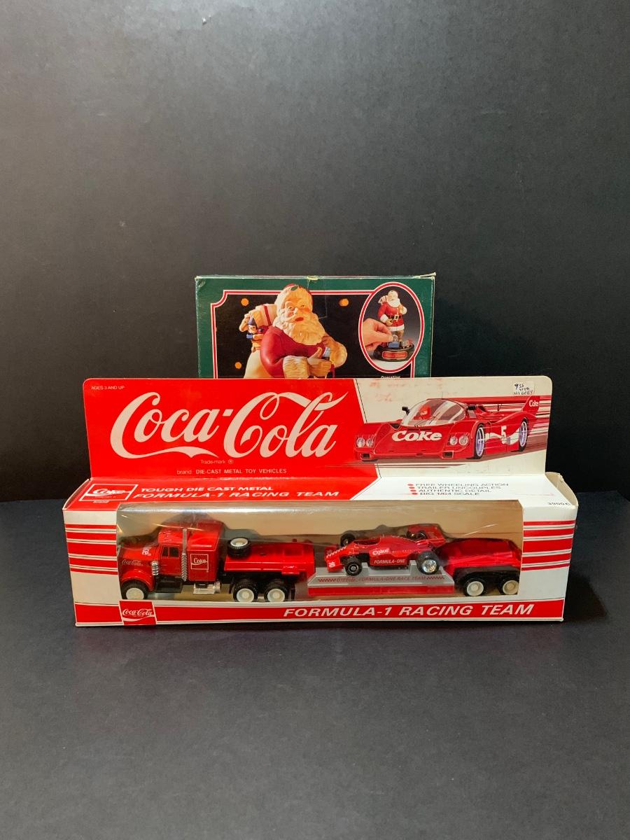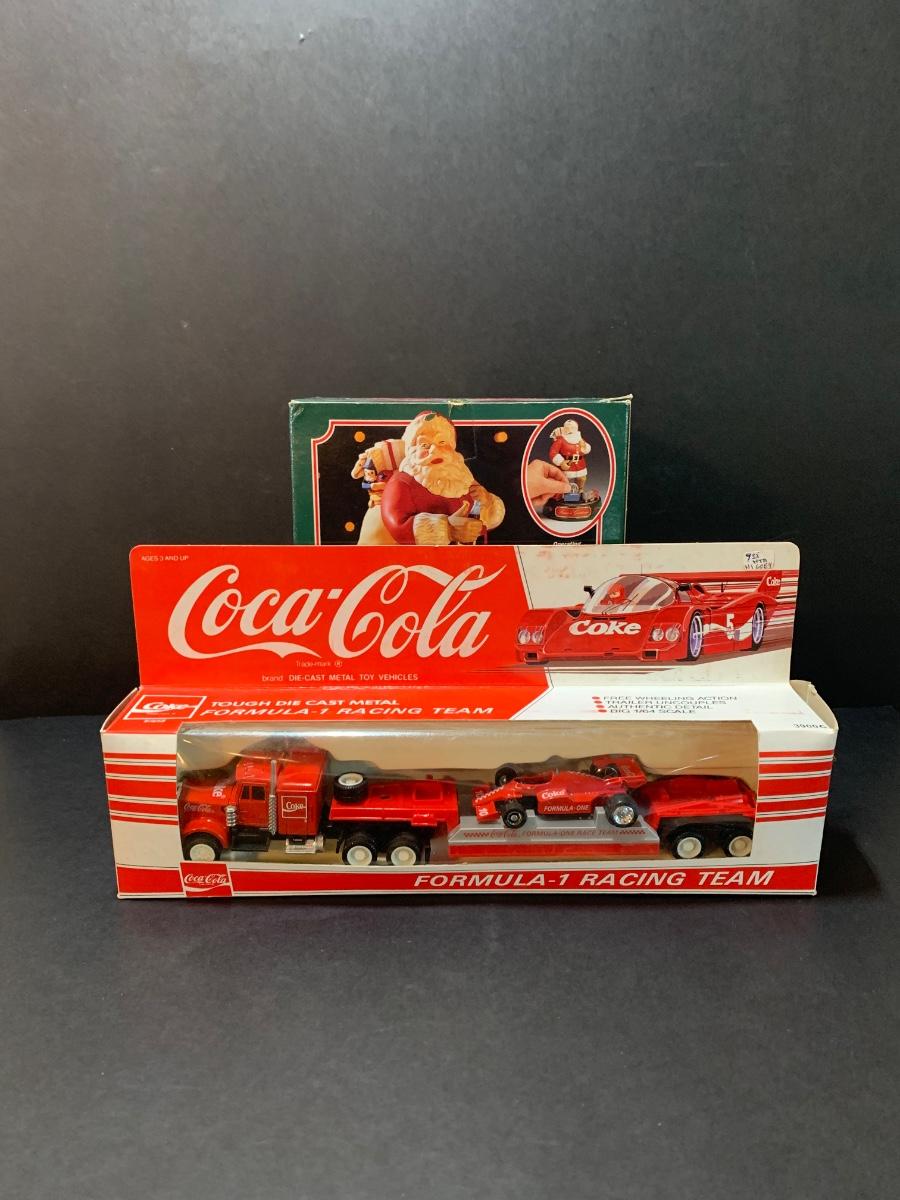 LOT 100R: Coke-a-Cola Collection: Santa Mechanical Bank & Formula 1 Racing Team Collection