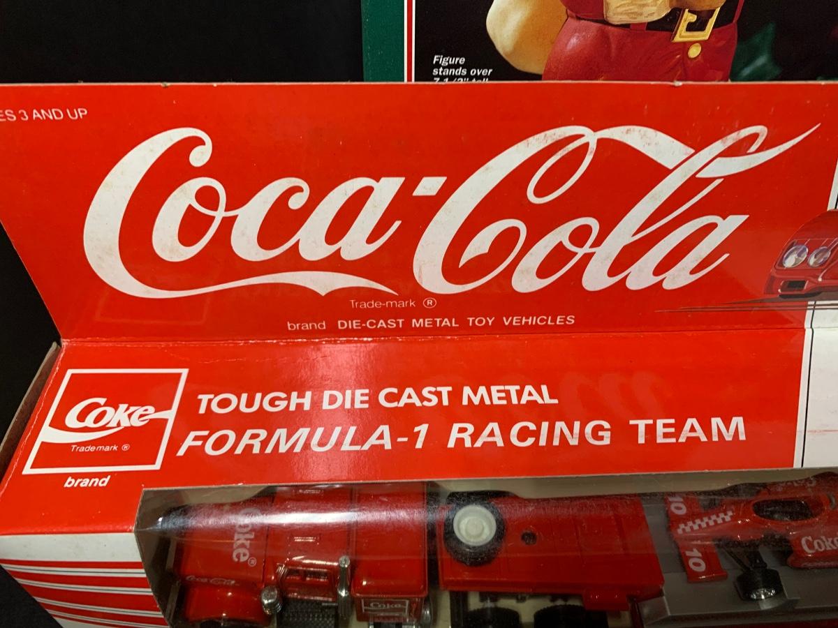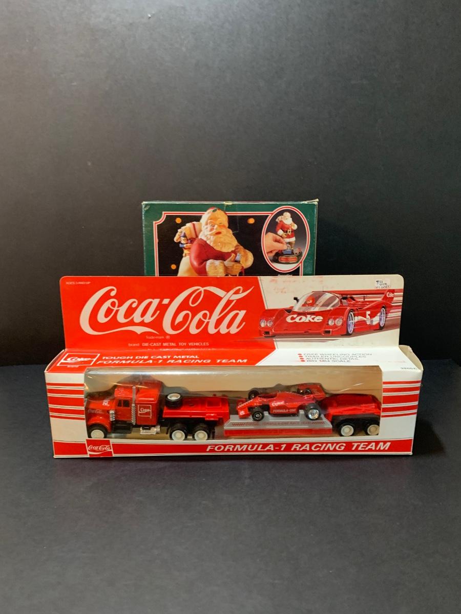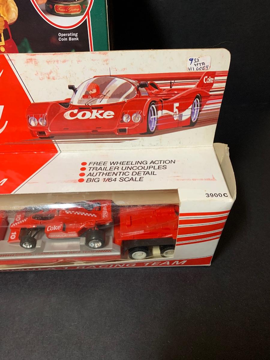 LOT 100R: Coke-a-Cola Collection: Santa Mechanical Bank & Formula 1 Racing Team Collection