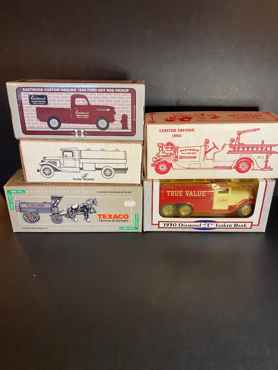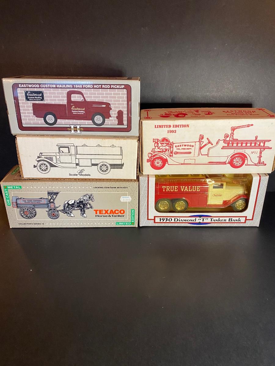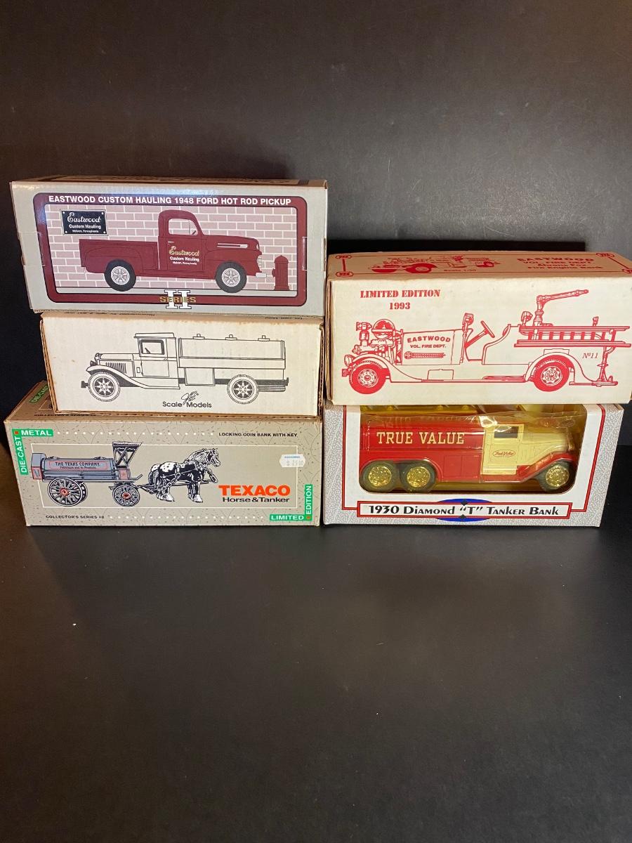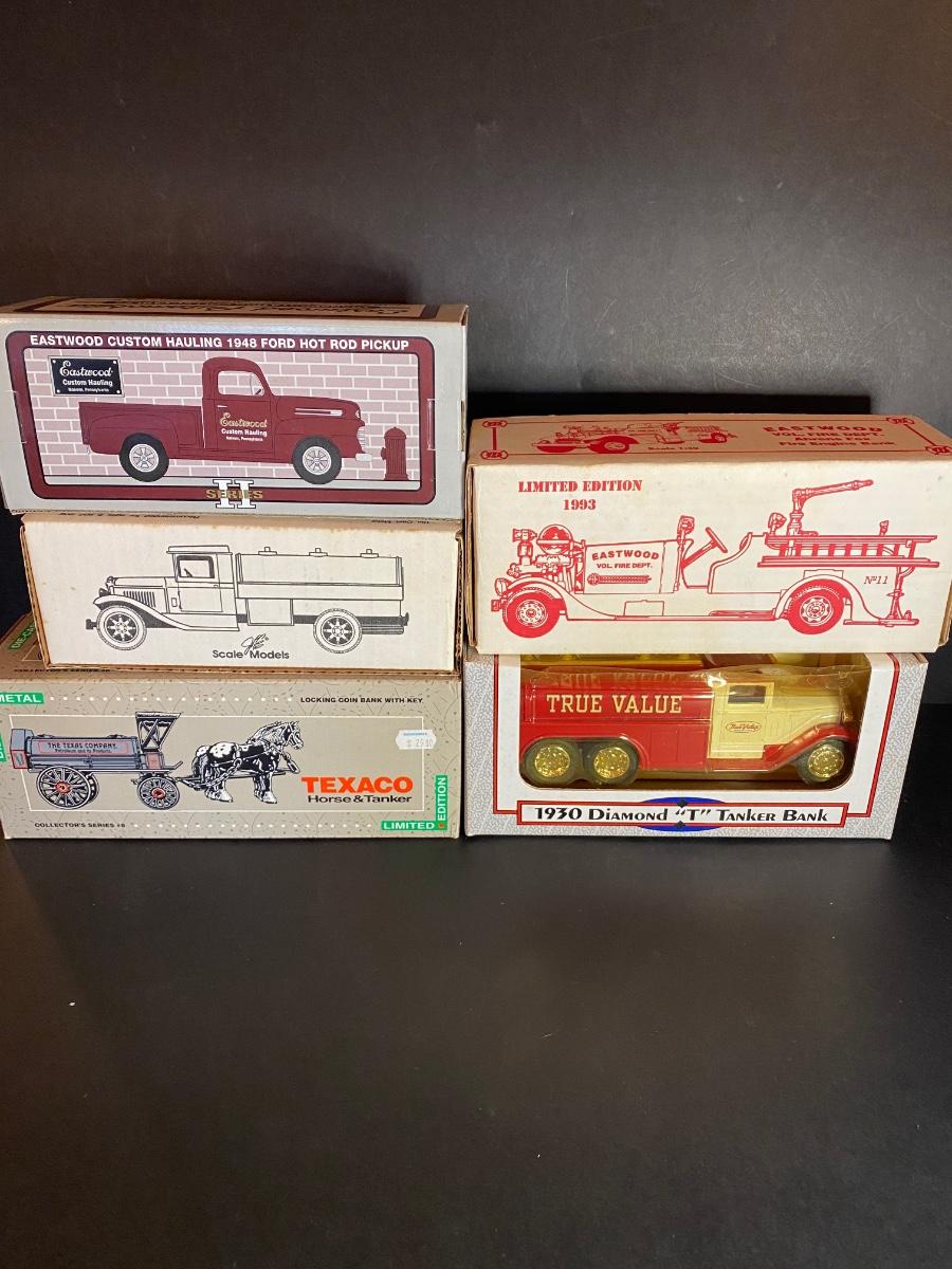 Five brand name cars in their original boxes. Please see all pictures as they are the best representation of the items. The pictures show condition, measurements if taken, and what is included in the lot. Due to the large amount that we photograph and the time frame, we are not always able to take measurements. All items unless noted, are pre-owned and have been used. If you purchased furniture, you must bring help. We do not allow one person to carry large furniture out on their own. Bring help, tools and a truck for the safety of our client’s homes, and your personal safety. Any damages that result to the property including walls, and floors due to moving of the furniture will be charged to the buyer. Company policy. Thank you.