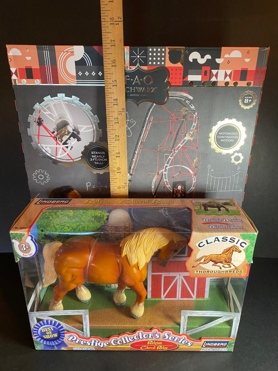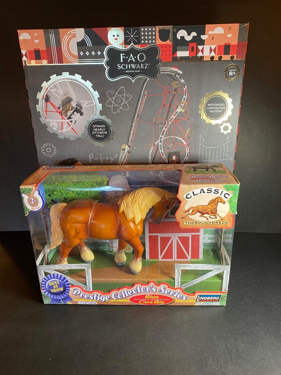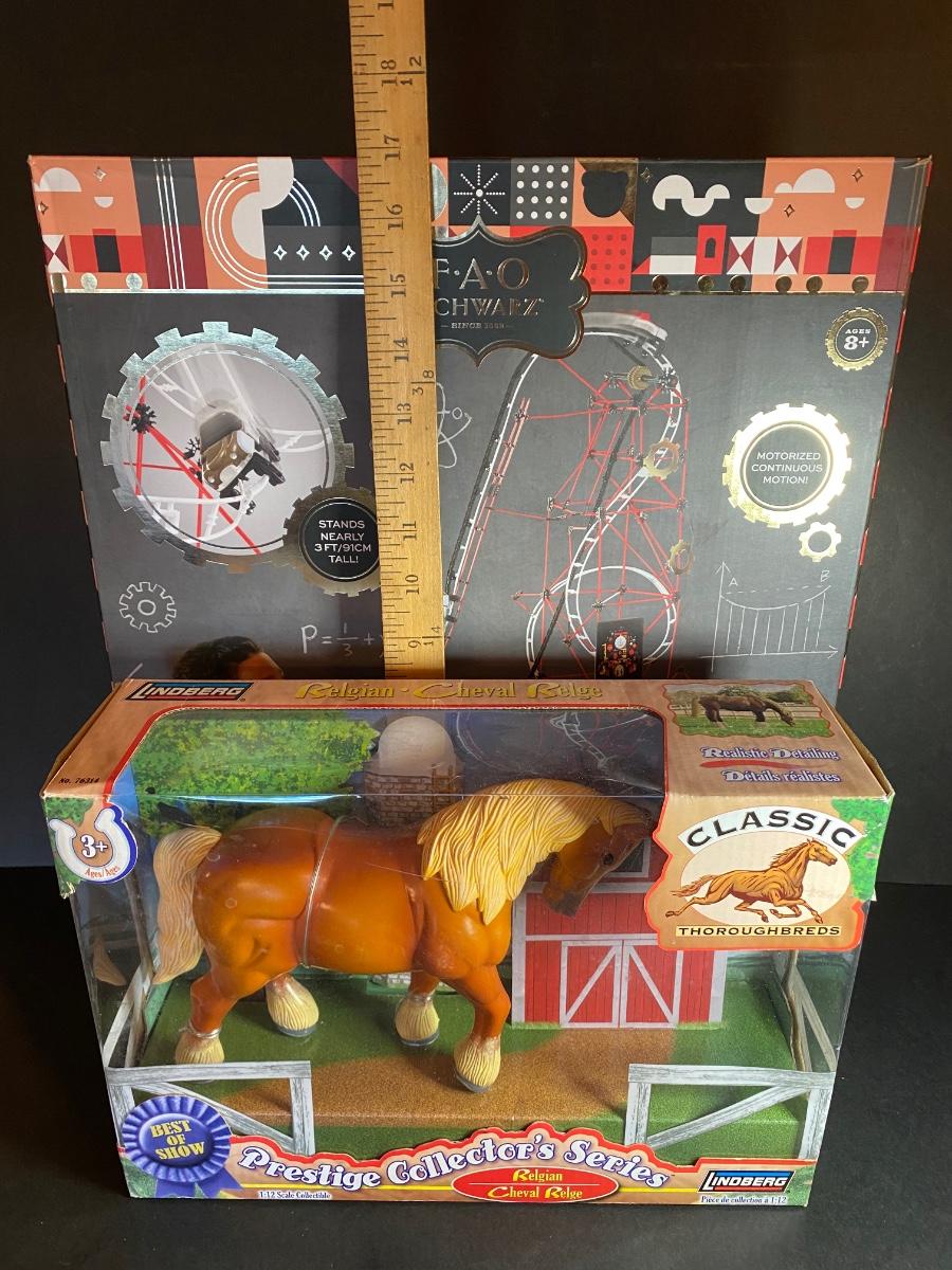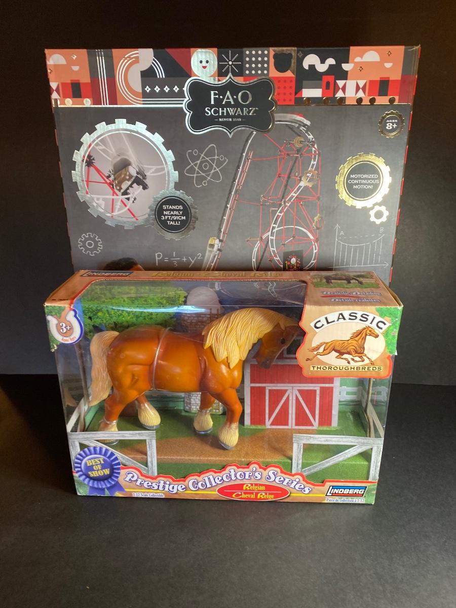 753 piece build a coaster by F.A.O Schwartz. New in original box. Prestige collectors pony new in box. Please see all pictures as they are the best representation of the items. The pictures show condition, measurements if taken, and what is included in the lot. Due to the large amount that we photograph and the time frame, we are not always able to take measurements. All items unless noted, are pre-owned and have been used. If you purchased furniture, you must bring help. We do not allow one person to carry large furniture out on their own. Bring help, tools and a truck for the safety of our client’s homes, and your personal safety. Any damages that result to the property including walls, and floors due to moving of the furniture will be charged to the buyer. Company policy. Thank you.