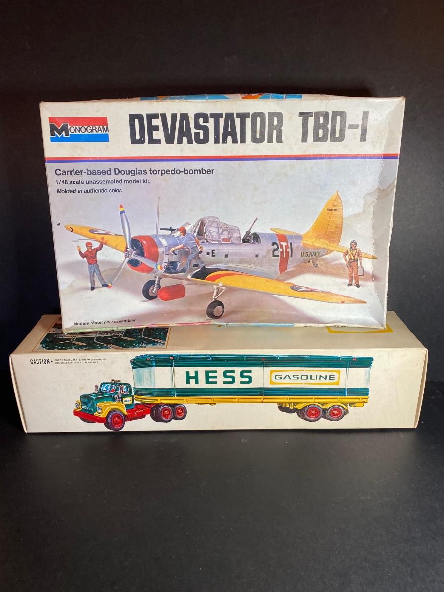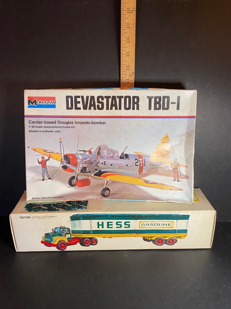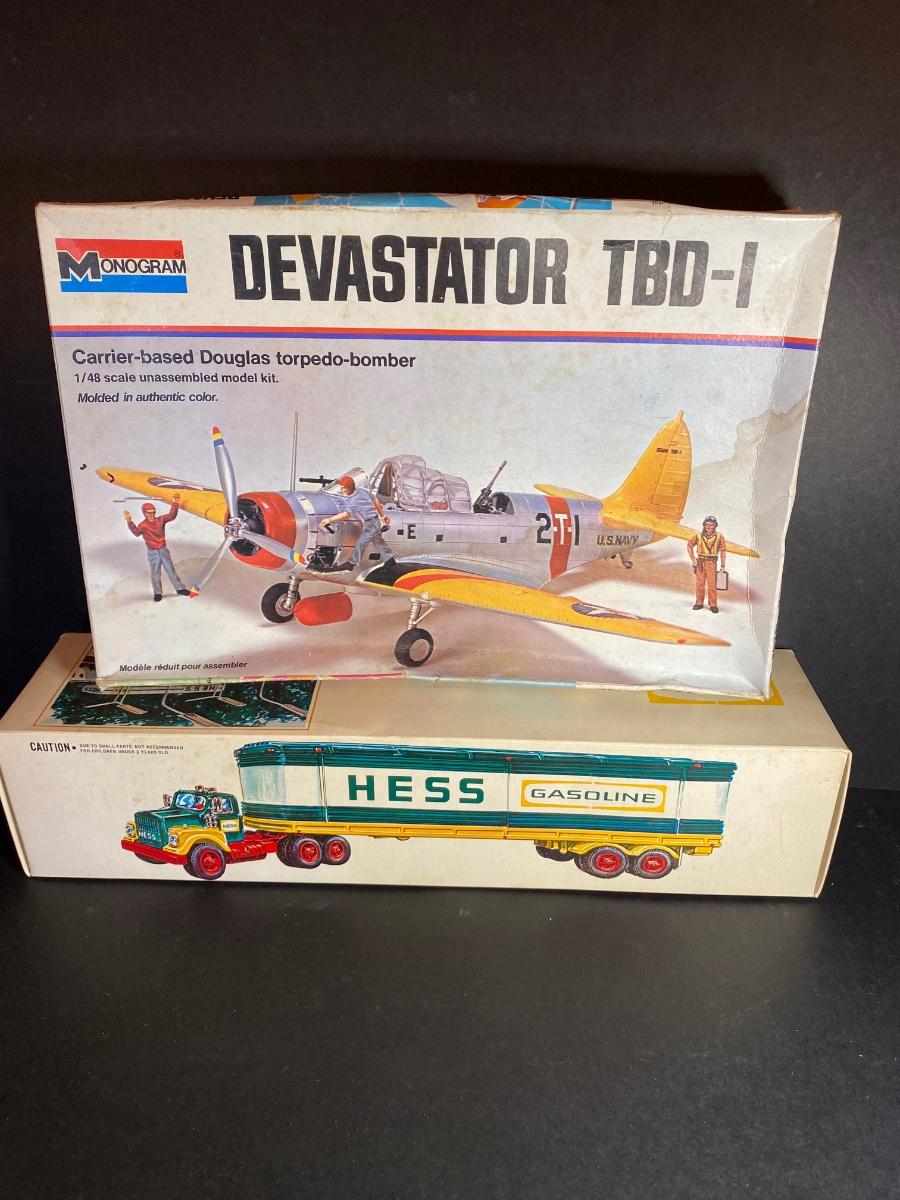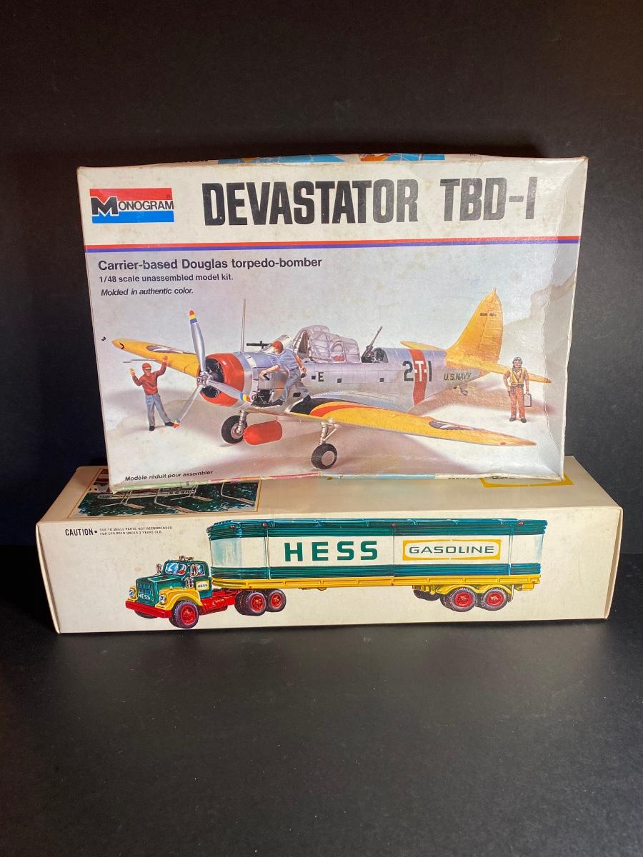 LOT 120 Vintage Collectible Toys: Hess Truck & Monogram Devastator Model