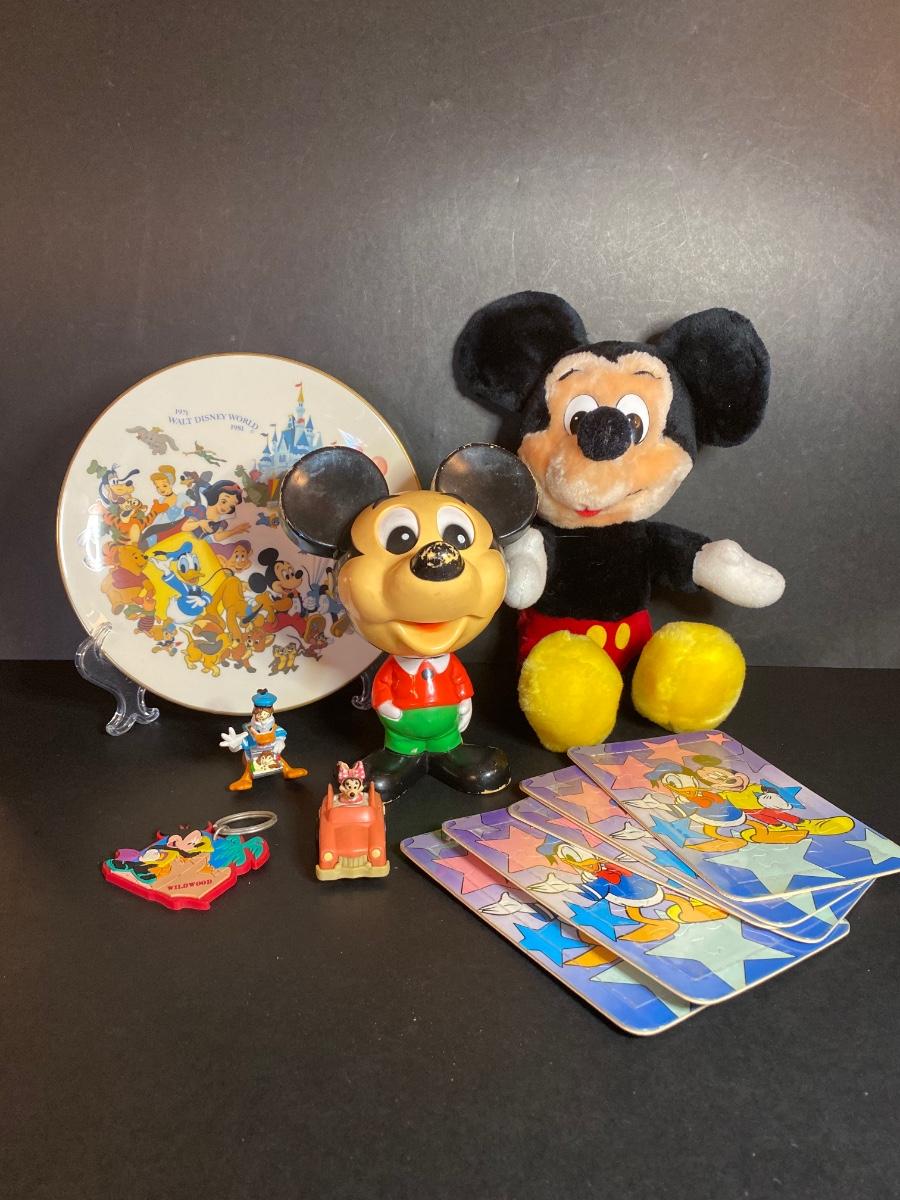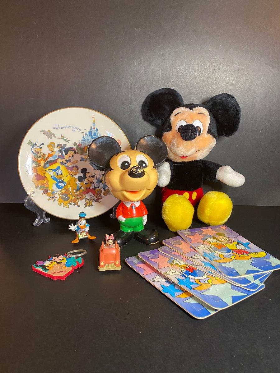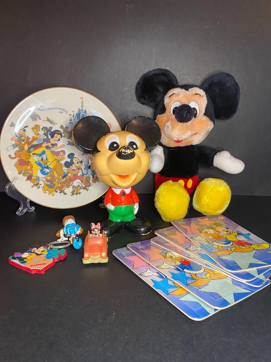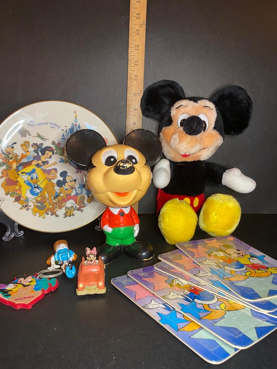 LOT 125: Disney Collection: 10th Anniversary Plate, Puzzle Postcards, Talking Mickey & More