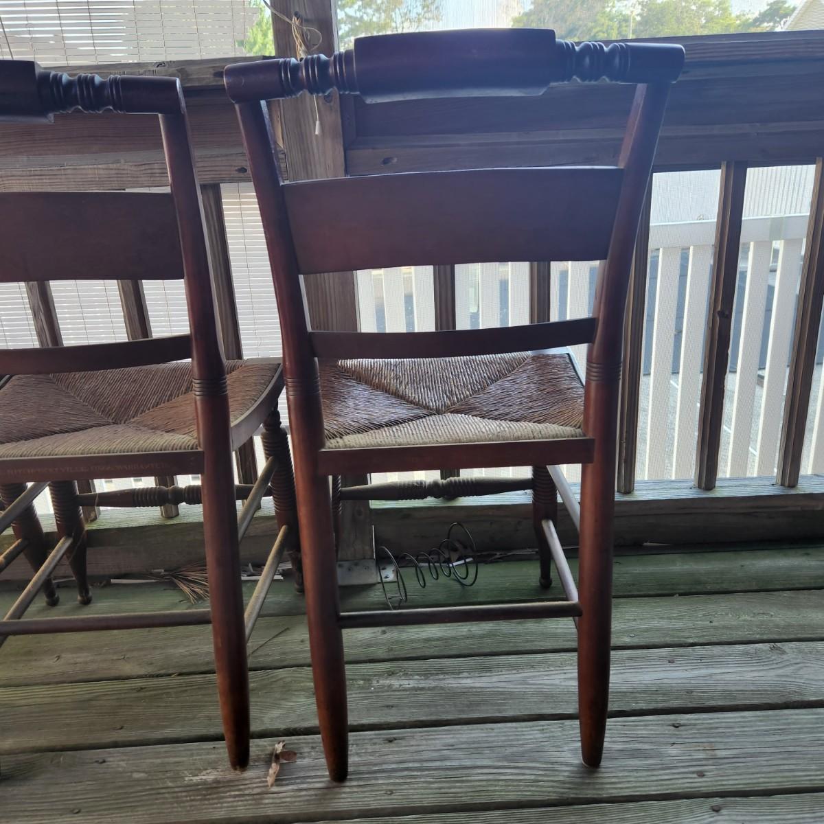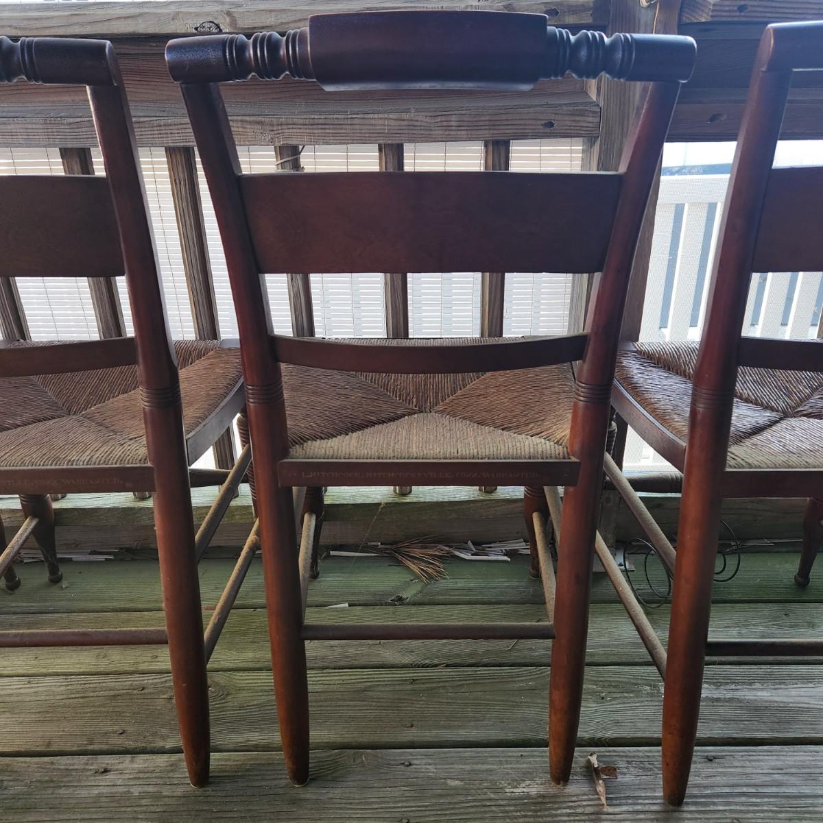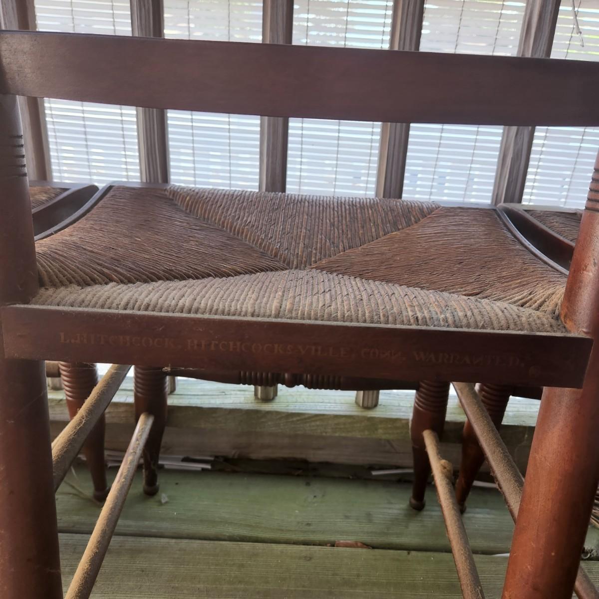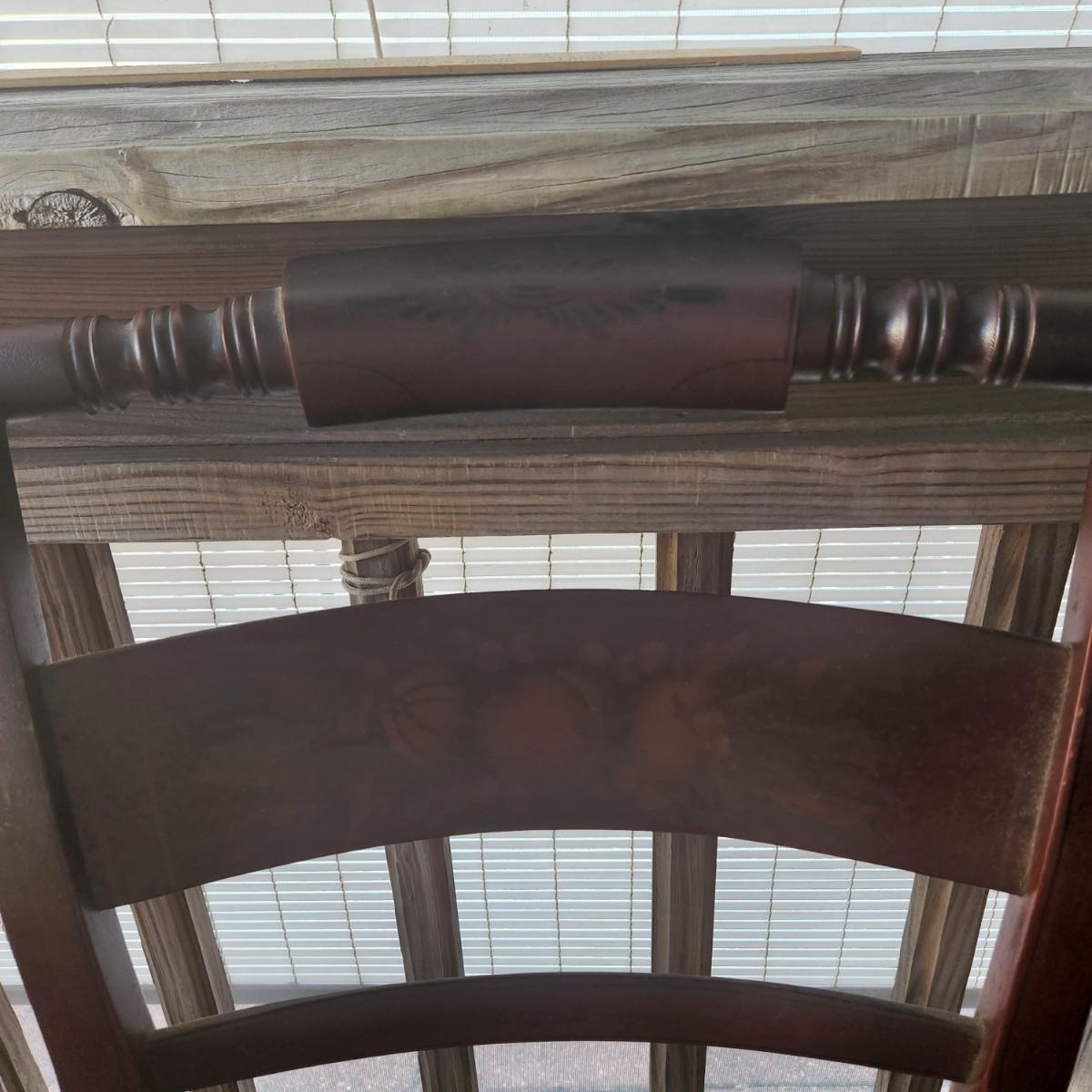 This is a beautiful set of Hitchcock chairs. They do show age however they are in really good overall condition. Some of the painted stenciling that they're known for has faded over time but they are still in great condition and very sturdy. They are believed to be solid maple wood.