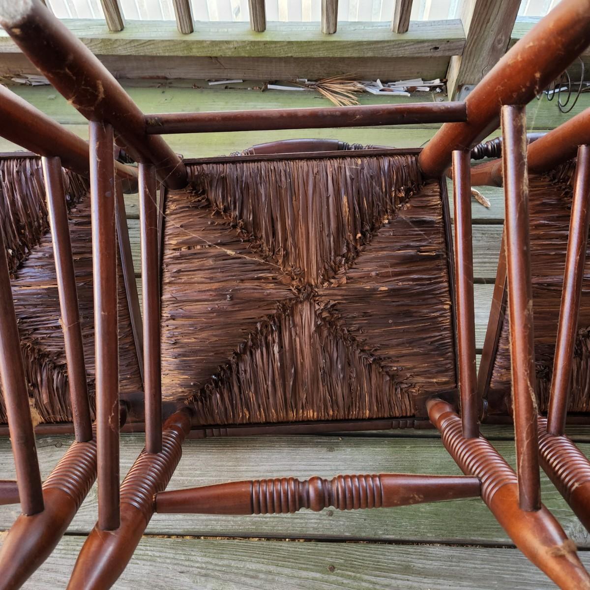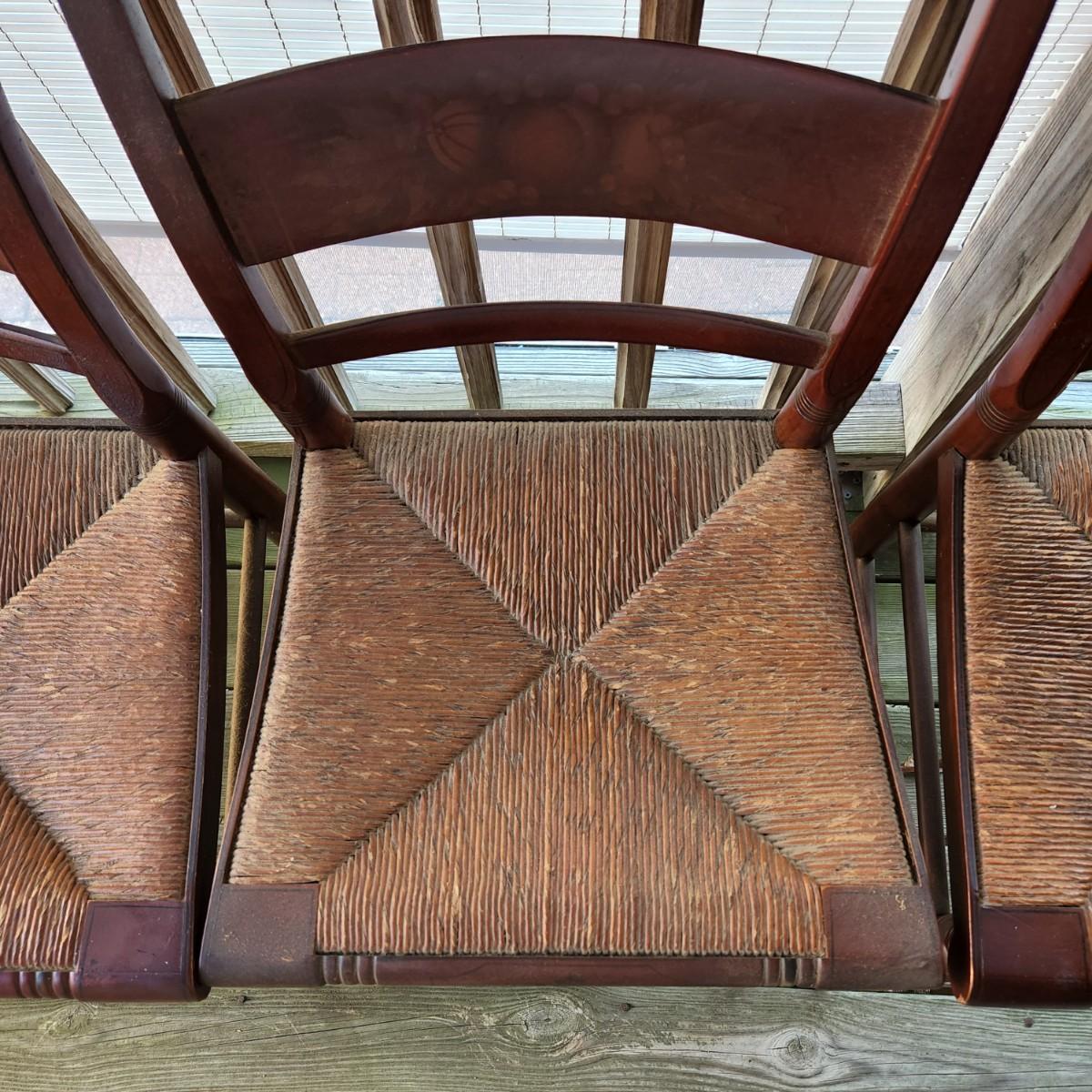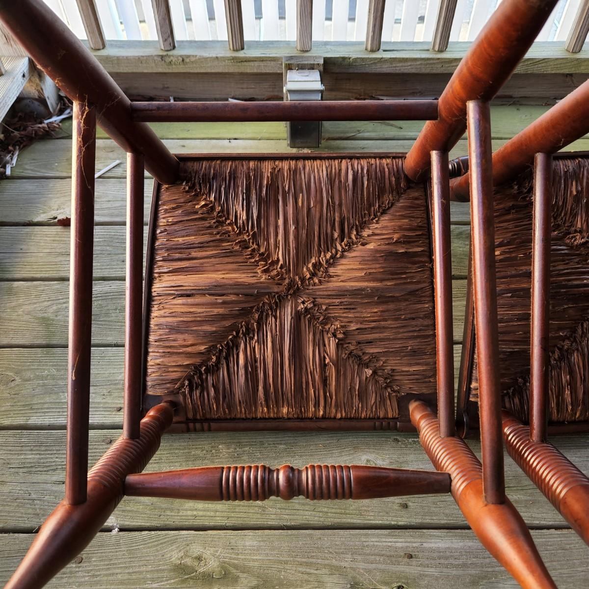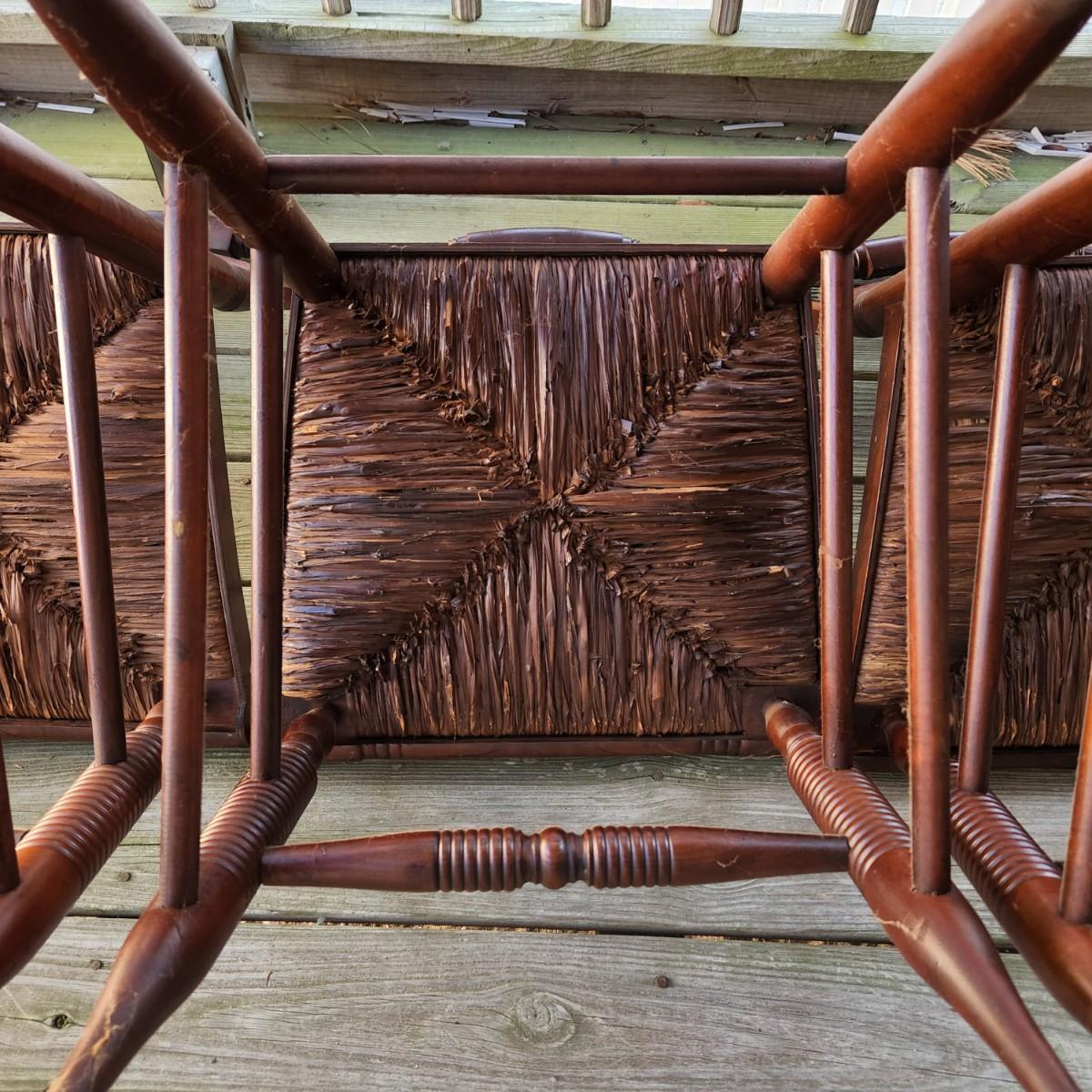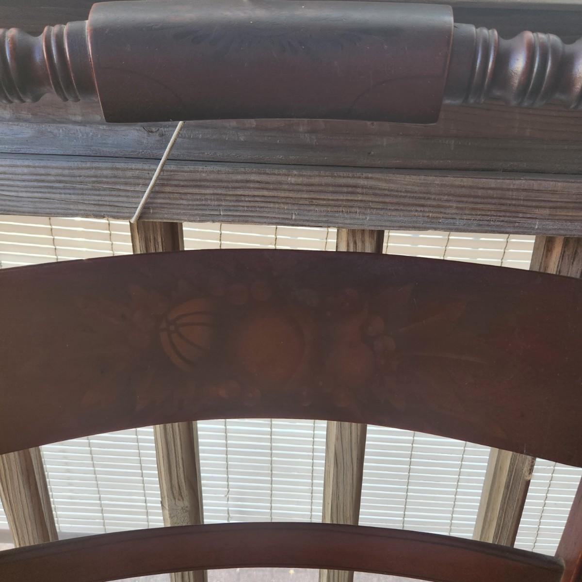 This is a beautiful set of Hitchcock chairs. They do show age however they are in really good overall condition. Some of the painted stenciling that they're known for has faded over time but they are still in great condition and very sturdy. They are believed to be solid maple wood.