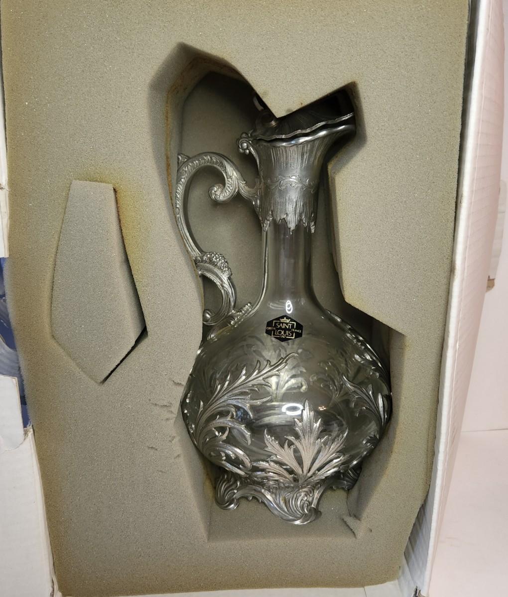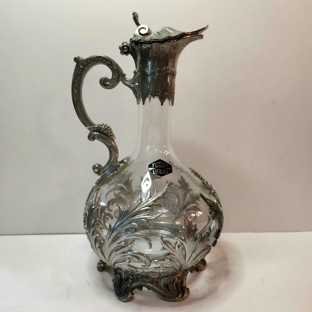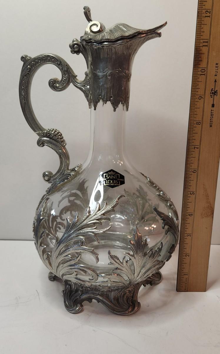 LOT 145RP: Large Vintage Saint Louis Crystal & Pewter Decanter