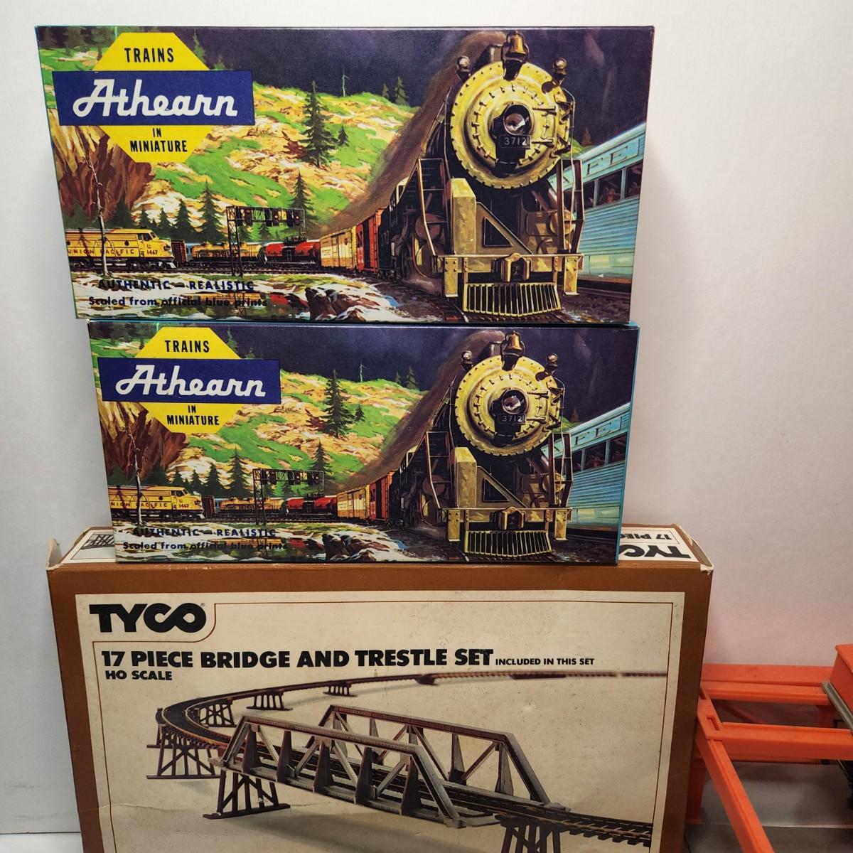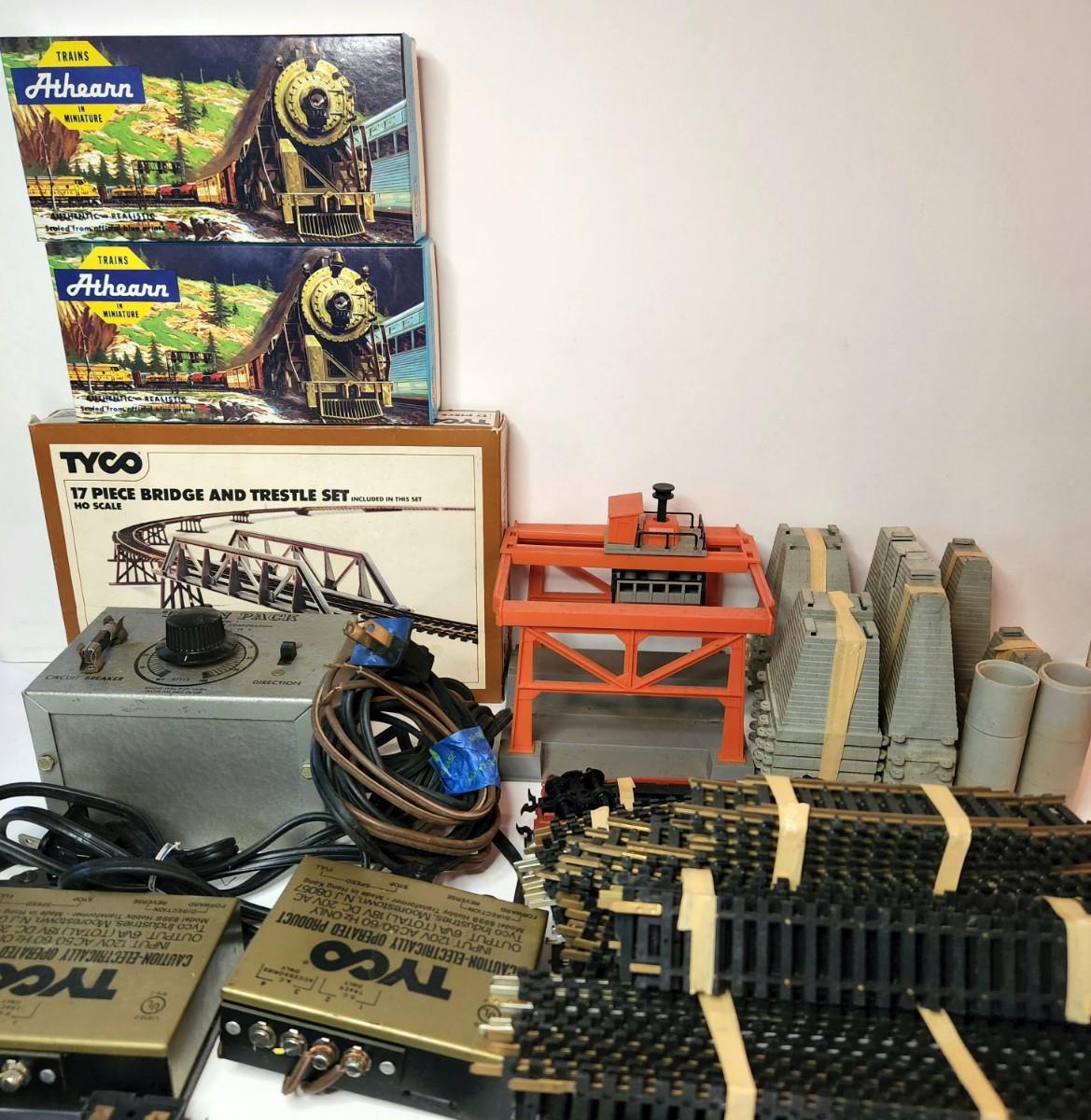 This lot contains straight and curved tracks, Athearn HO scale train cars, a Tyco bridge kit, Tyco transformers, Tyco HO scale container loader train set accessory and more. All items in this lot are untested and in various states of condition. Some sets/kits may or may not be missing pieces. Please see all pictures as they are the best representation of the items. The pictures show condition, measurements if taken, and what is included in the lot. Due to the large amount that we photograph and the time frame, we are not always able to take measurements. All items unless noted, are pre-owned and have been used. If you purchased furniture, you must bring help. We do not allow one person to carry large furniture out on their own. Bring help, tools and a truck for the safety of our client’s homes, and your personal safety. Any damages that result to the property including walls, and floors due to moving of the furniture will be charged to the buyer. Company policy. Thank you.