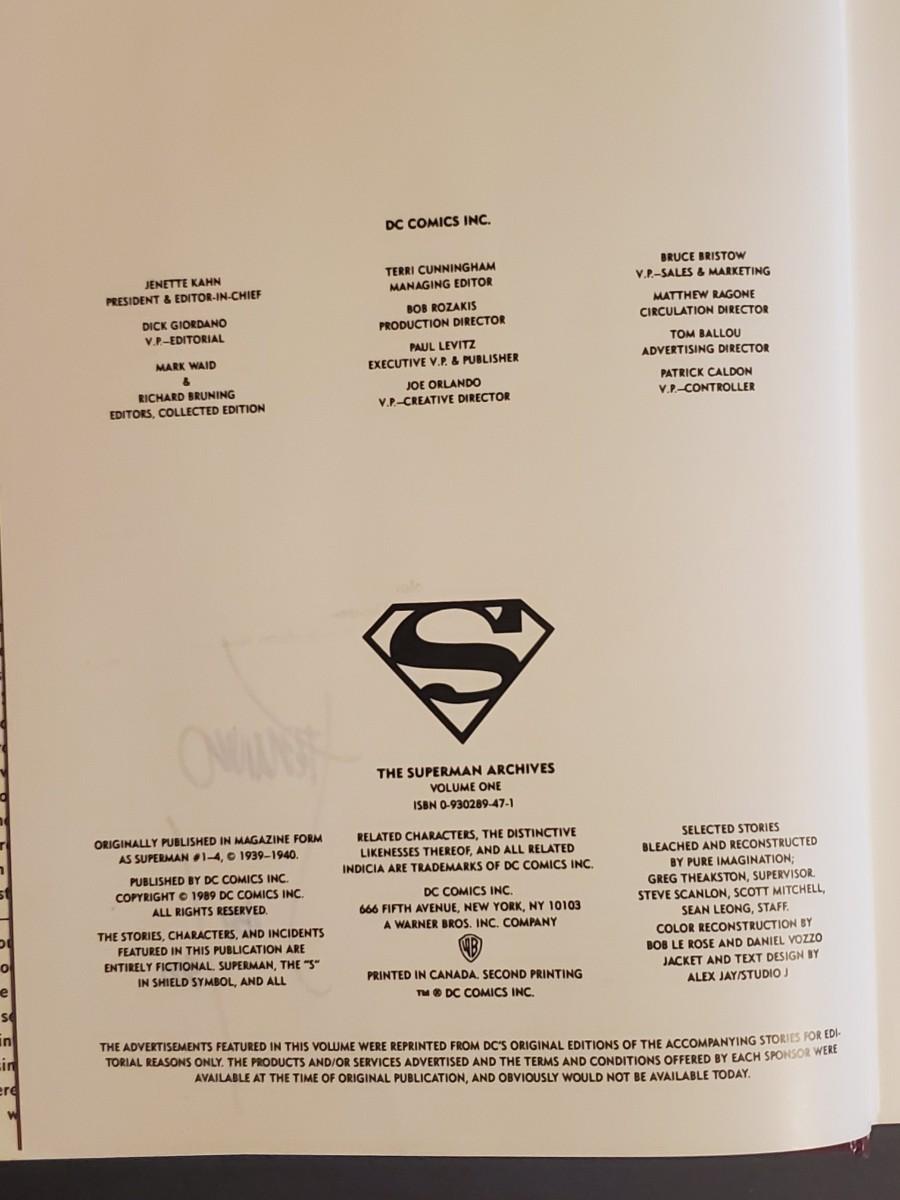 LOT 162G: Vintage Signed Superman "Archives Volume 1" Comic Book Collection Hardcover Book