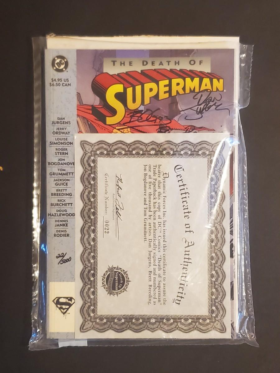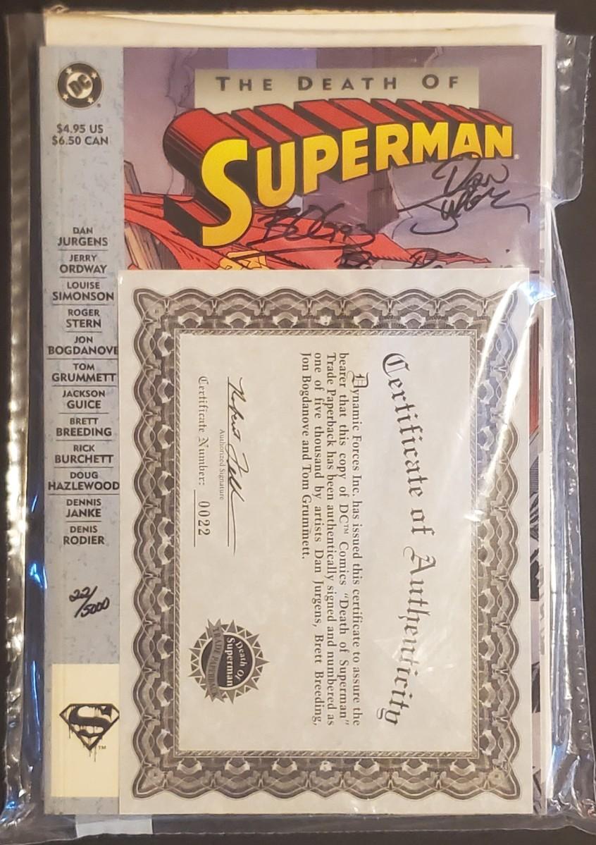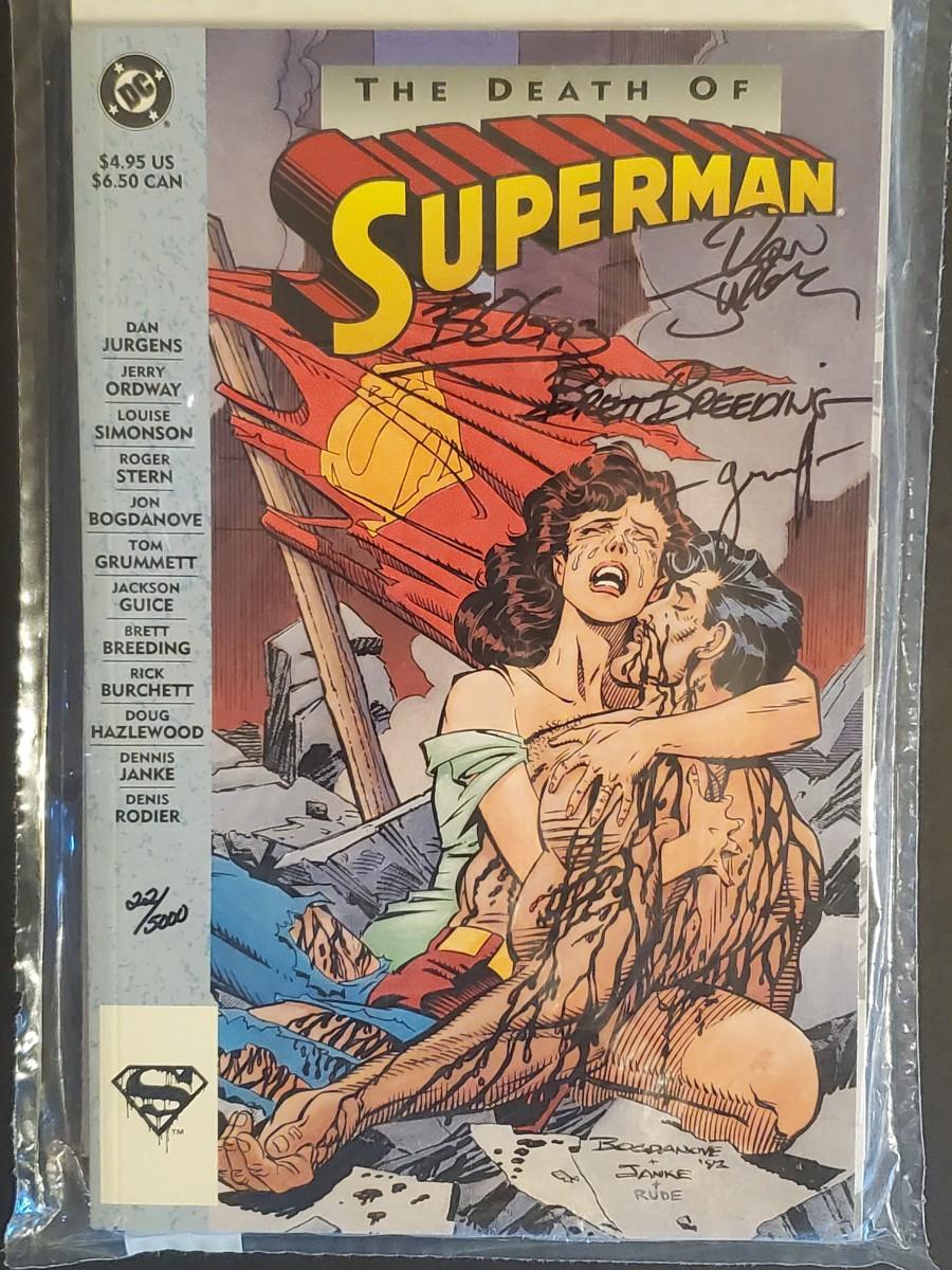 LOT 168G: Vintage Signed "The Death of Superman" DC Comic Book
