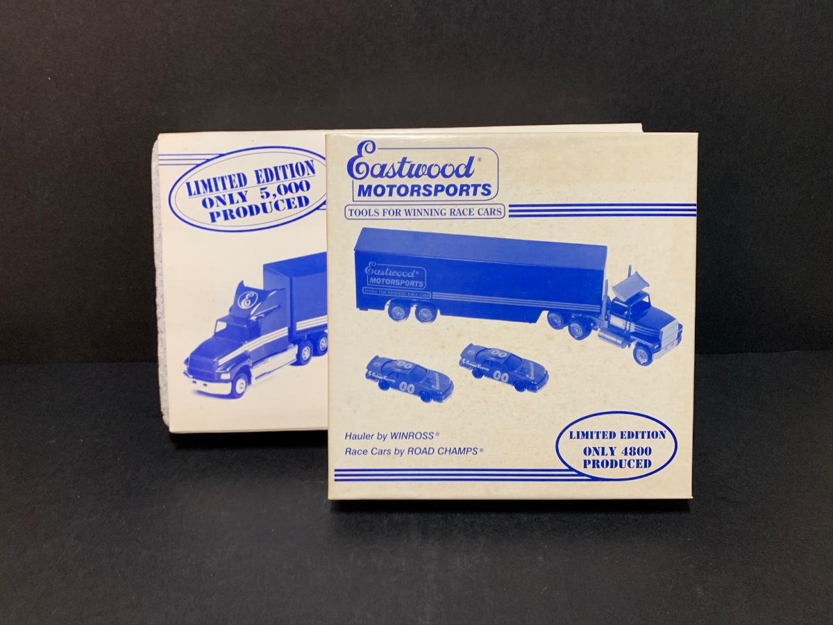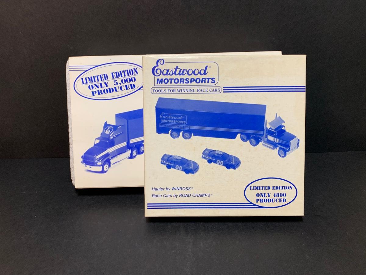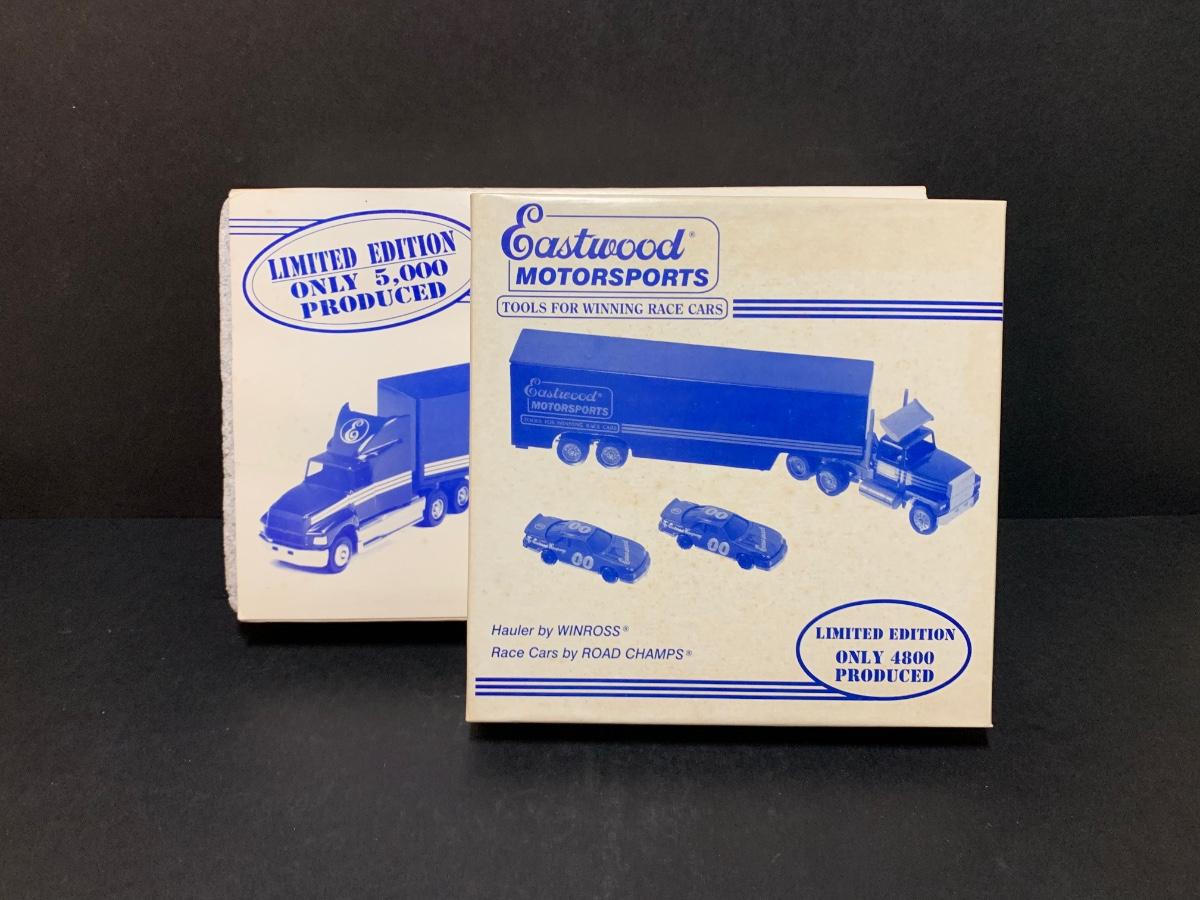 LOT 175R: Vintage Eastwood Motorsports Winross Truck Semi Hauler Die Cast w /2 Race Cars & Limited Edition Truck