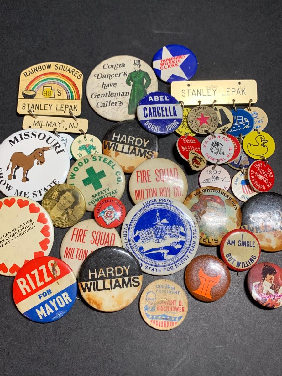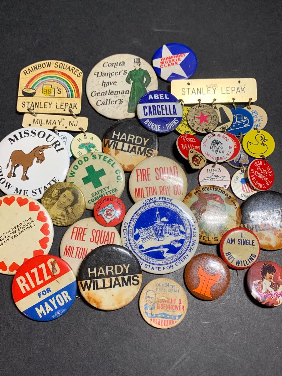 LOT 191R:: Vintage Pins: Political, Non=Political, Holiday & Much More