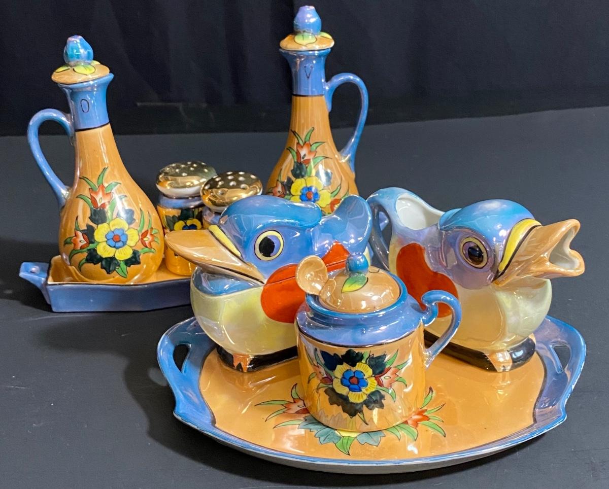LOT: 5 Vintage Condiment Sets w/Vinegar & Oil Cruet Set, Salt-Pepper & More