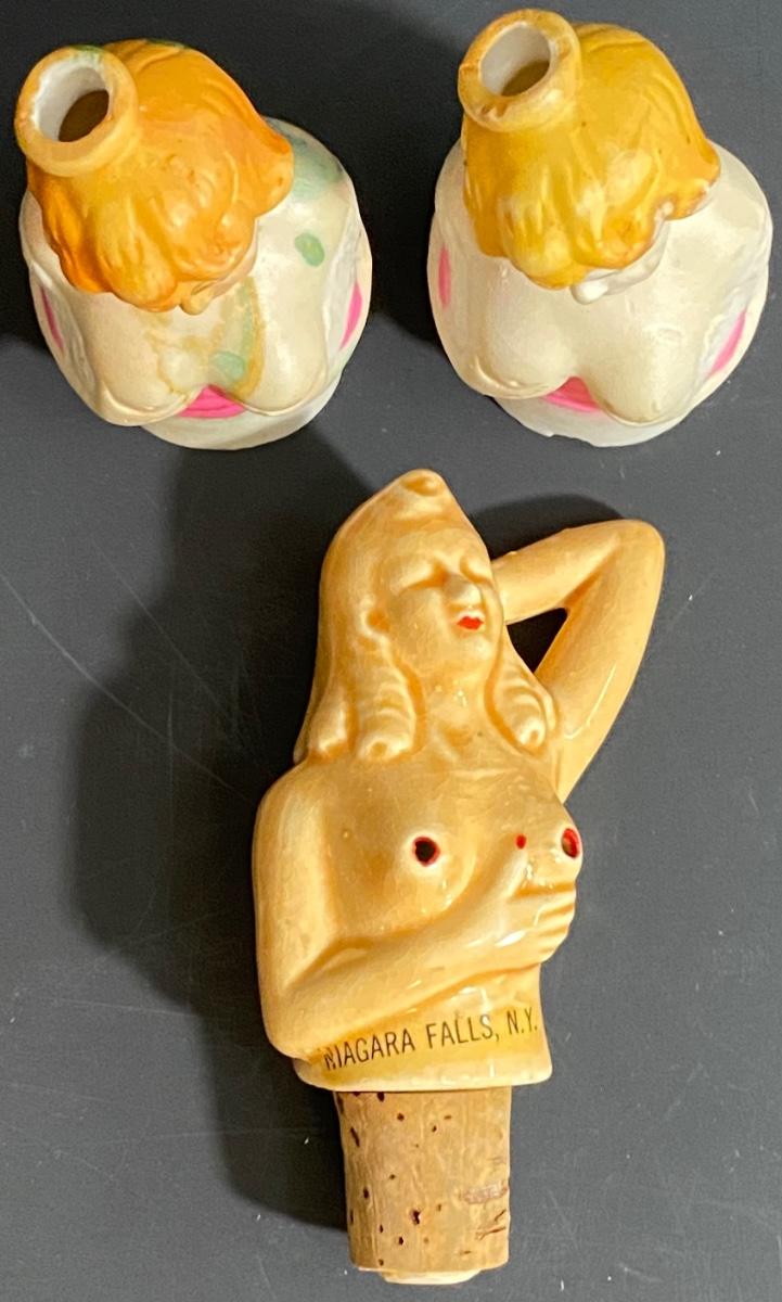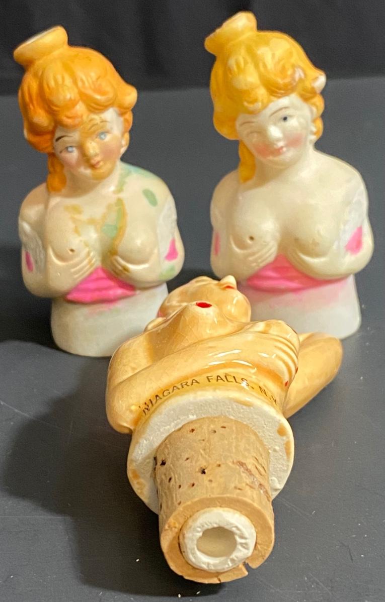 LOT 7: Vintage " Naughty Girls" Small Figures & Niagara Falls bottle stopperr