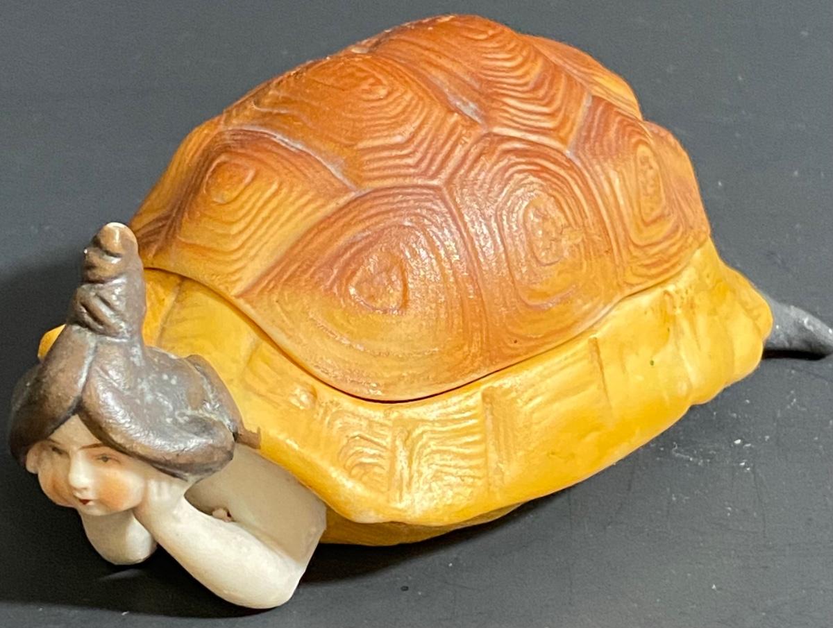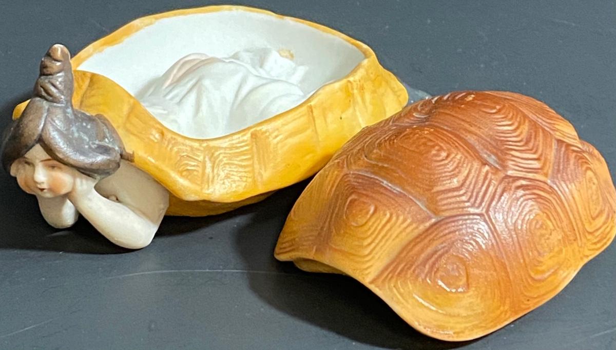 LOT 8 Naughty Porcelain "Lady in a Turtle Shell" Candy Dish