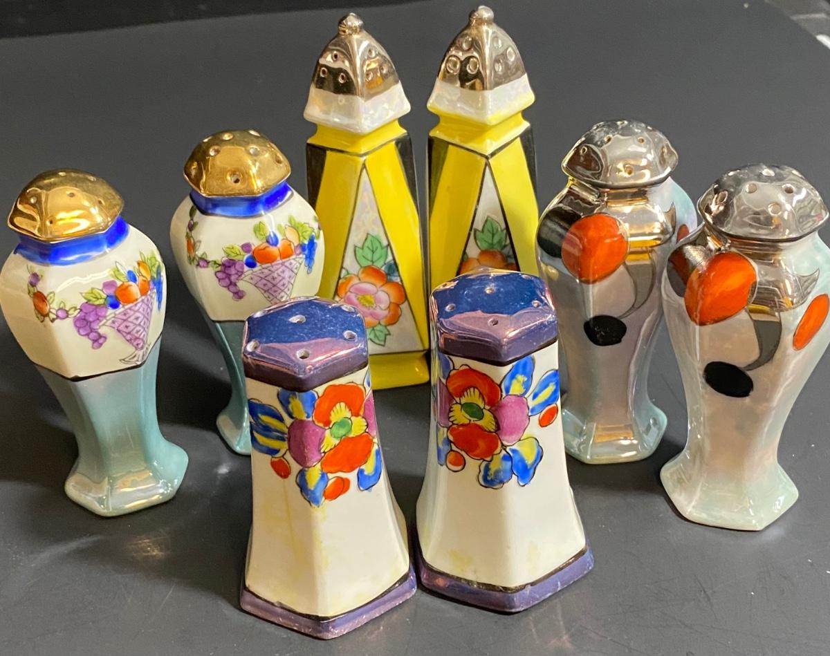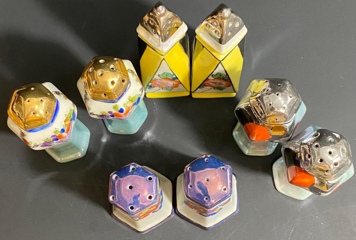 LOT 28: Vintage Art Deco Japan Lusterware Salt/Pepper Yellow Floral & More