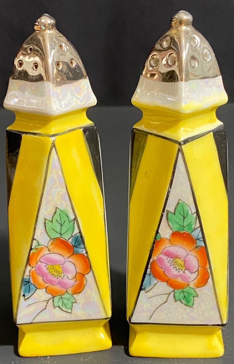 LOT 28: Vintage Art Deco Japan Lusterware Salt/Pepper Yellow Floral  & More