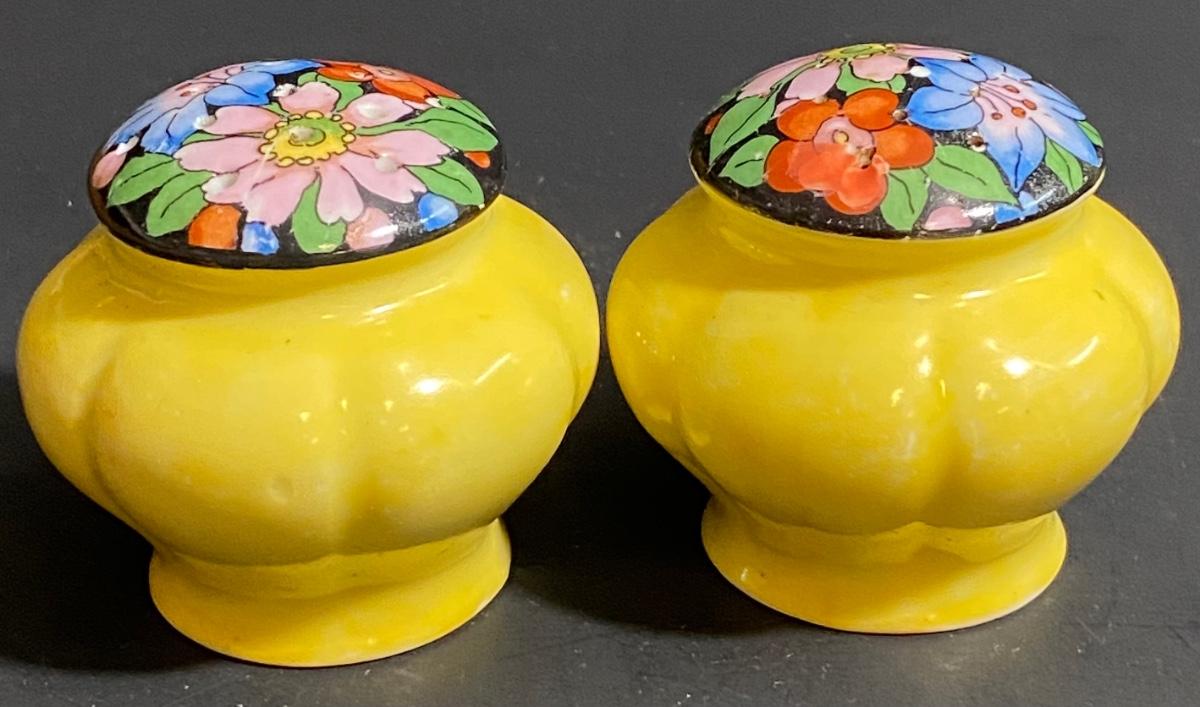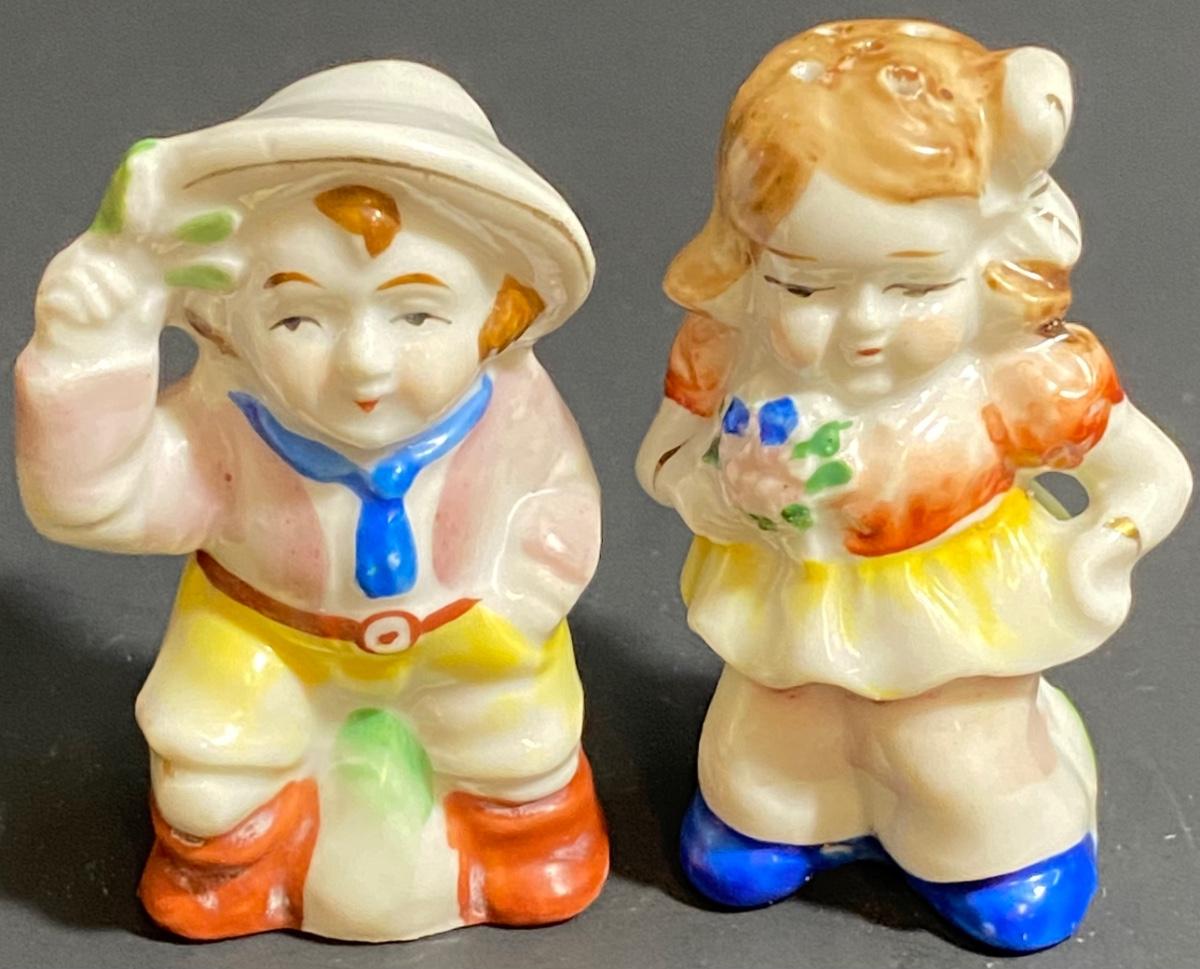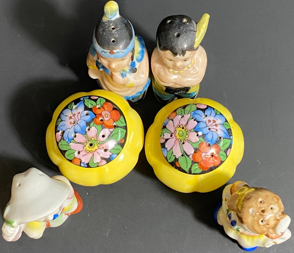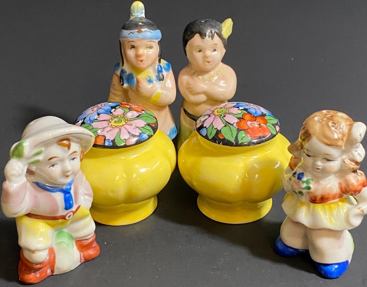 LOT 31: Vintage Japan Salt/Peppers; Yellow w/Flower Top, Boy/Girl Indians & Girl/Boy
