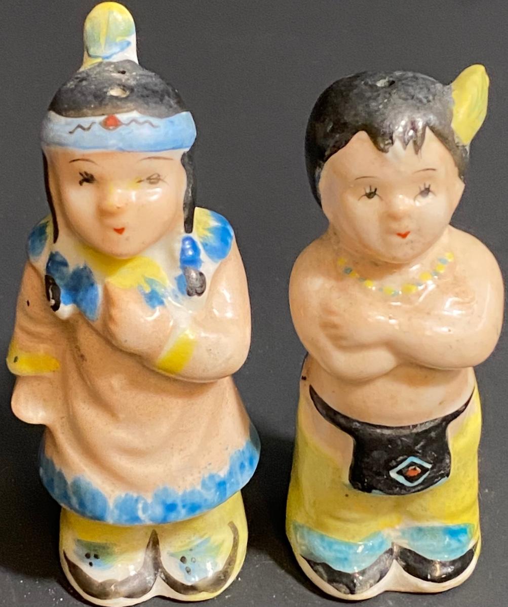 LOT 31: Vintage Japan Salt/Peppers;  Yellow w/Flower Top, Boy/Girl Indians &  Girl/Boy