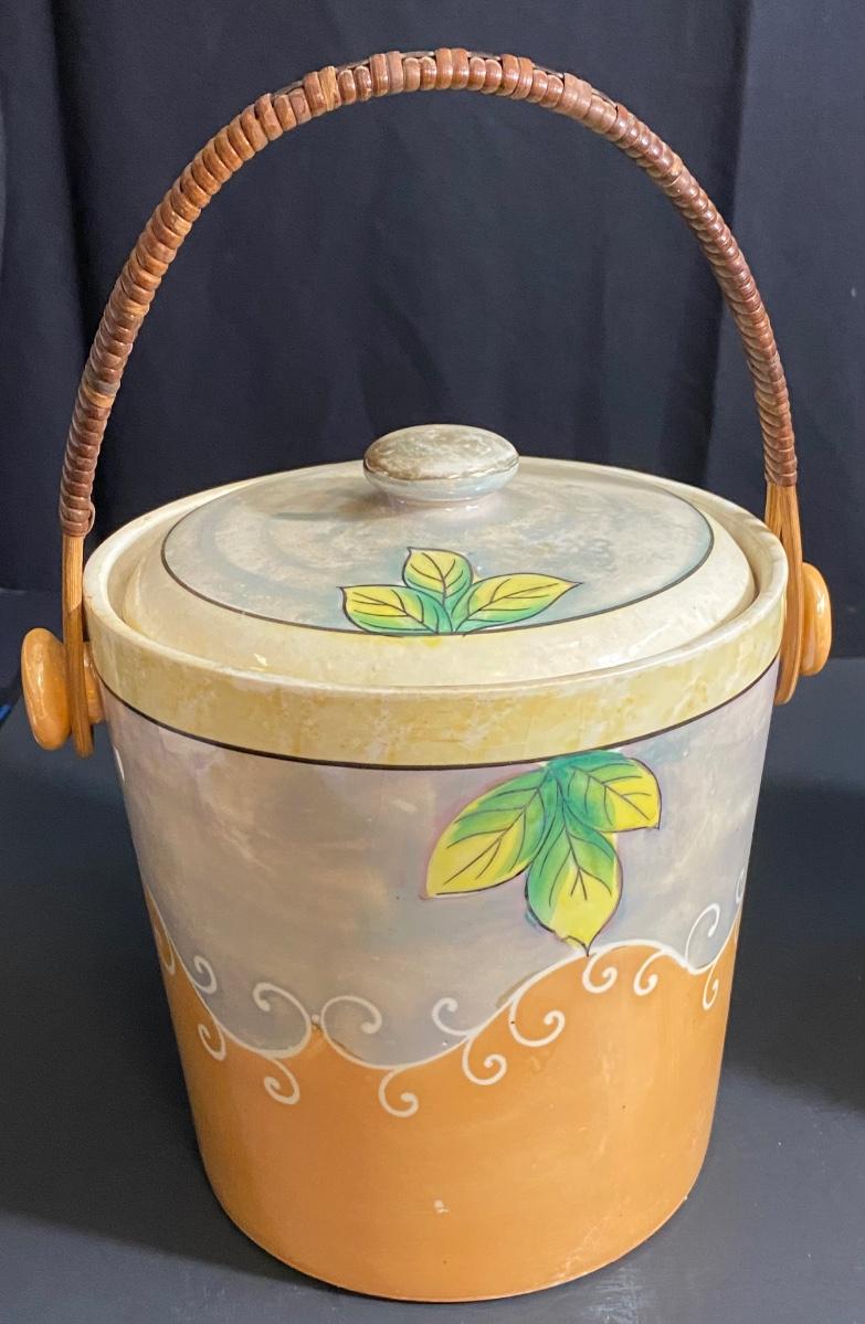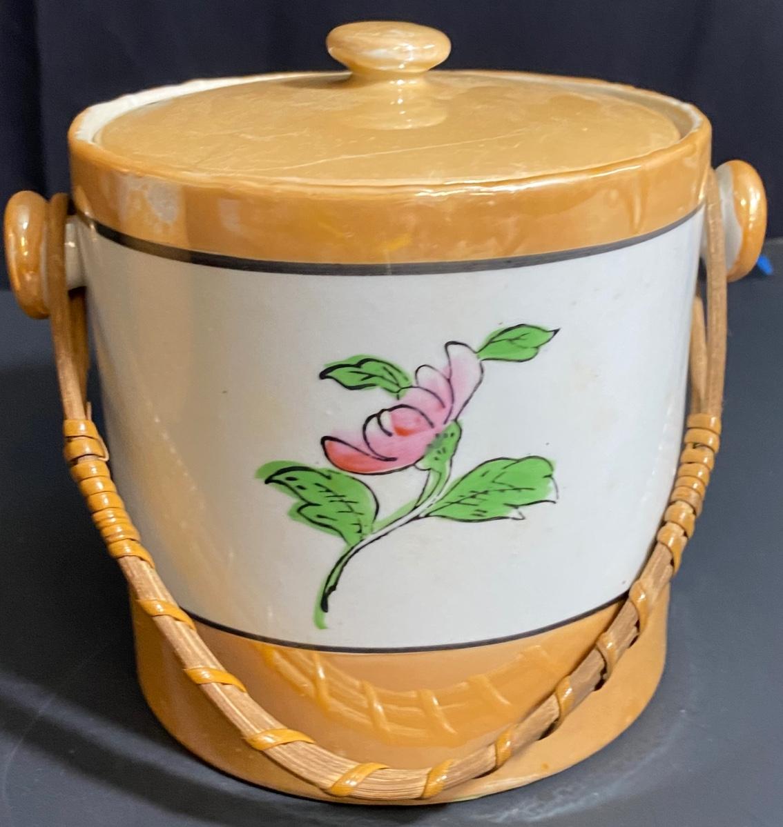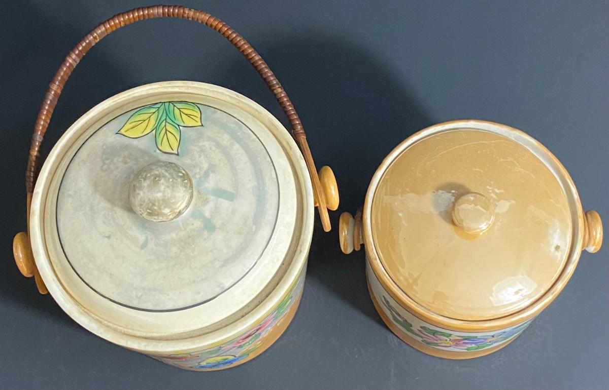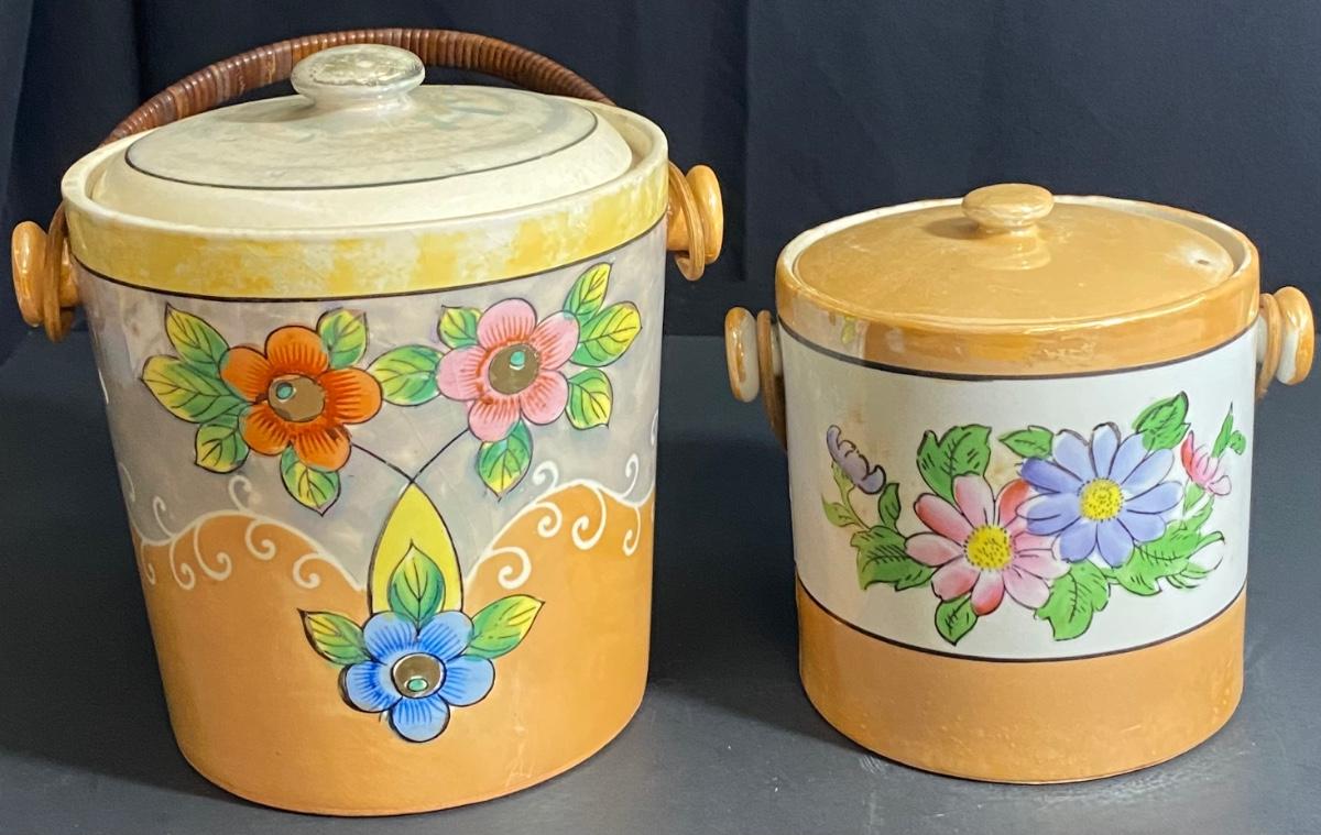 LOT 38: Vintage Lusterware Hand Painted Ice Buckets/Biscuit Jars Bamboo Handle Japan