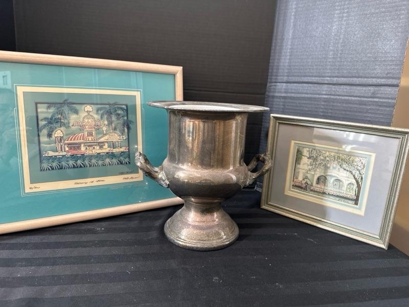2 pieces of art and 1 ice bucket / champagne holder